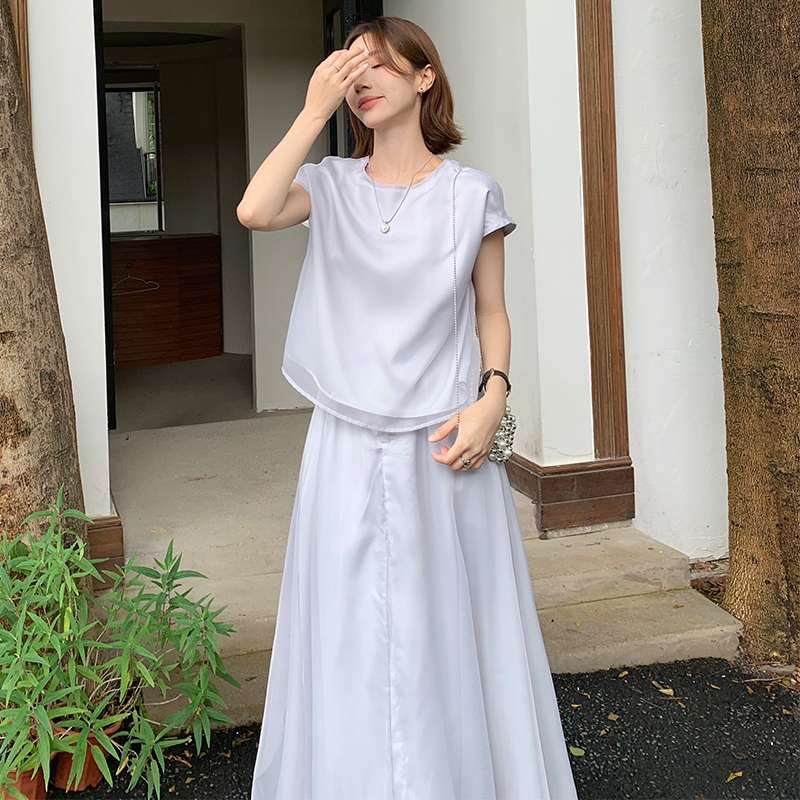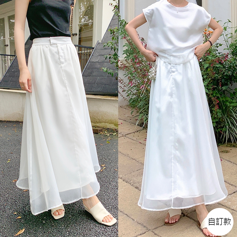 【HARPER】品牌自訂雙層透紗傘襬長裙 有內裏 | 現貨 婚禮 中長裙 裙子【SKA29025J】白,S~M|白,L~XL|灰,S~M|灰,L~XLHARPER