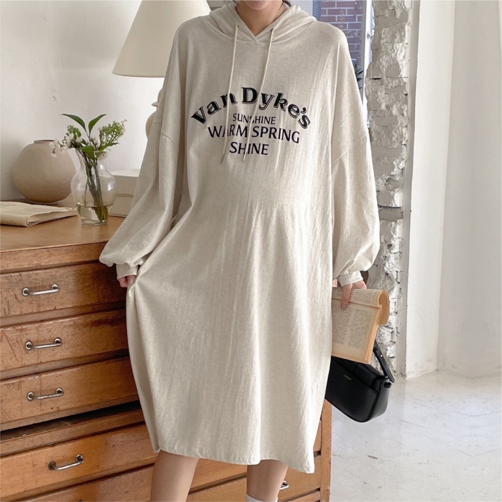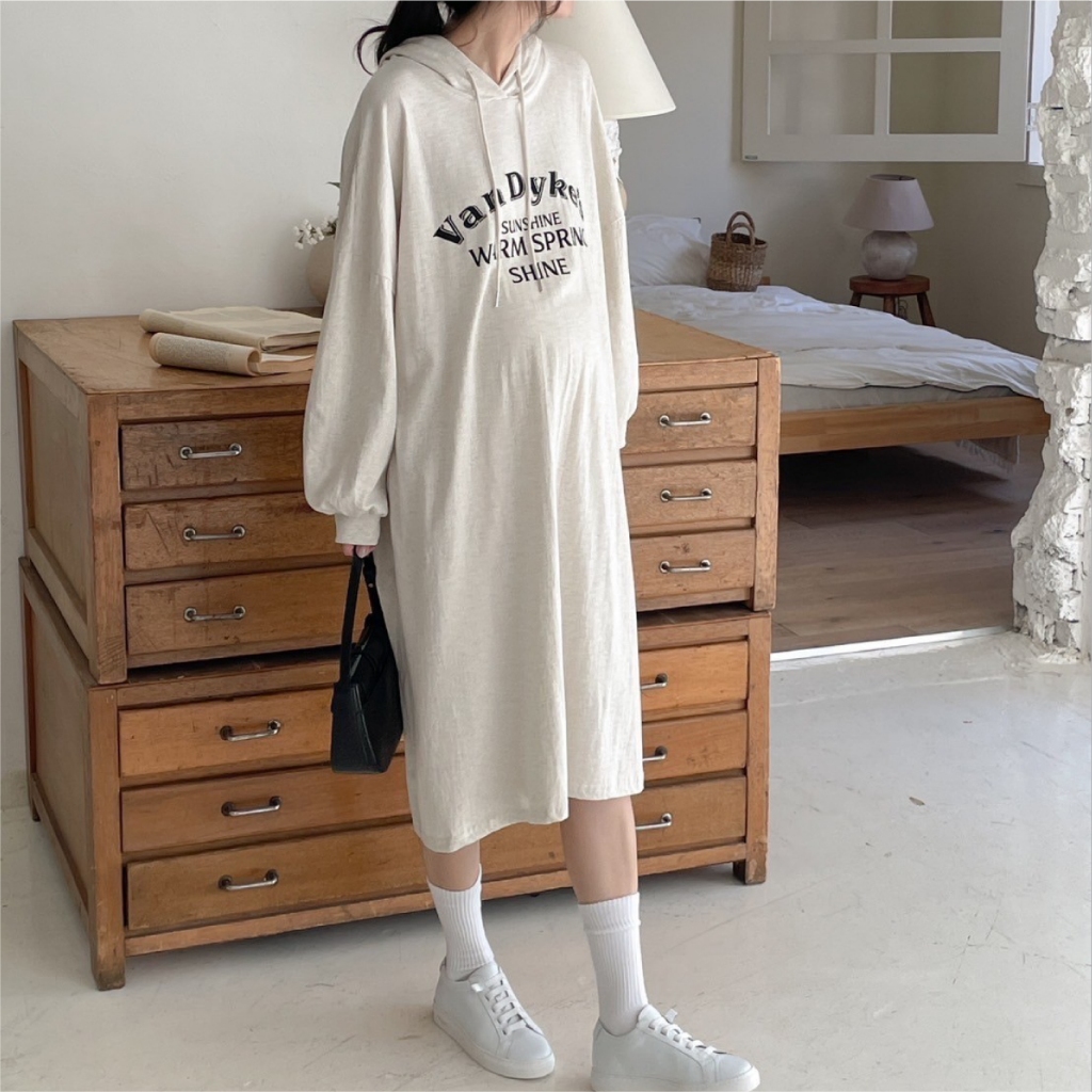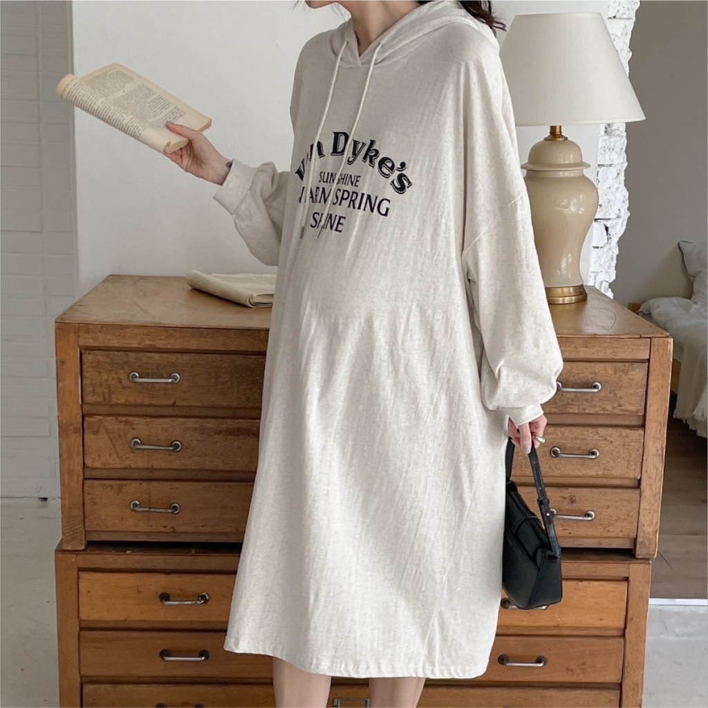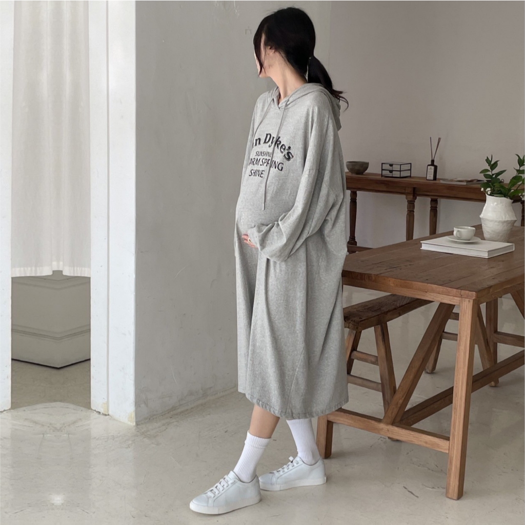 Mamamia孕婦裝 Van Dyke’s柔軟自在連帽孕婦洋 正韓製 孕婦裝 長袖 休閒 孕婦洋裝 連身裙 [D7531米白|灰|黑Maternity DressesMamamia孕婦裝