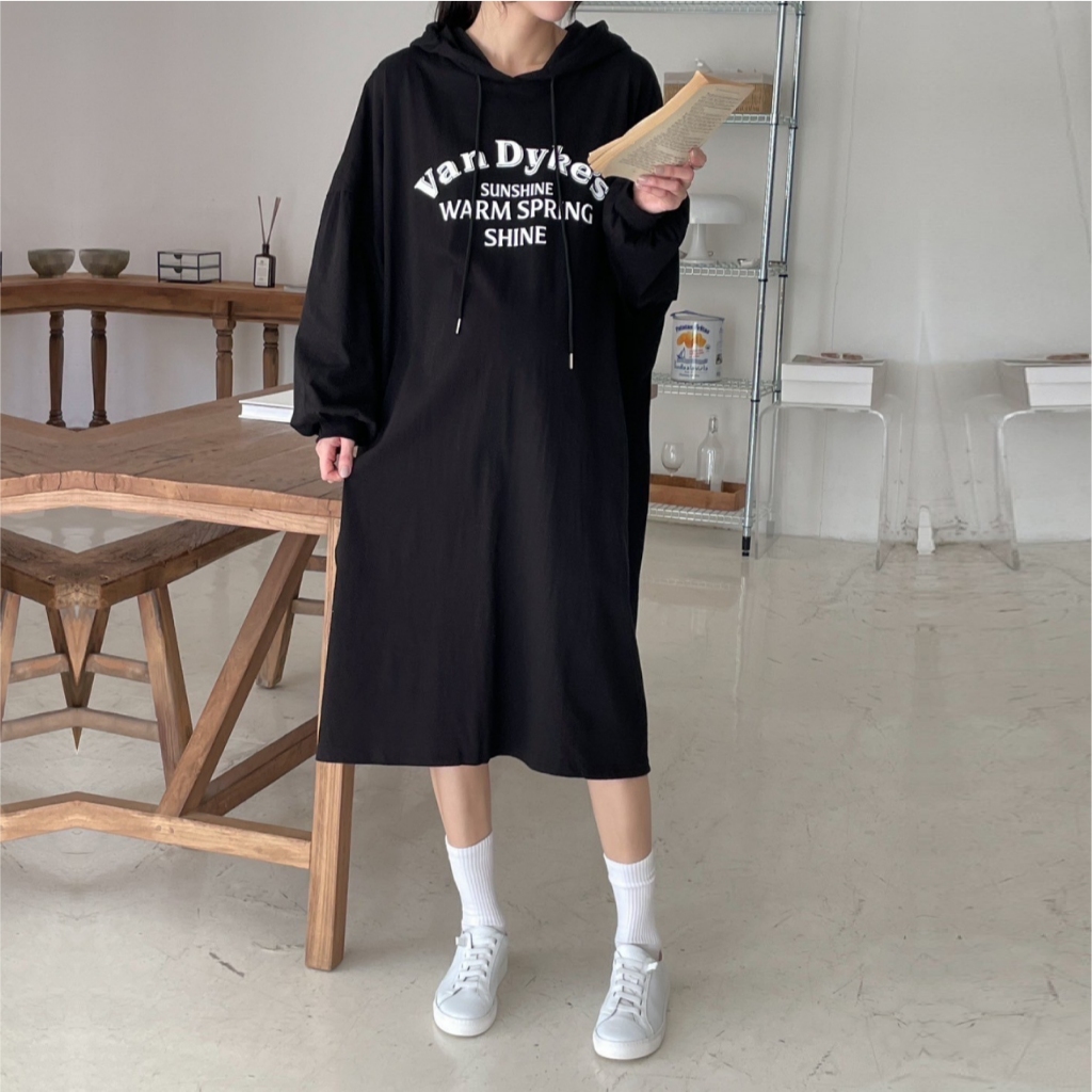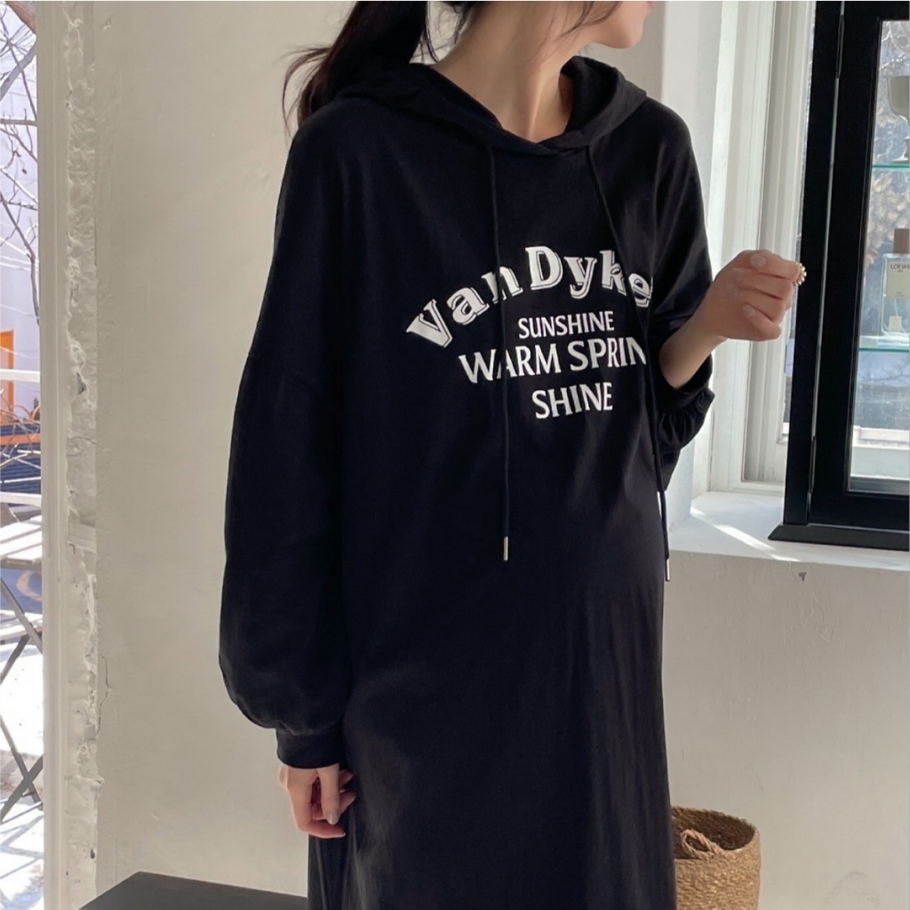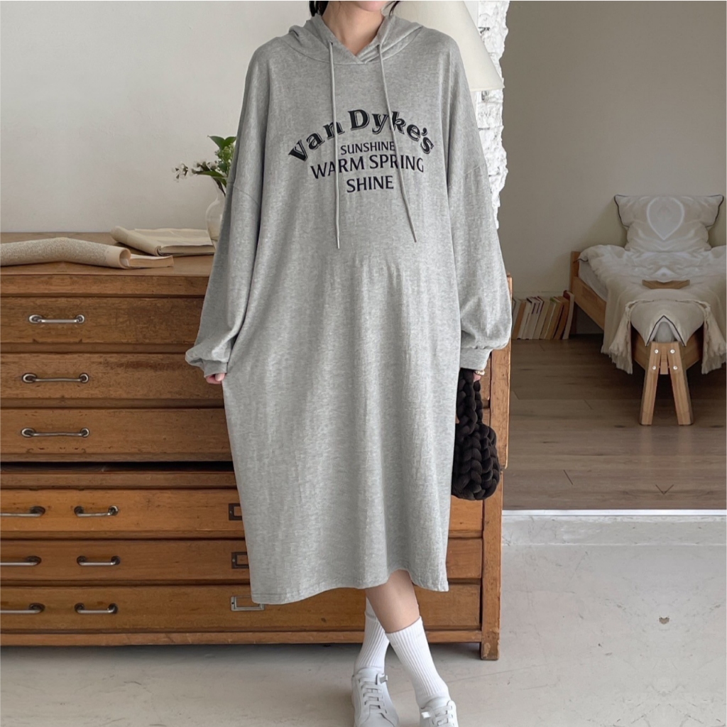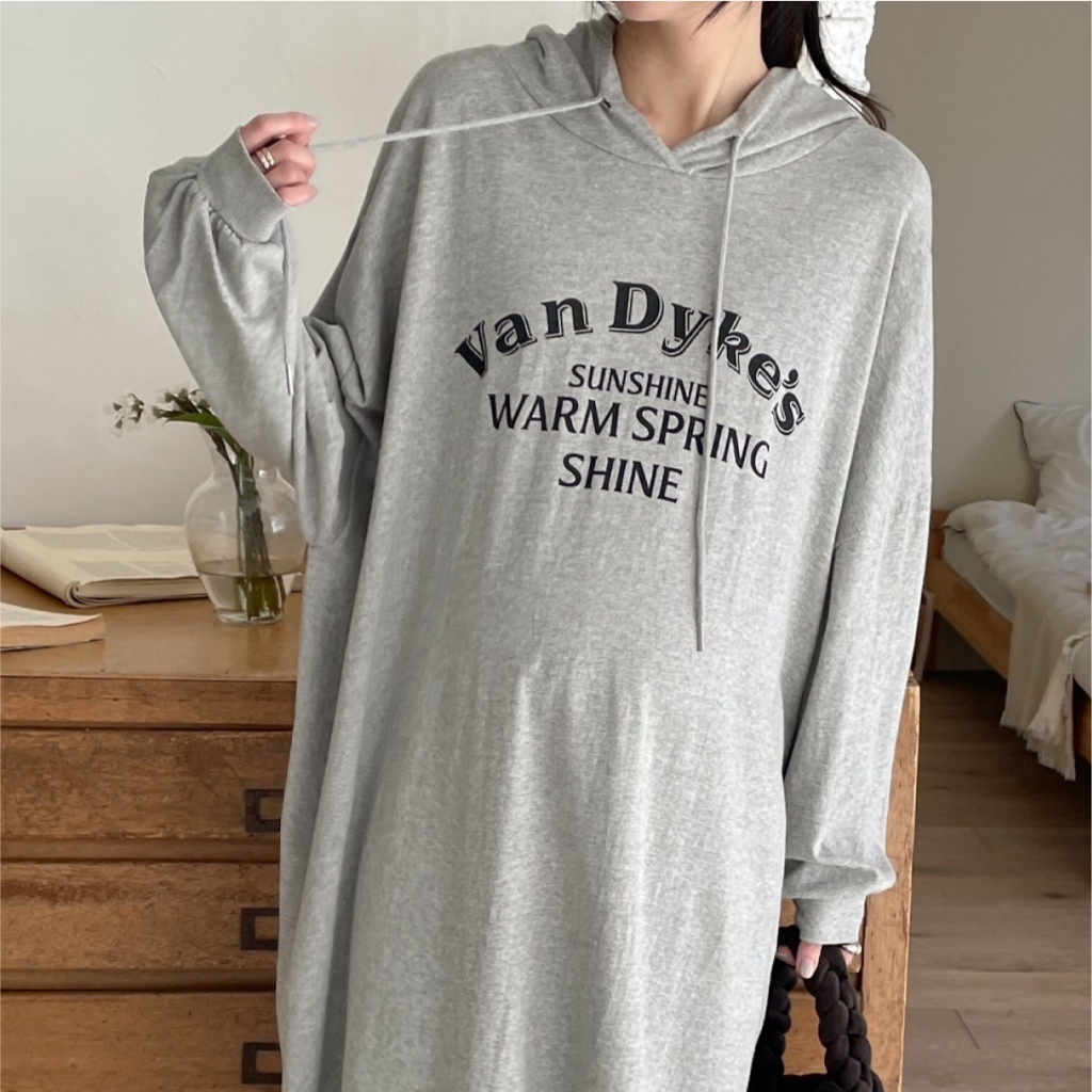 Mamamia孕婦裝 Van Dyke’s柔軟自在連帽孕婦洋 正韓製 孕婦裝 長袖 休閒 孕婦洋裝 連身裙 [D7531米白|灰|黑Maternity DressesMamamia孕婦裝