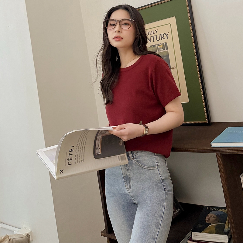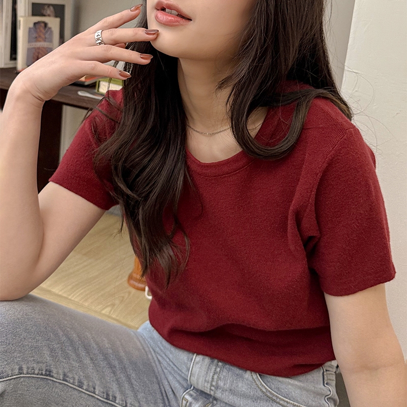 【HARPER】舒適圓領針織上衣 | 現貨 短袖上衣 圓領【CLA32907J】米白,F|紅,F|灰,FHARPER
