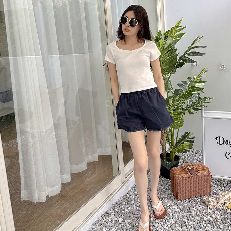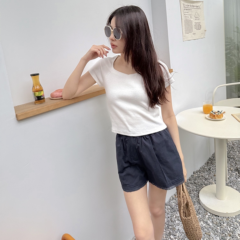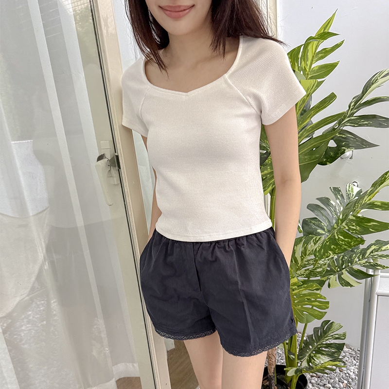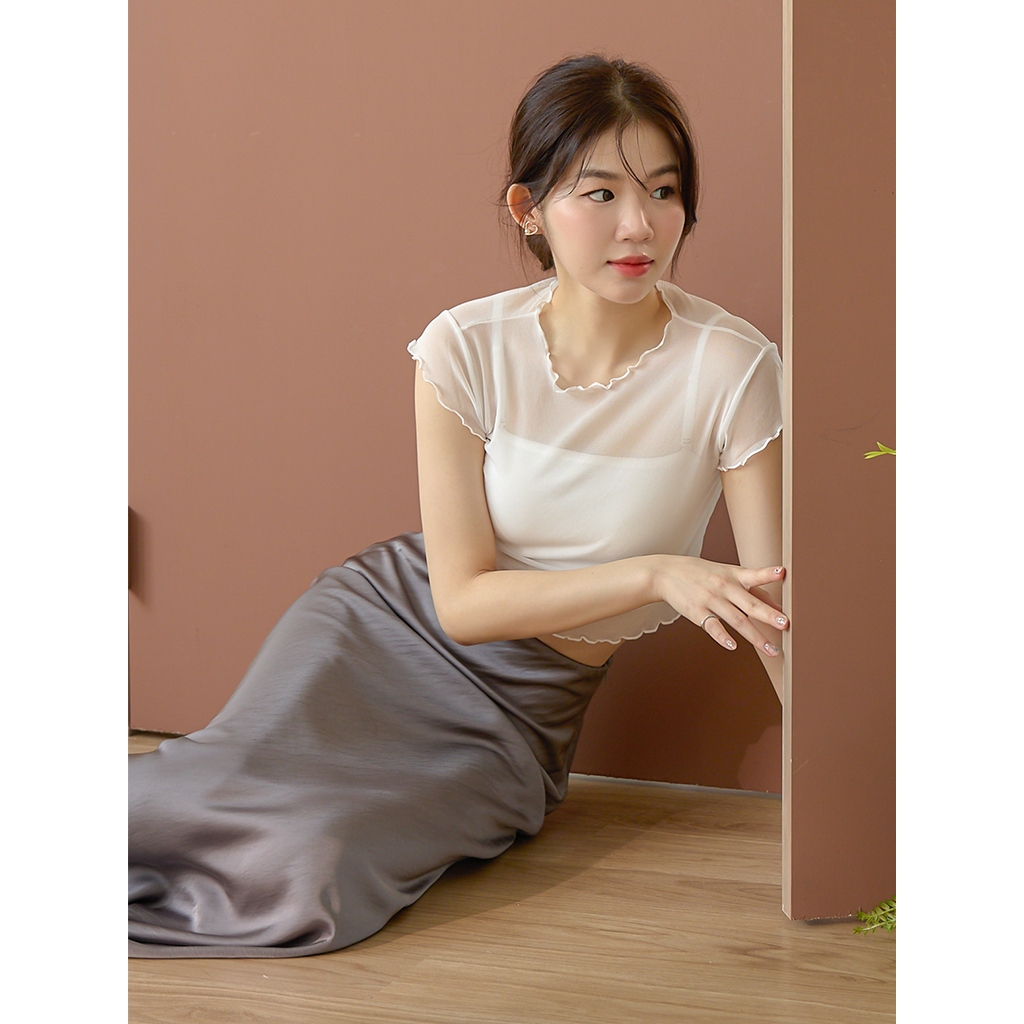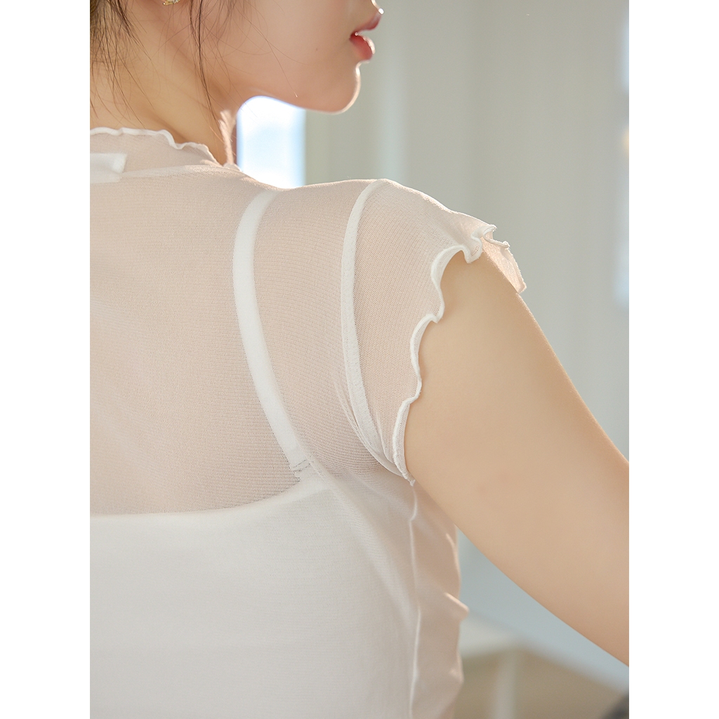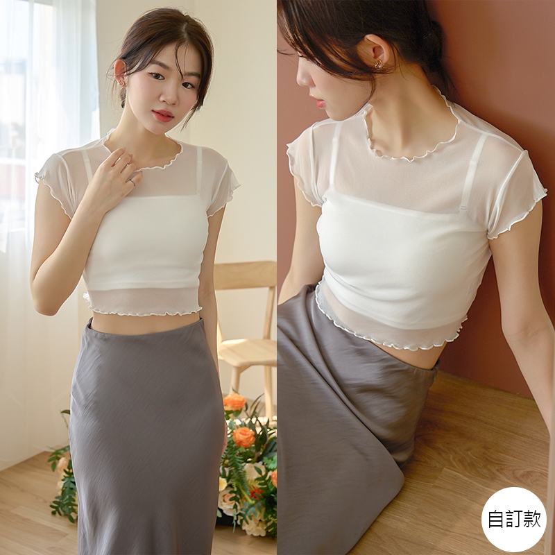 【HARPER】品牌自訂透肌感木耳邊上衣 | 現貨 短袖上衣 透膚 內搭 短版【CLF14615J】白,S|白,M|白,LT-shirtsHARPER
