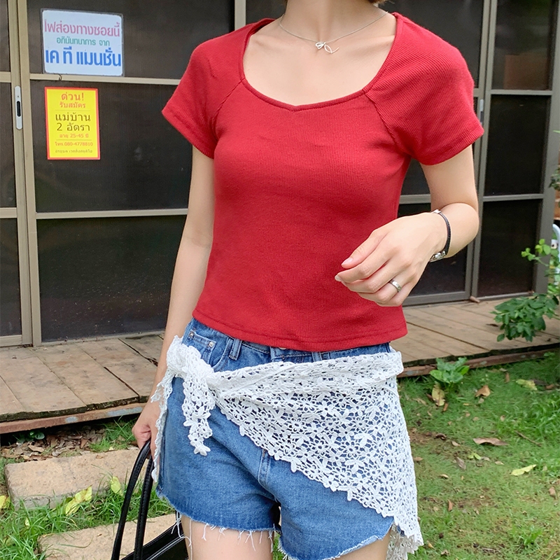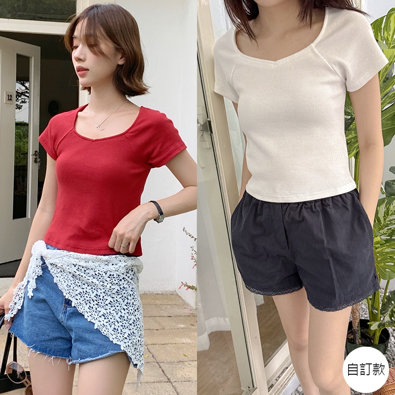 【HARPER】品牌自訂修身羅紋上衣 | 現貨 短袖上衣 白T【CLF15423J】白,S|白,M|白,L|櫻桃紅,S|櫻桃紅,M|櫻桃紅,LT-shirtsHARPER