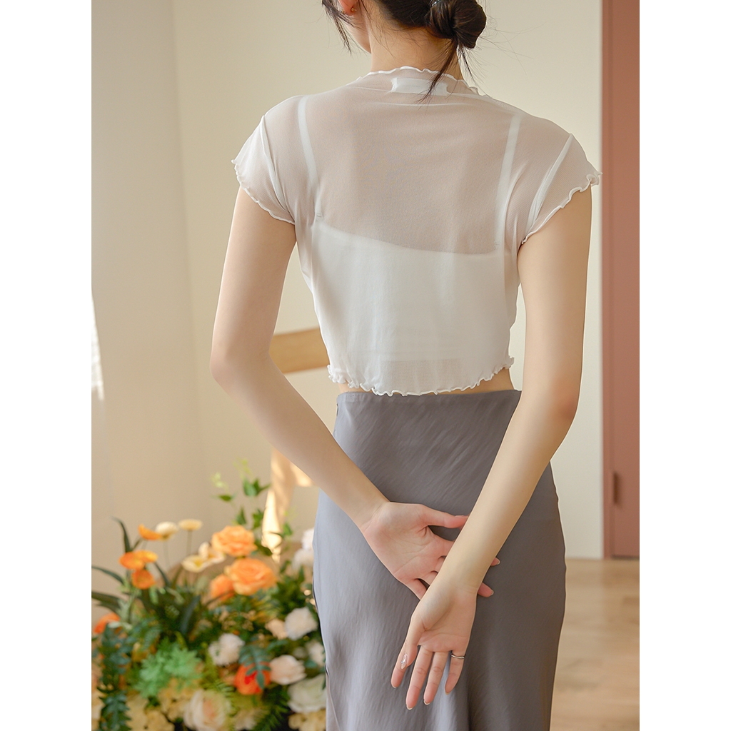 【HARPER】品牌自訂透肌感木耳邊上衣 | 現貨 短袖上衣 透膚 內搭 短版【CLF14615J】