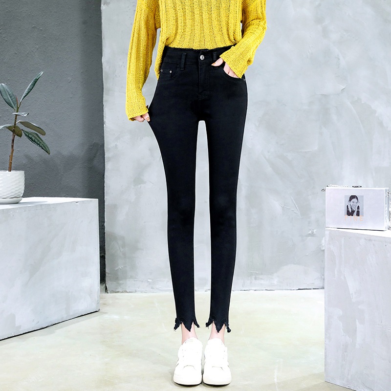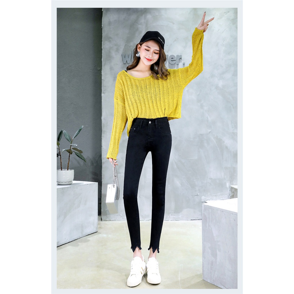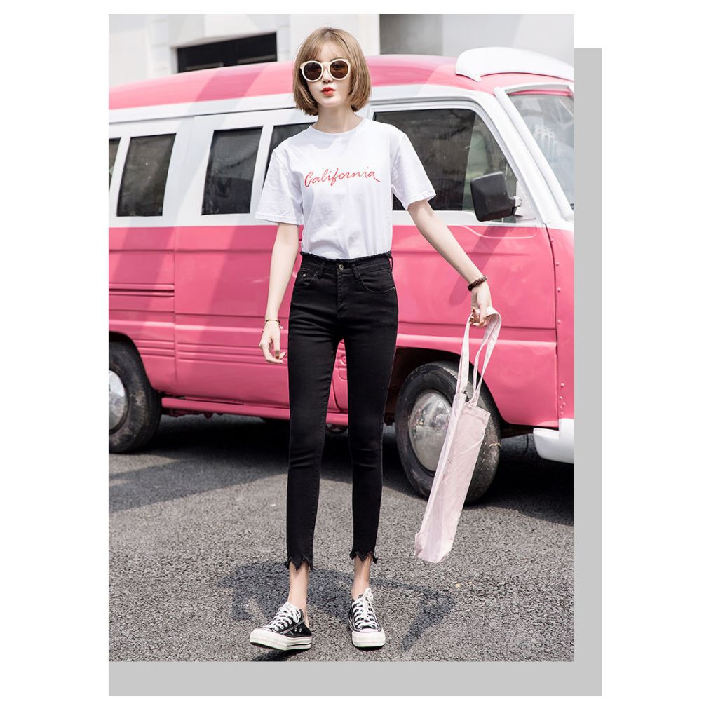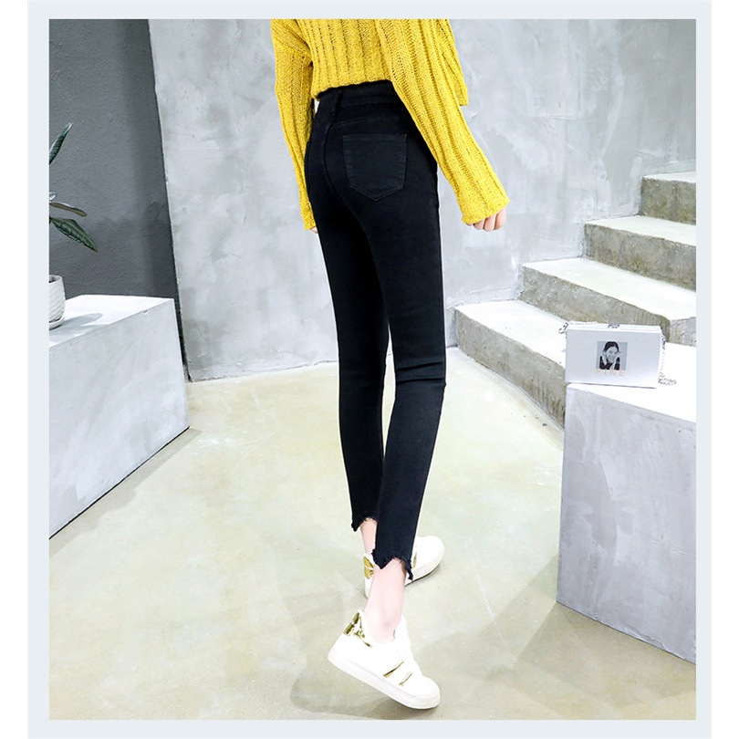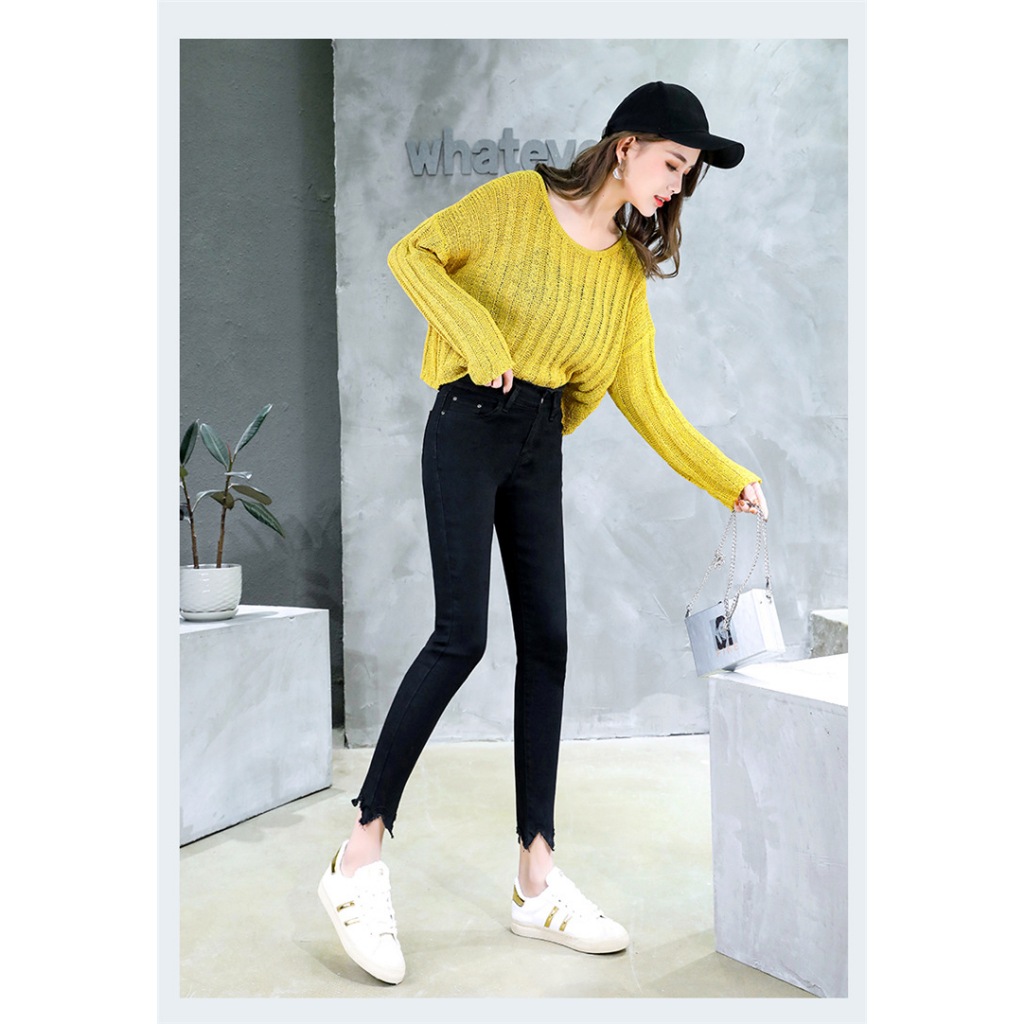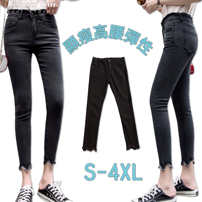 牛仔長褲 大尺碼日系百搭修身高腰九分褲毛邊小腳褲 051118S|M|L|XL|2XL|3XL|4XLLeenaSui ~台灣賣家 隔日到貨