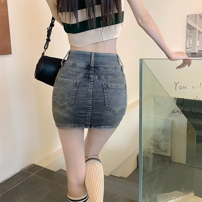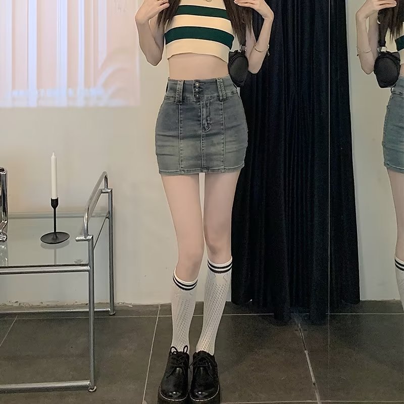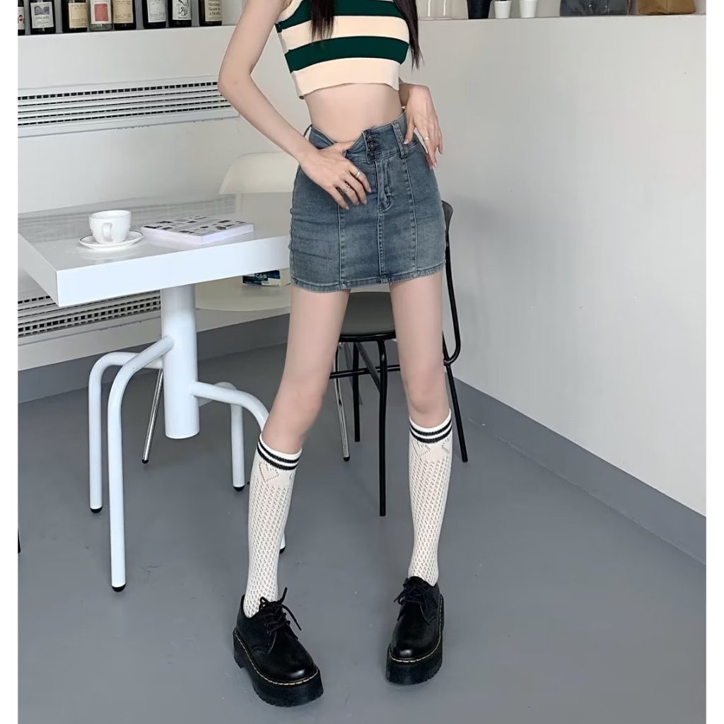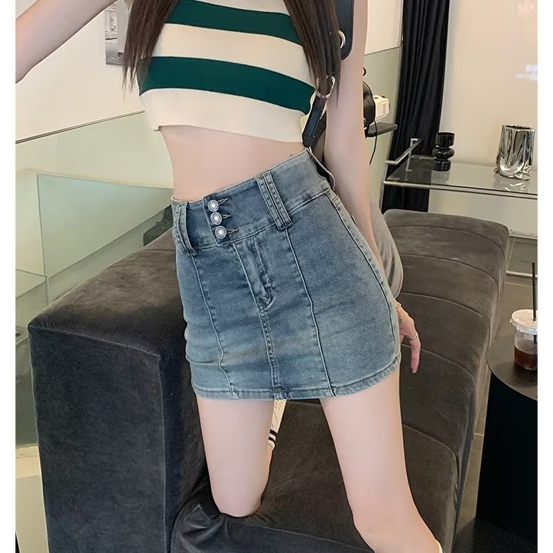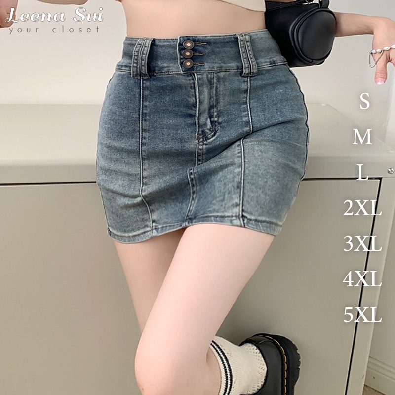 牛仔短褲裙 高腰牛仔半身裙夏季新款百搭顯瘦甜酷辣妹防走光包臀短裙0500092XL|4XL|5XLSkortsLeenaSui ~台灣賣家 隔日到貨