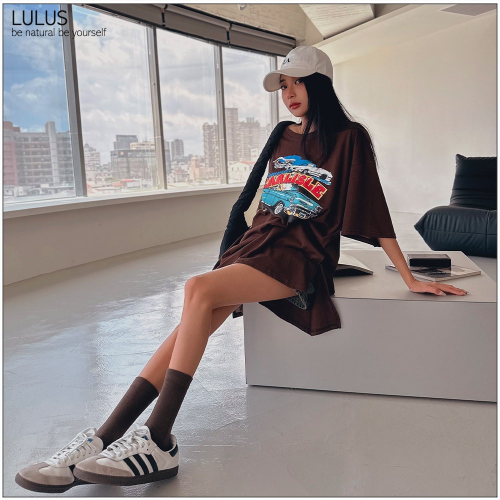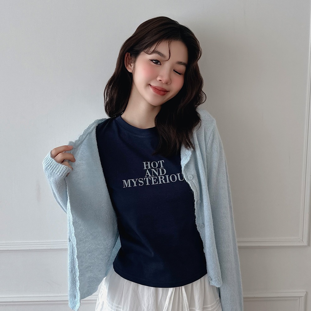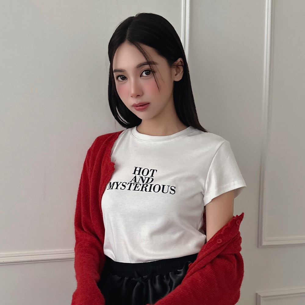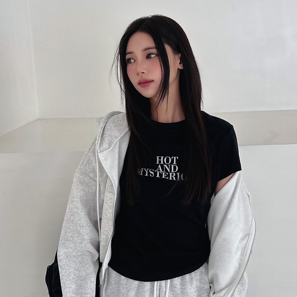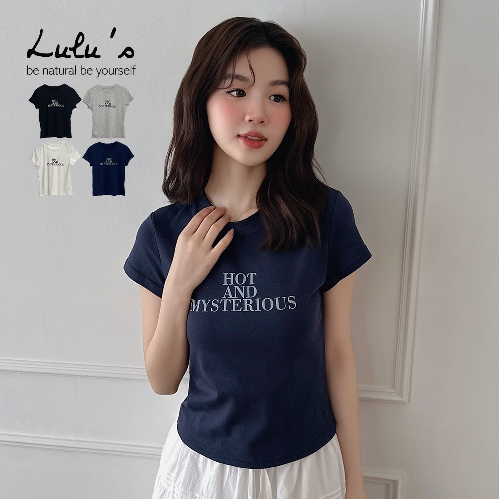 LULUS/HOT植絨字母短袖上衣4色【A01250164】女生上衣 短上衣 250319灰|深藍|黑|白T-shirtsLULUS