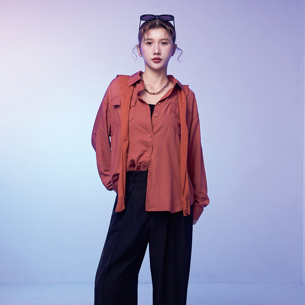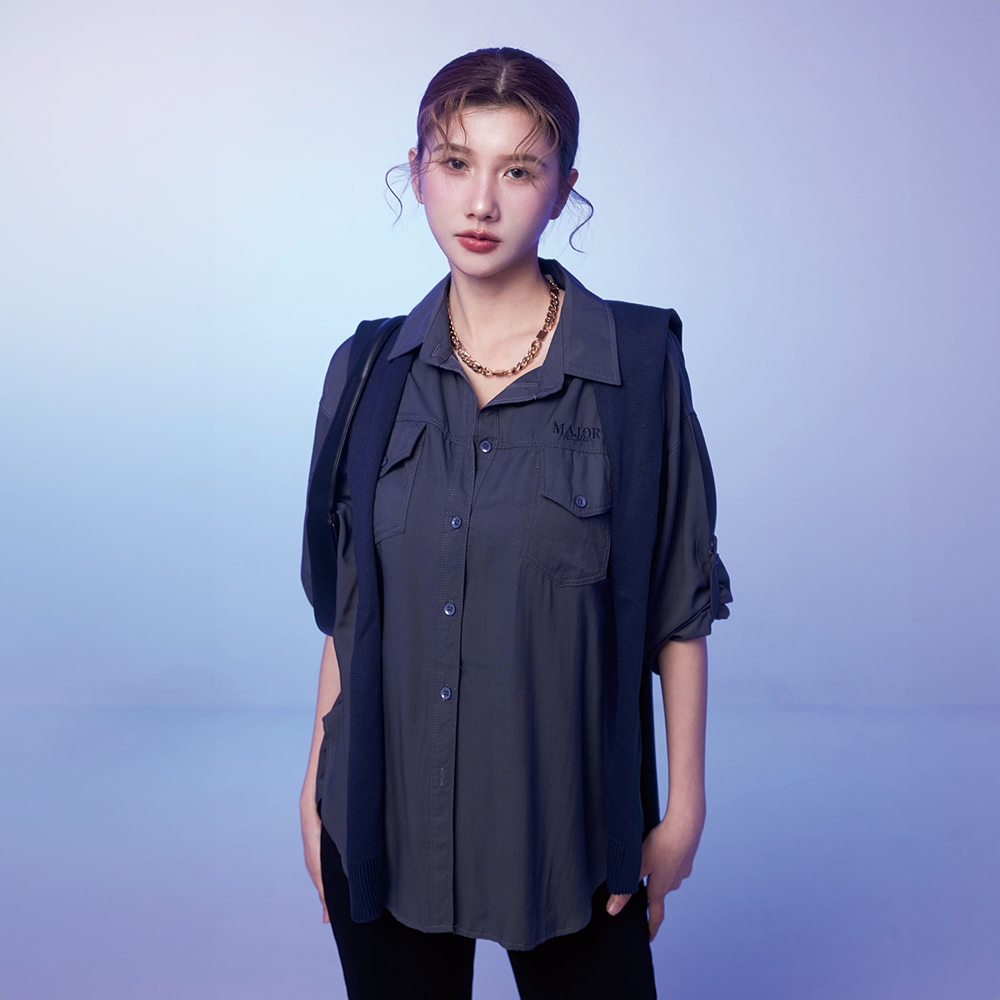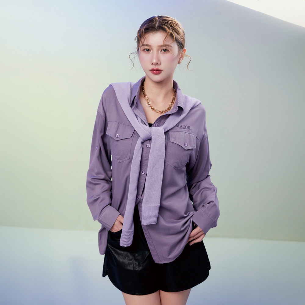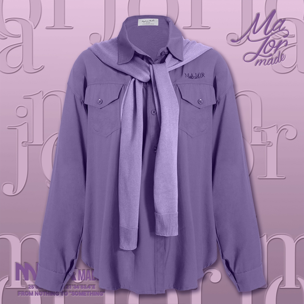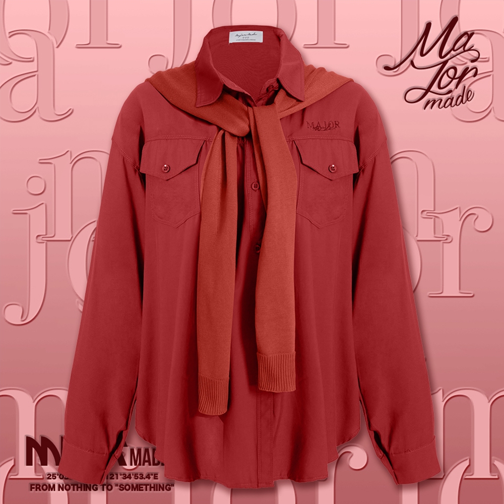 【MAJOR MADE】兩件式披肩刺繡襯衫磚紅,F|咖,F|藍,F|紫,FShirts & BlousesMAJOR MADE