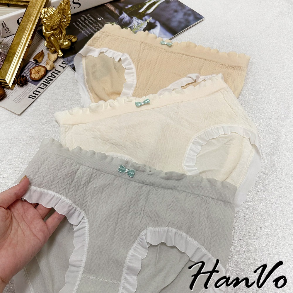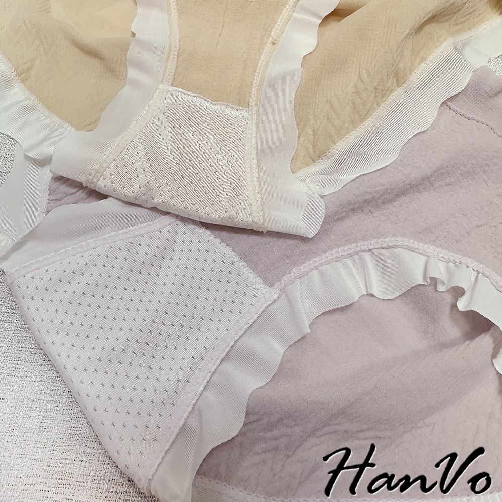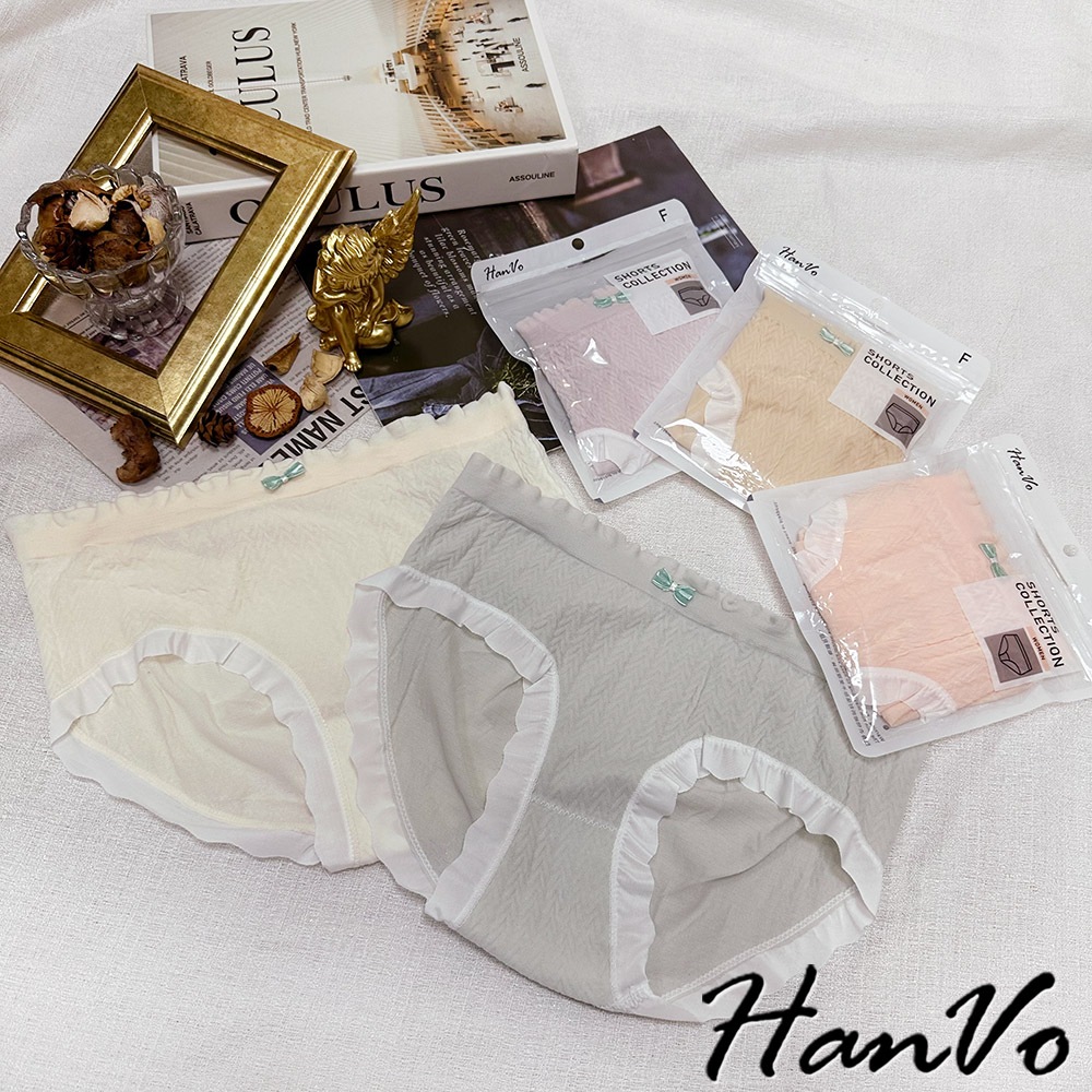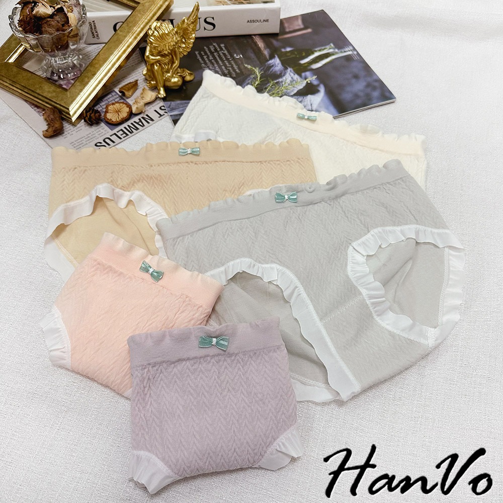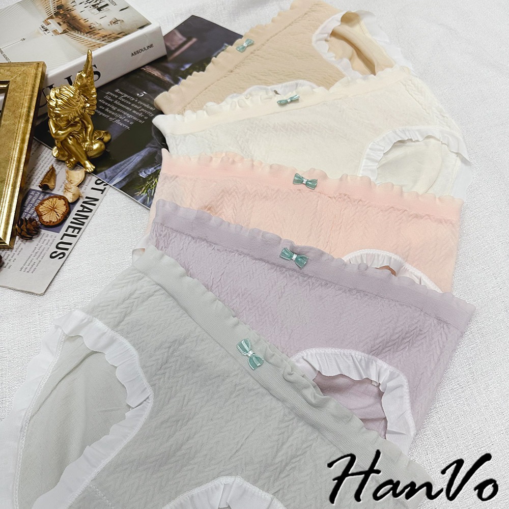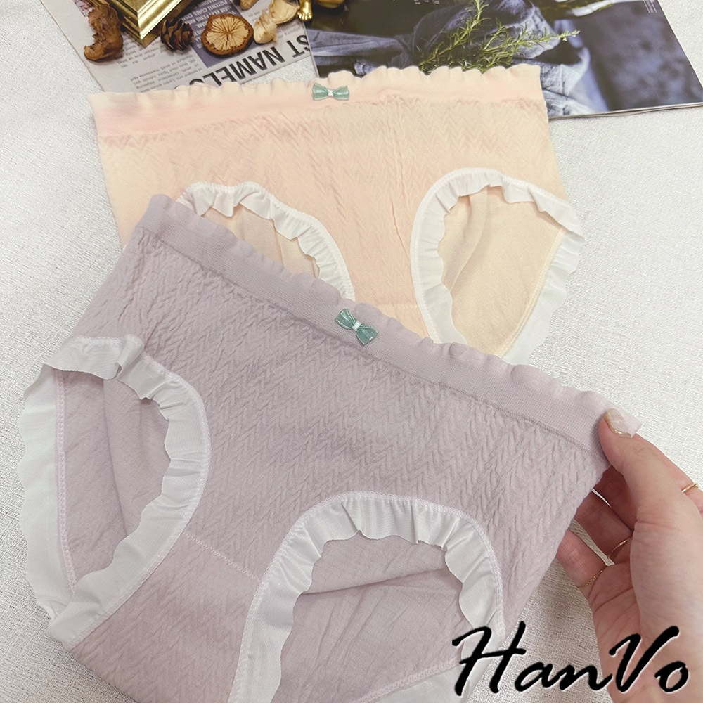 【HanVo】荷葉花邊素色3D包覆內褲 獨立包裝 觸感佳中腰內褲 透氣底襠 流行少女內褲 內著 A11-5867奶膚杏|花瓣粉|葡萄紫|香草綠|布丁黃PantiesHanVo Wear Collection