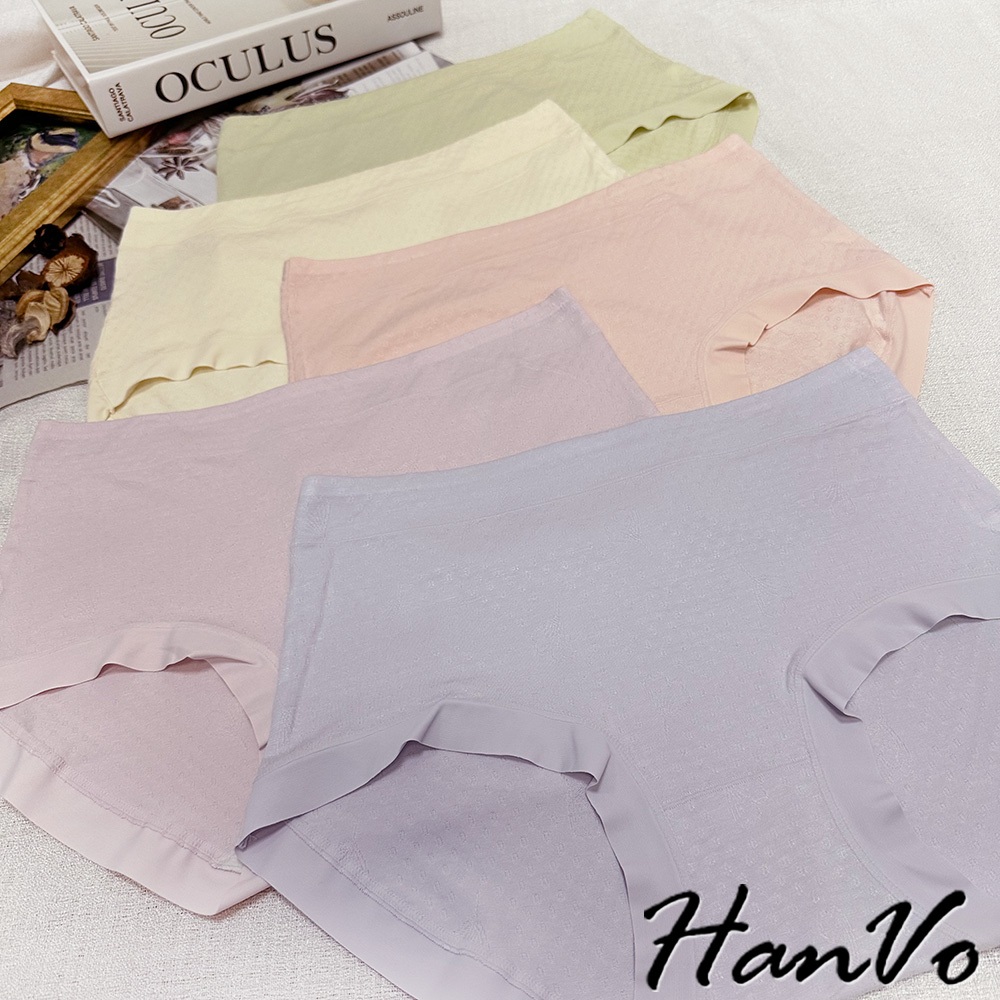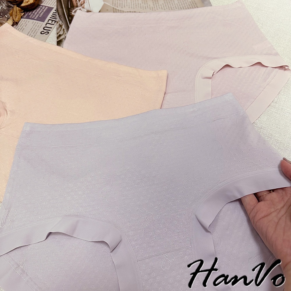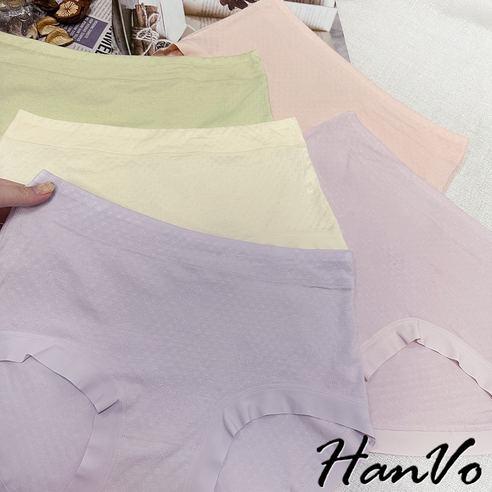 【HanVo】花紋壓痕素色莫代爾內褲 吸濕排汗親膚柔軟 中腰 獨立包裝 流行少女內褲 內著 A11-5307淡藤紫|嫩草綠|花瓣粉|芋香紫|柔膚杏PantiesHanVo Wear Collection