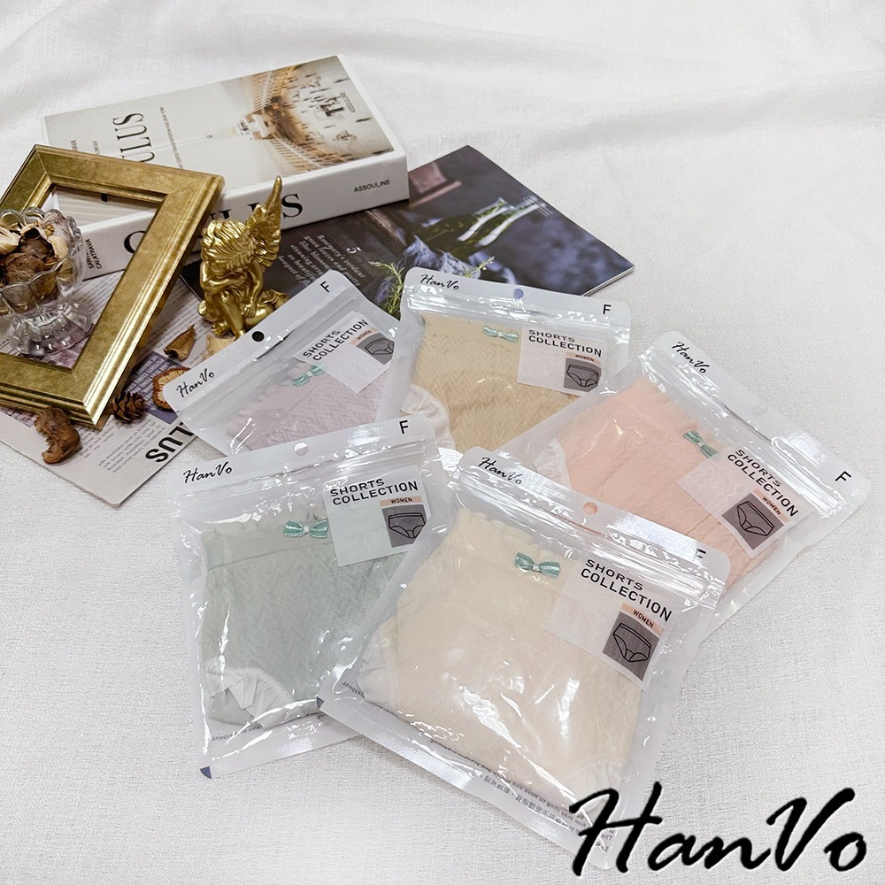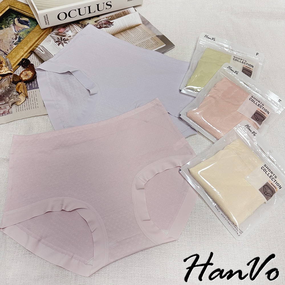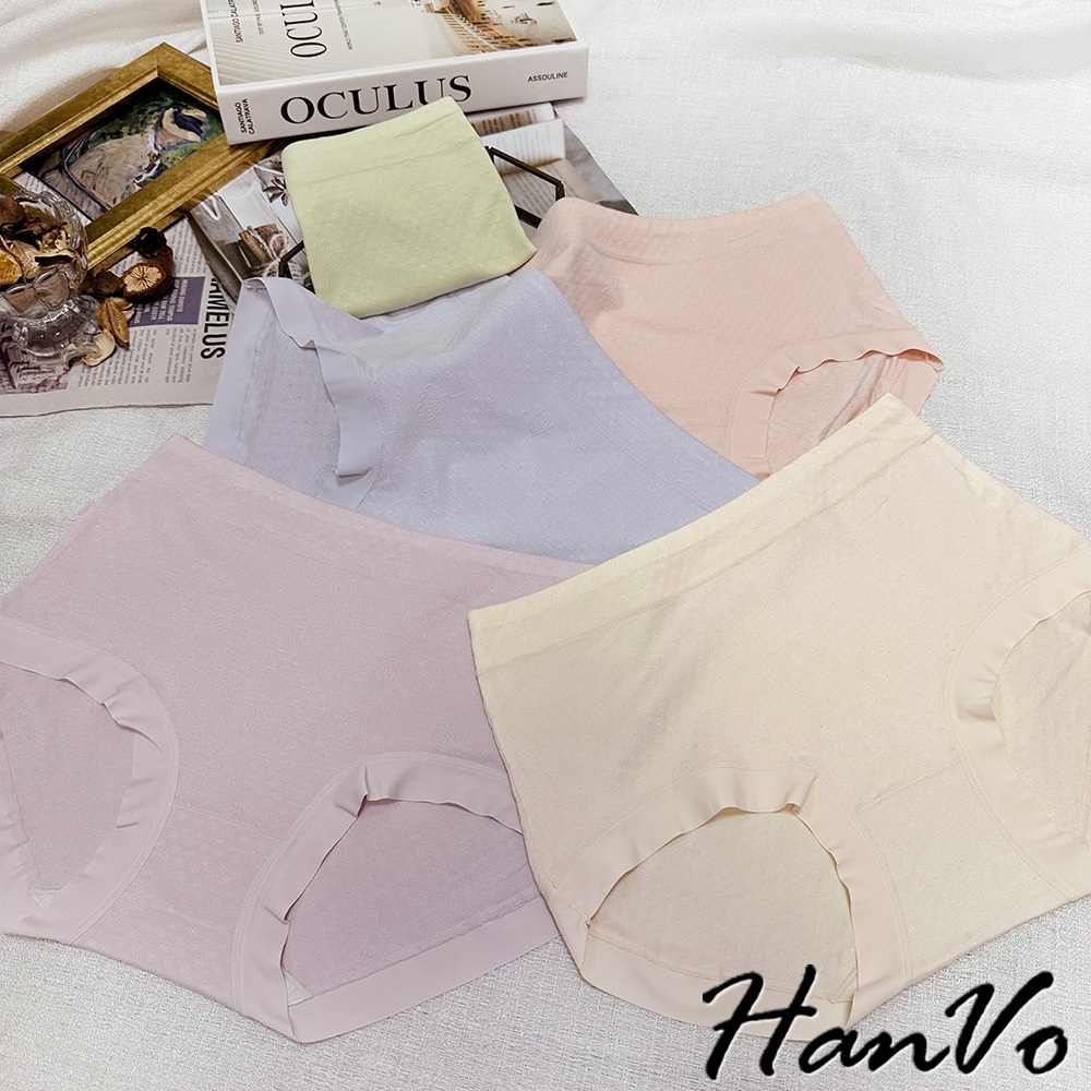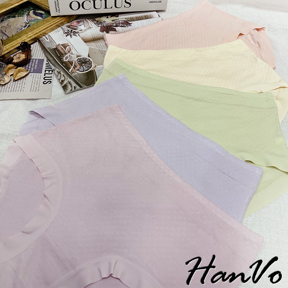【HanVo】花紋壓痕素色莫代爾內褲 吸濕排汗親膚柔軟 中腰 獨立包裝 流行少女內褲 內著 A11-5307淡藤紫|嫩草綠|花瓣粉|芋香紫|柔膚杏PantiesHanVo Wear Collection