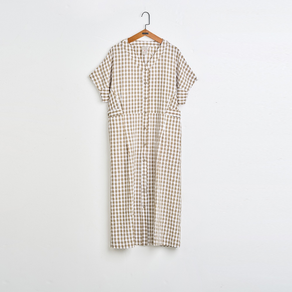 【gozo】➤格紋V領開襟短袖洋裝(淺咖_F) | 女裝 V領 百搭淺咖,Fgozo 品牌旗艦店