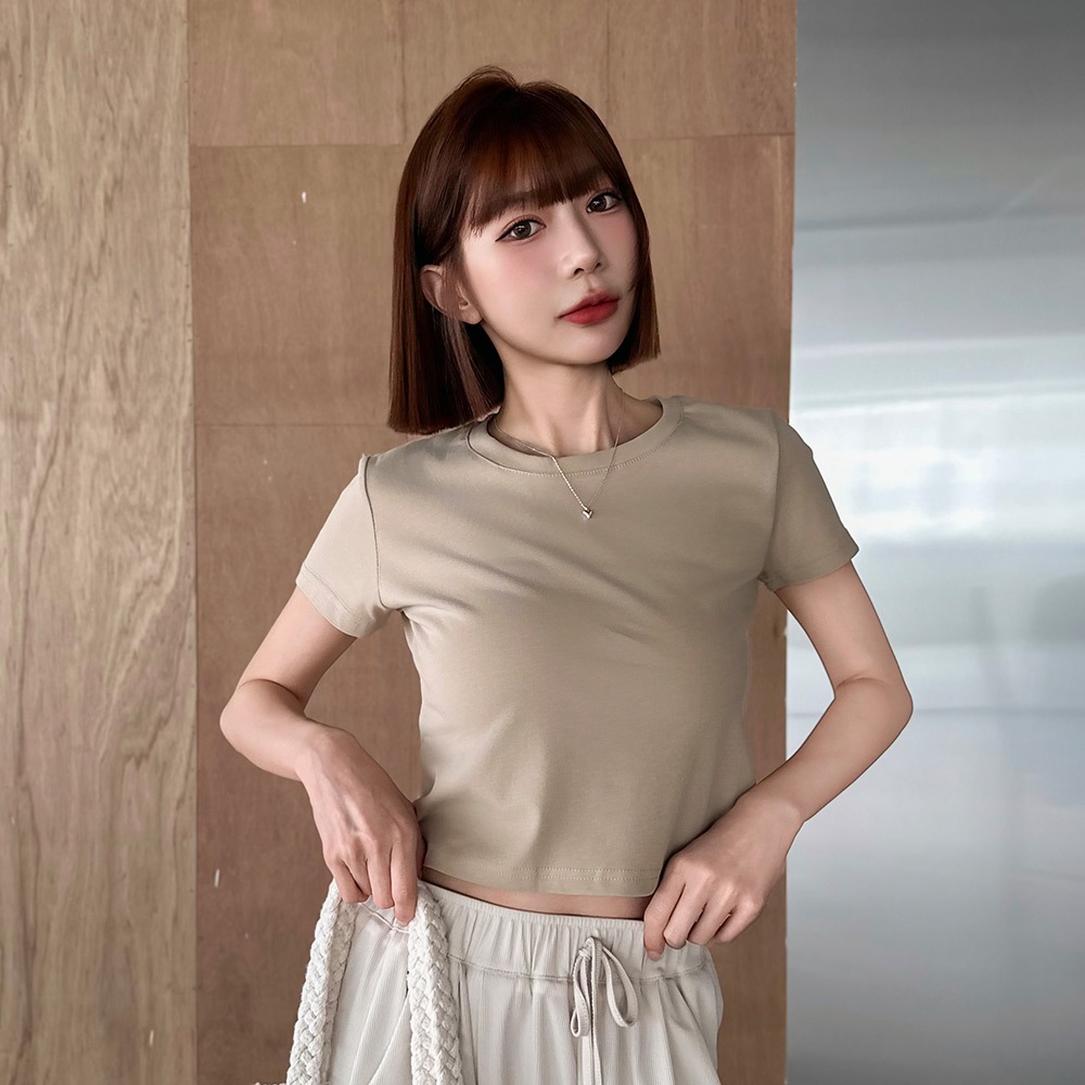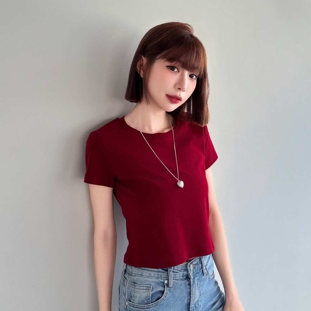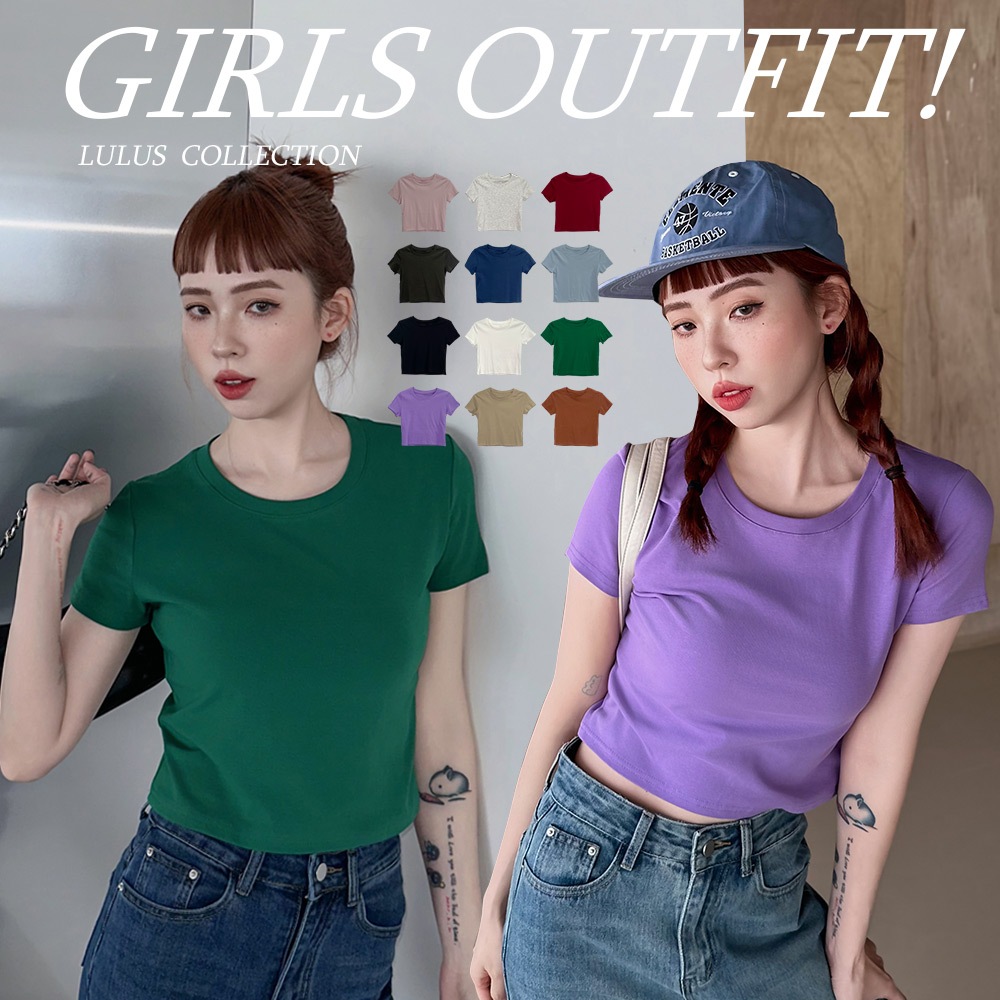 LULUS/經典不敗高彈力短版上衣12色【A01250581】圓領短袖 素T 250723黑|磚橘|藍|白|白灰|粉紫|奶咖|亮綠|酒紅|深灰|淺藍|紫T-shirtsLULUS