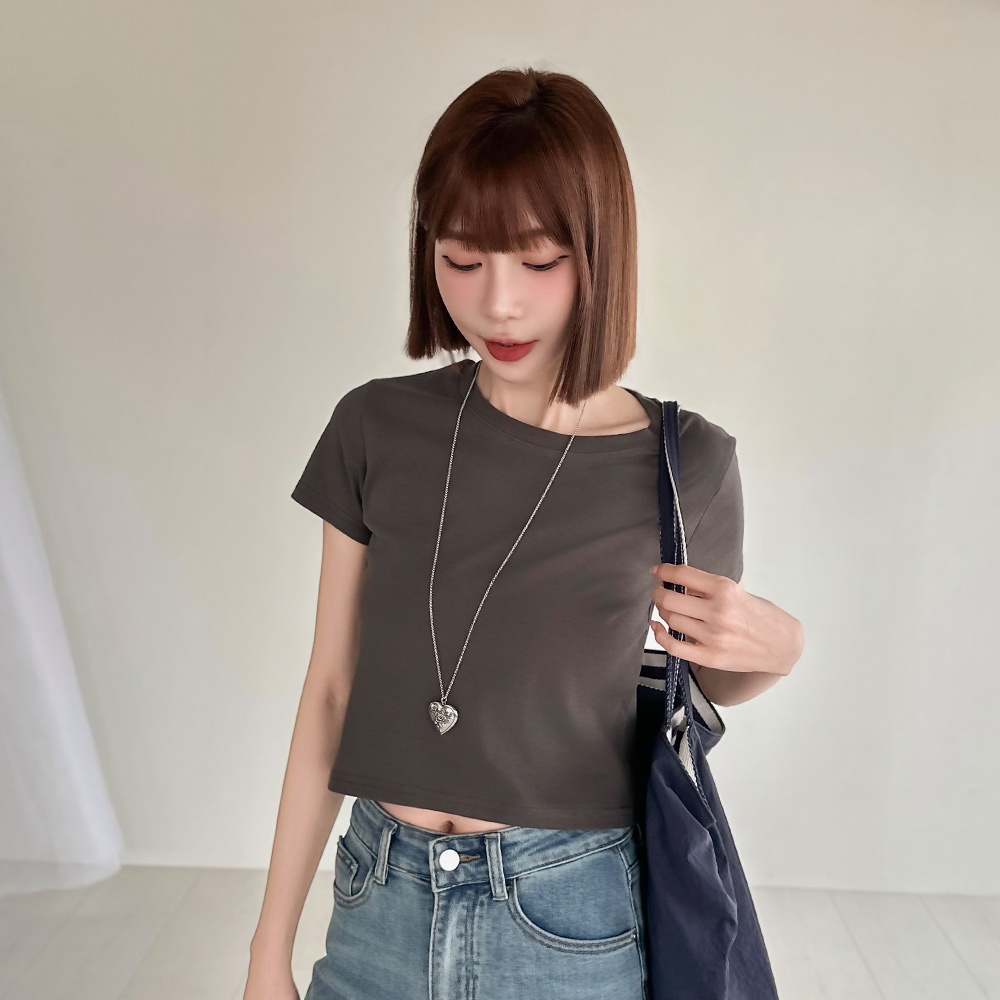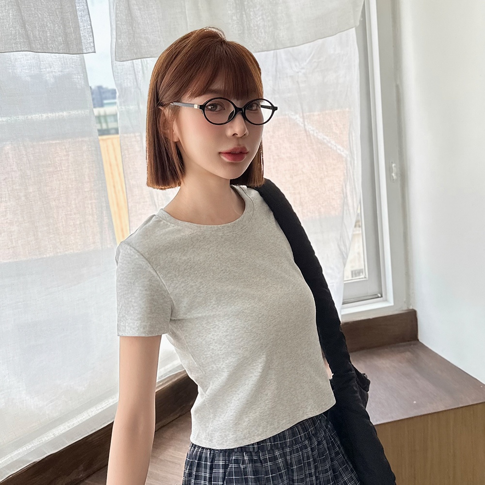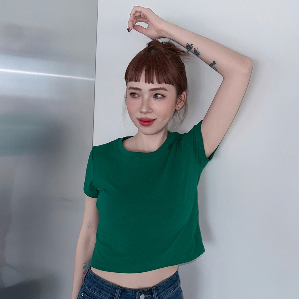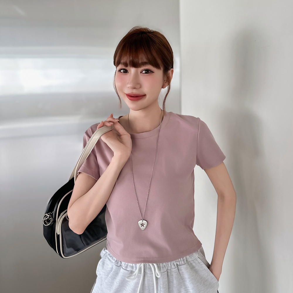 LULUS/經典不敗高彈力短版上衣12色【A01250581】圓領短袖 素T 250723黑|磚橘|藍|白|白灰|粉紫|奶咖|亮綠|酒紅|深灰|淺藍|紫T-shirtsLULUS