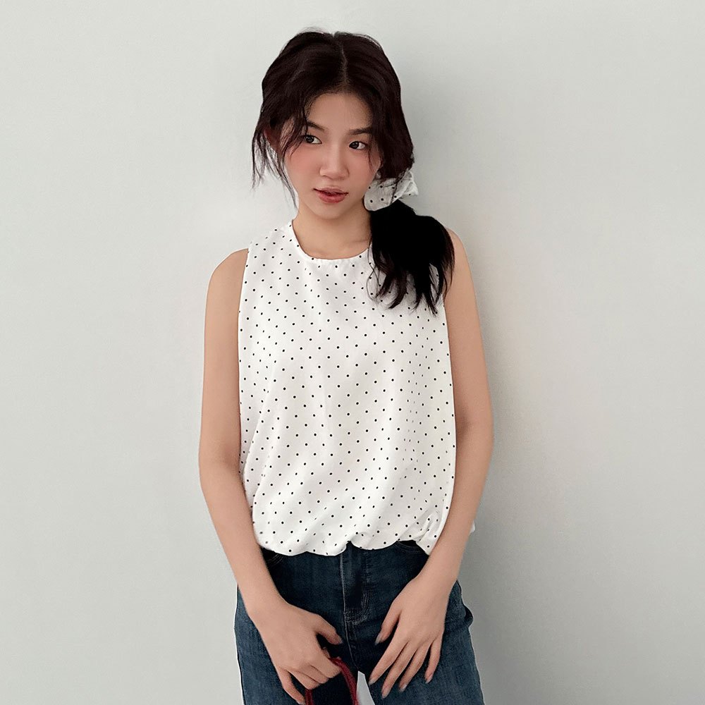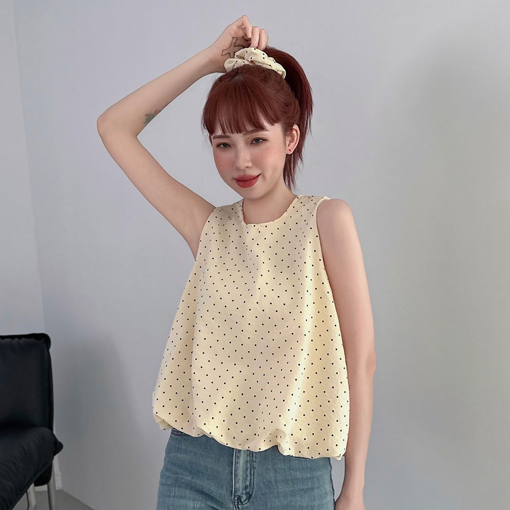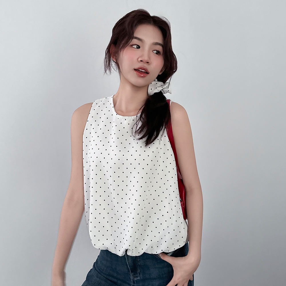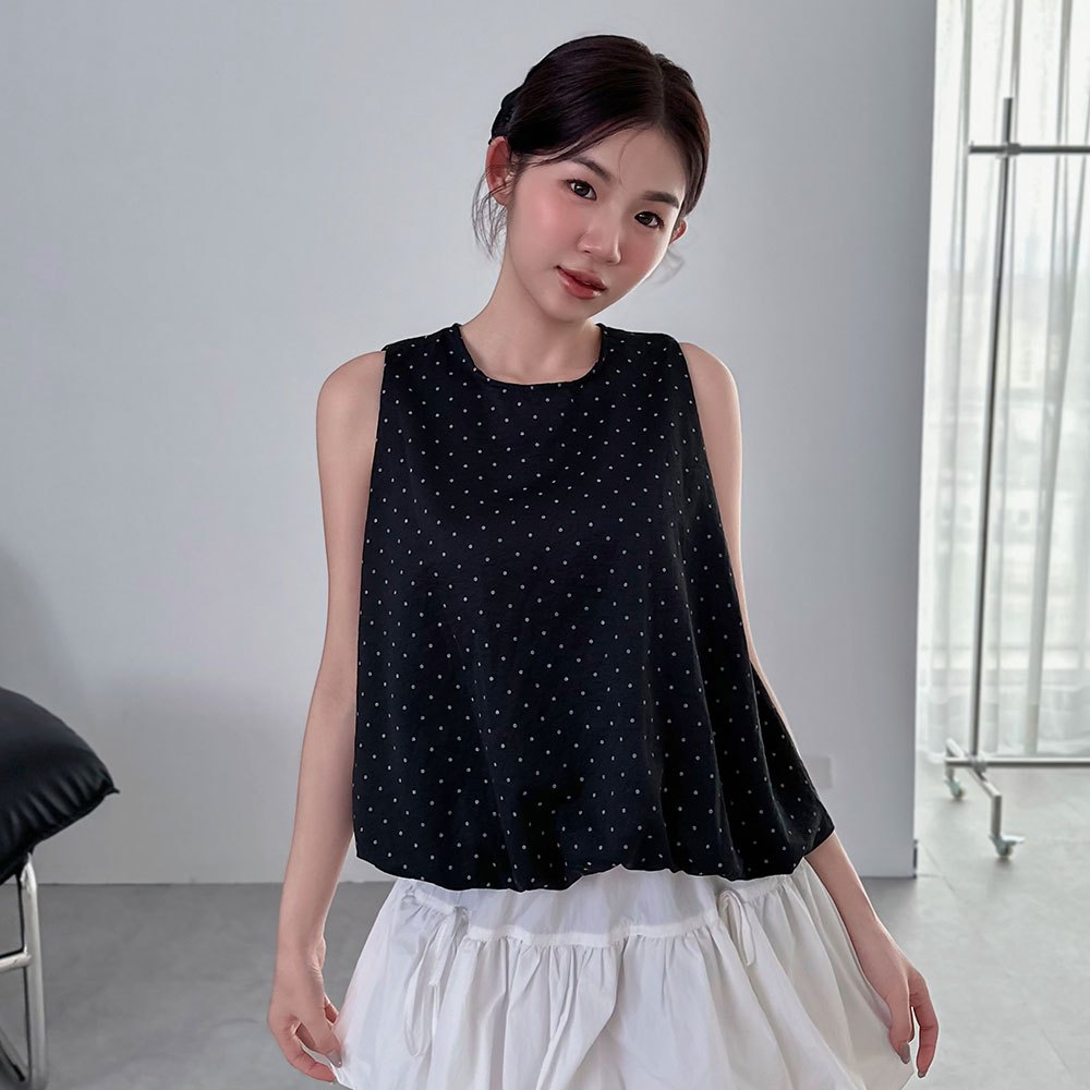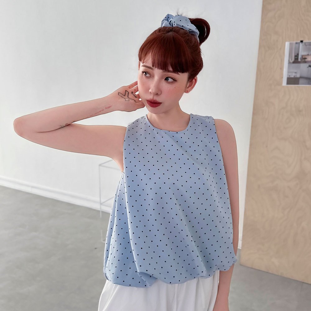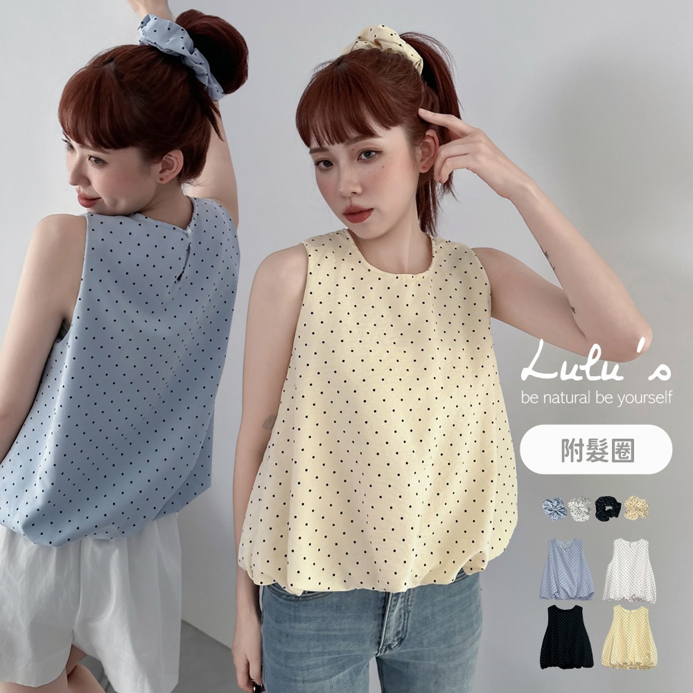 LULUS/現貨/復古點點澎澎無袖上衣附髮圈4色【A01250541】附配件 250710黑|藍|白|奶黃T-shirtsLULUS