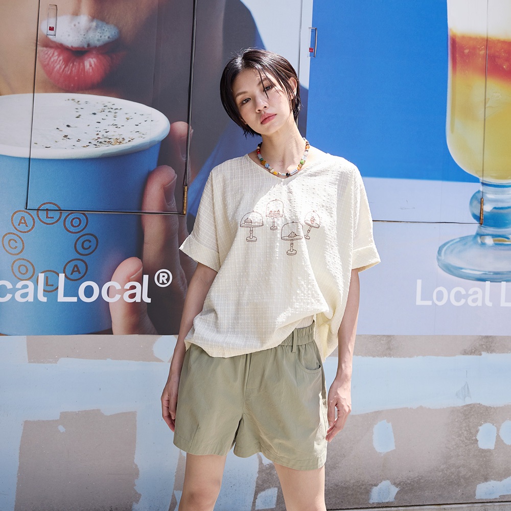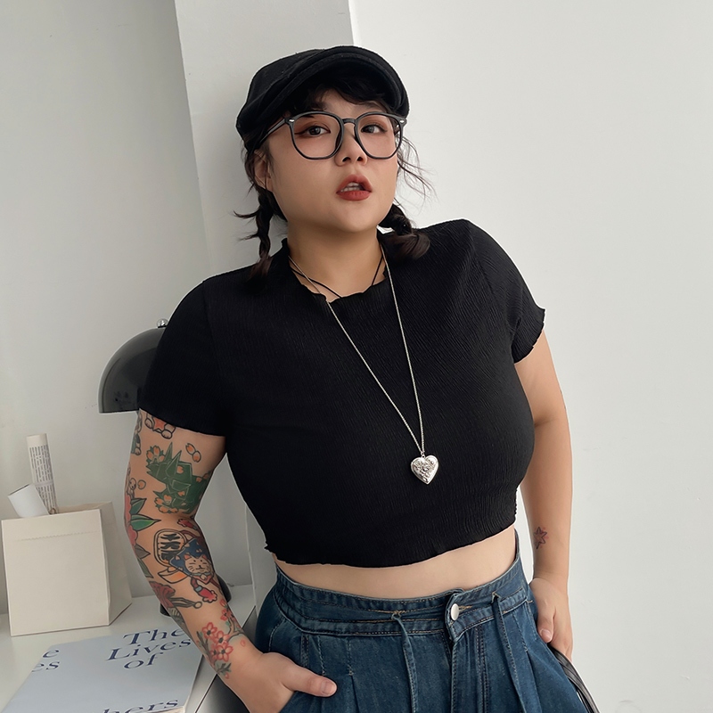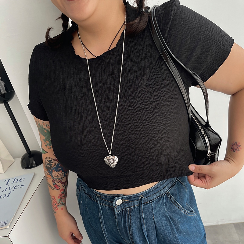 LULUS/PLUS/中大尺碼/肌理紋木耳邊短版上衣4色【A01250522】250702杏|黑|藍|白T-shirtsLULUS