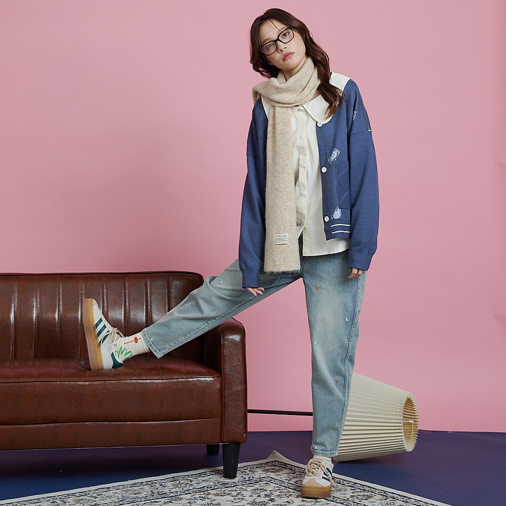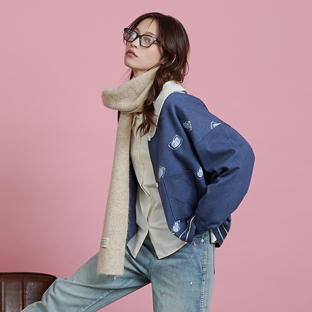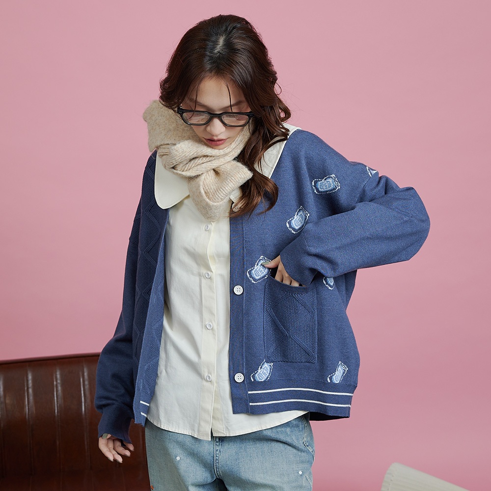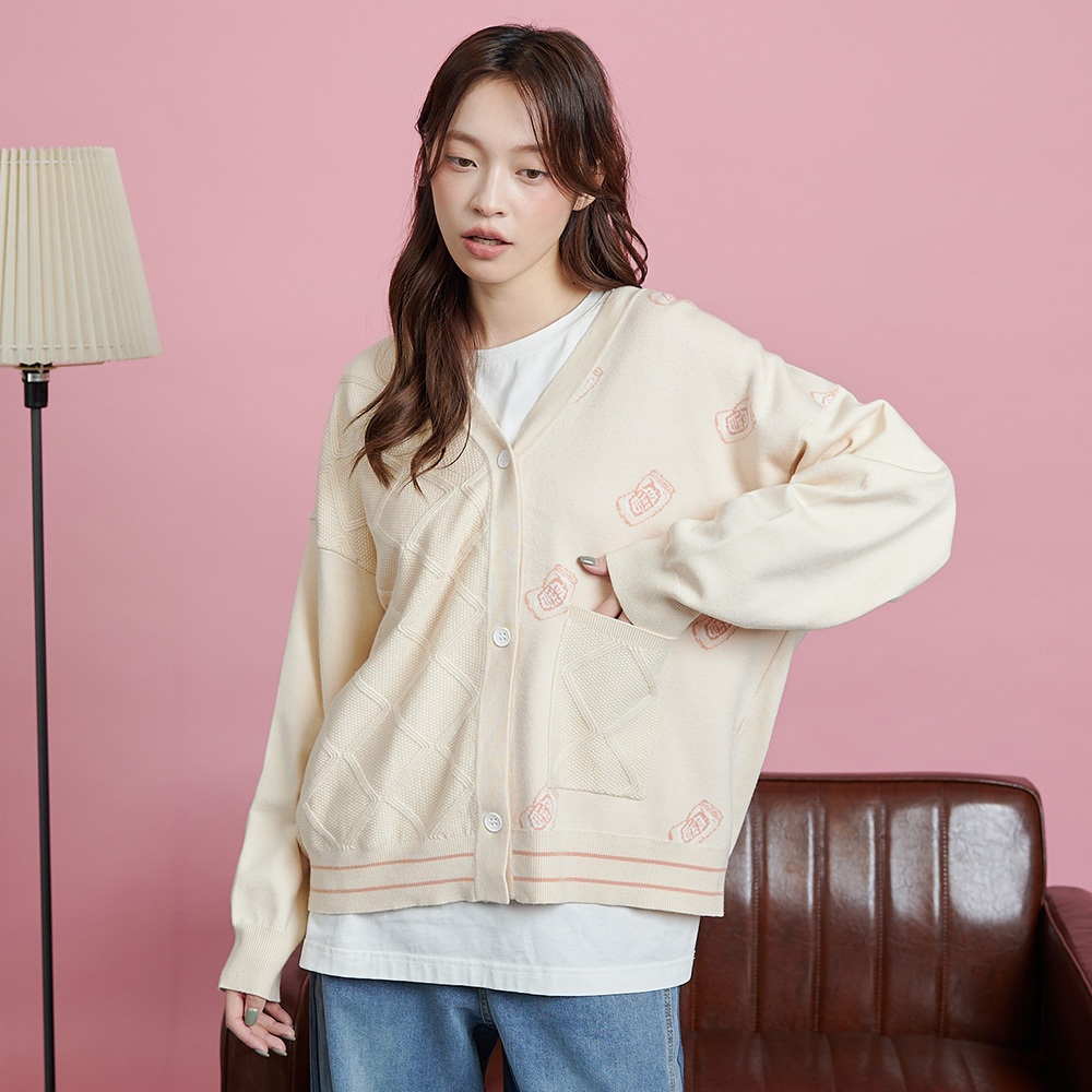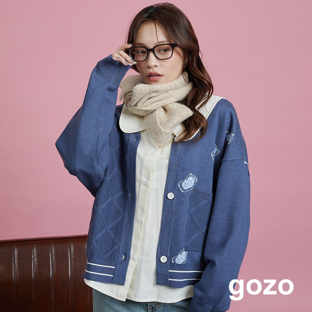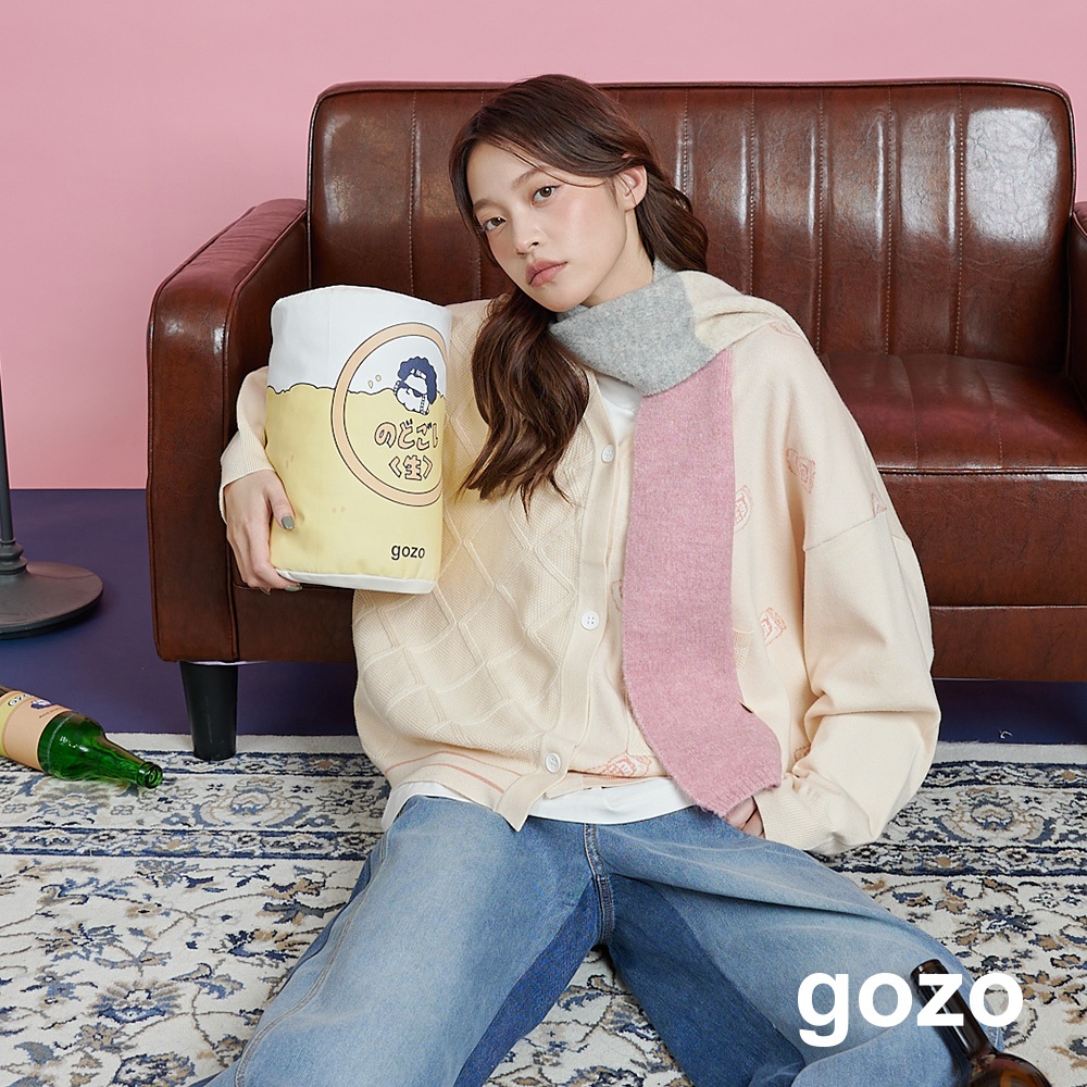 【gozo】醉開心啤酒緹花毛衣開襟外套(米黃/藍色_F) | 女裝 V領 保暖米黃,F|藍色,Fgozo 品牌旗艦店