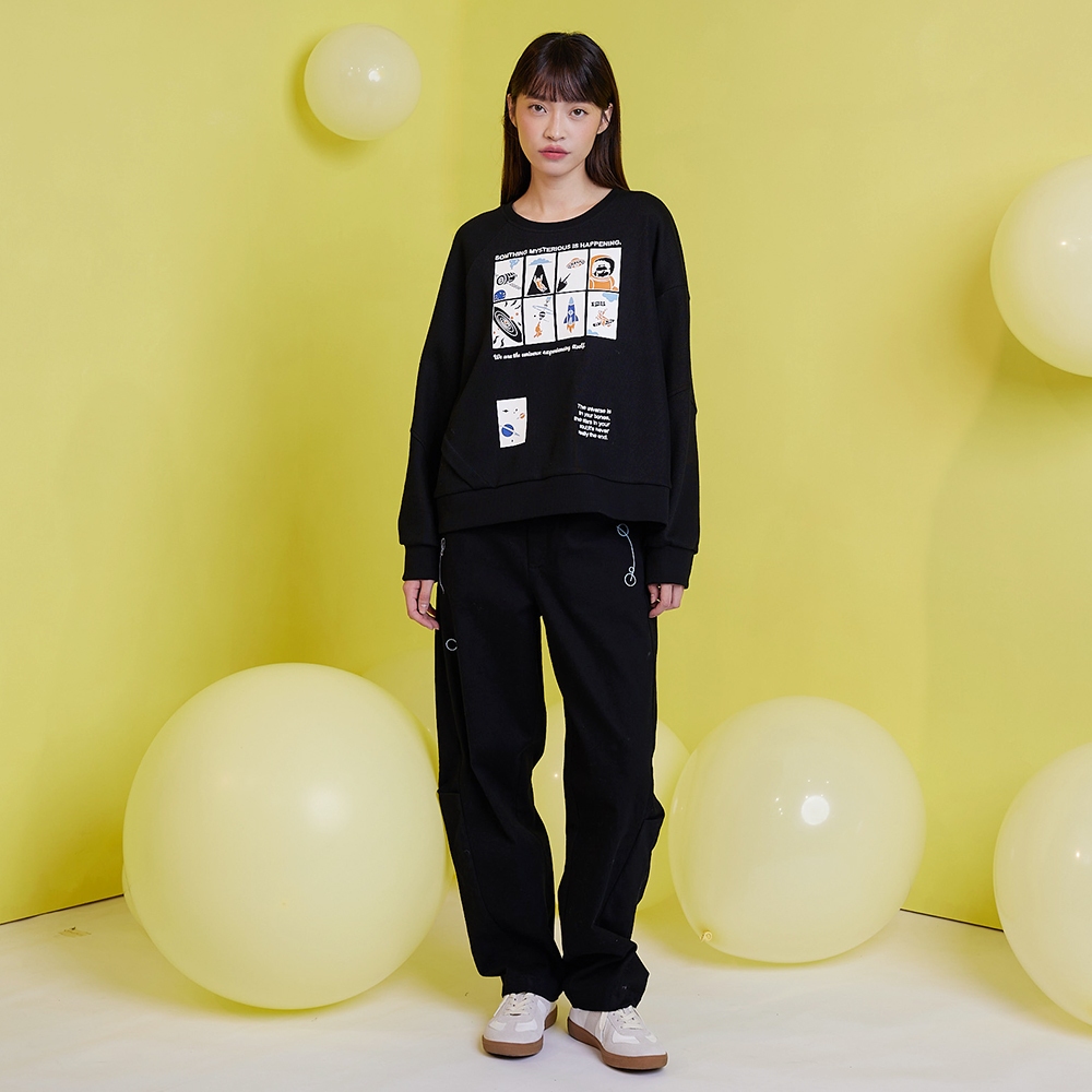 【gozo】太空行星軌跡剪接打褶直筒褲(黑色/深綠_M/L) | 女裝 修身 休閒黑色,M|黑色,L|深綠,M|深綠,LPantsgozo 品牌旗艦店