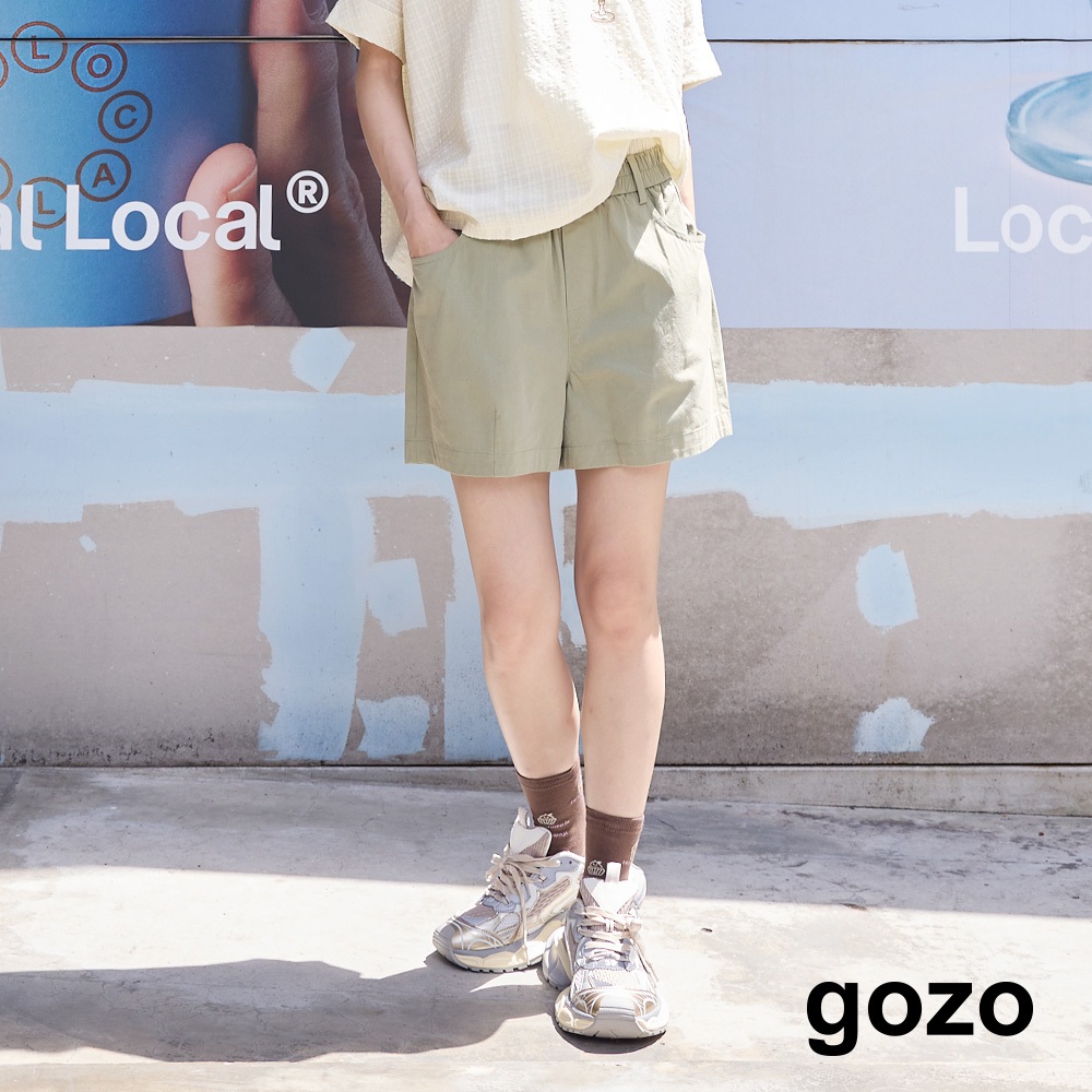 【gozo】➤織標雙腰頭造型天絲棉短褲(黑色/綠色_M/L) | 女裝 修身 休閒綠色,L|黑色,M|黑色,L|綠色,MShortsgozo 品牌旗艦店