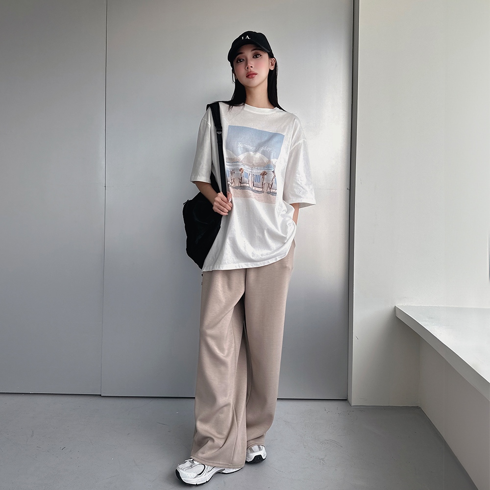 LULUS/夏日輕柔棉腰抽繩休閒長褲4色【A04250080】涼爽 舒適 250507卡其|花灰|深灰|黑PantsLULUS