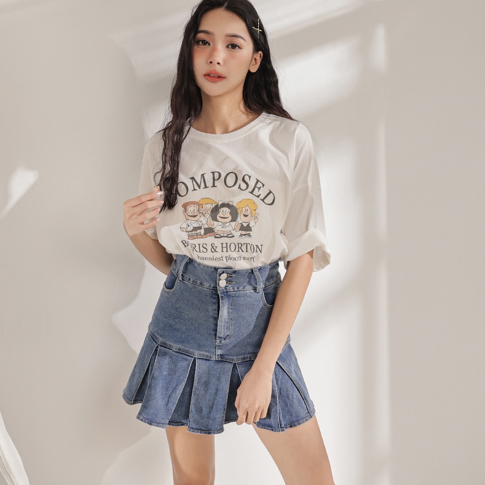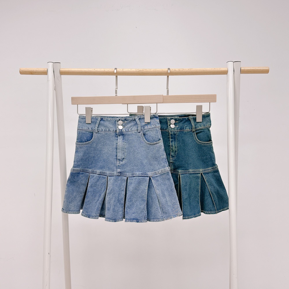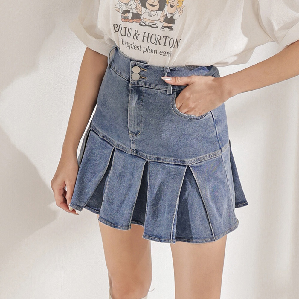IN SHOP 下擺打摺彈力牛仔短裙-共2色【KT21783】淺藍,S|淺藍,M|淺藍,L|復古藍,S|復古藍,M|復古藍,LIN’ SHOP 旗艦店