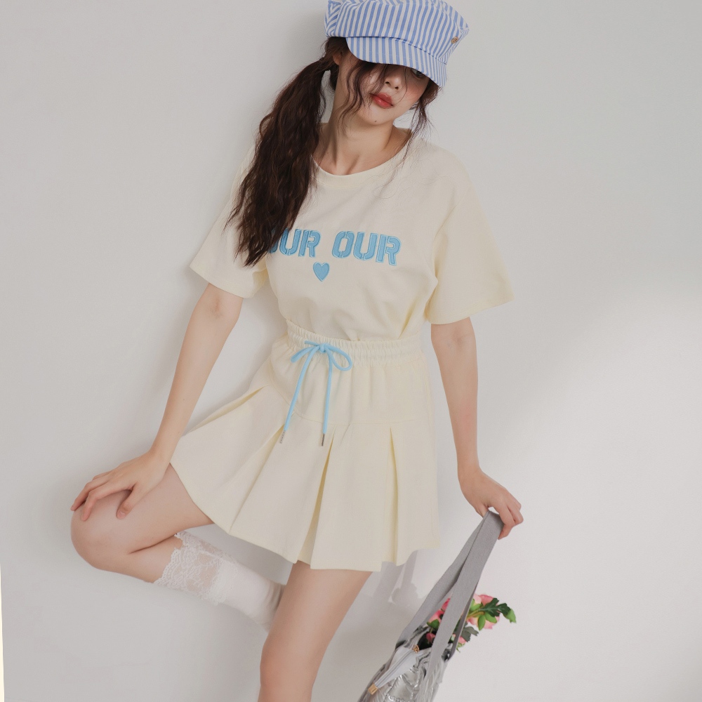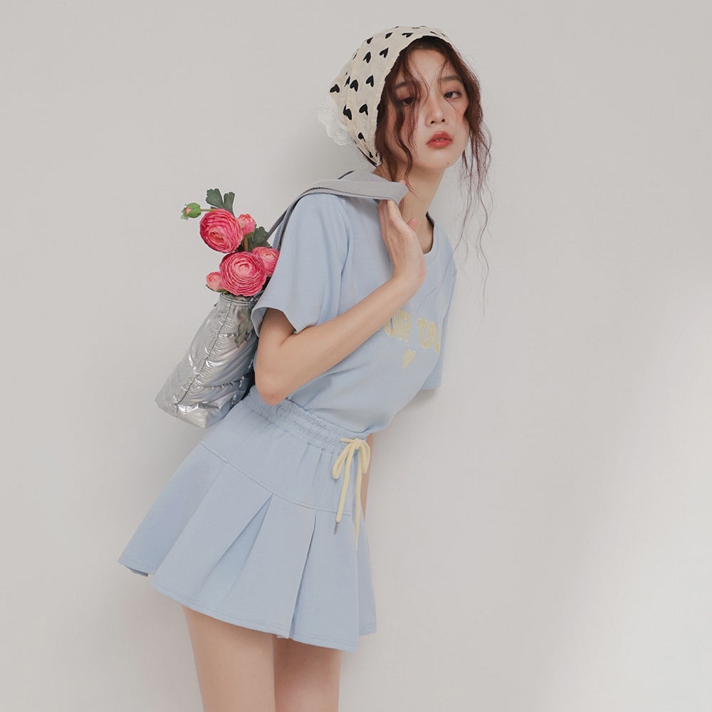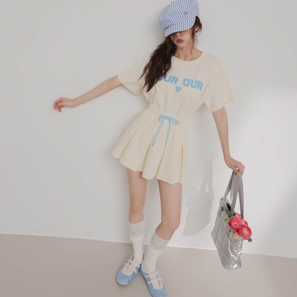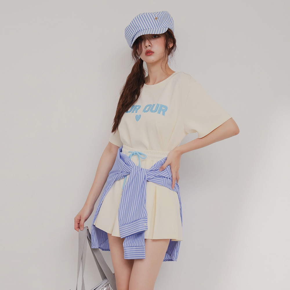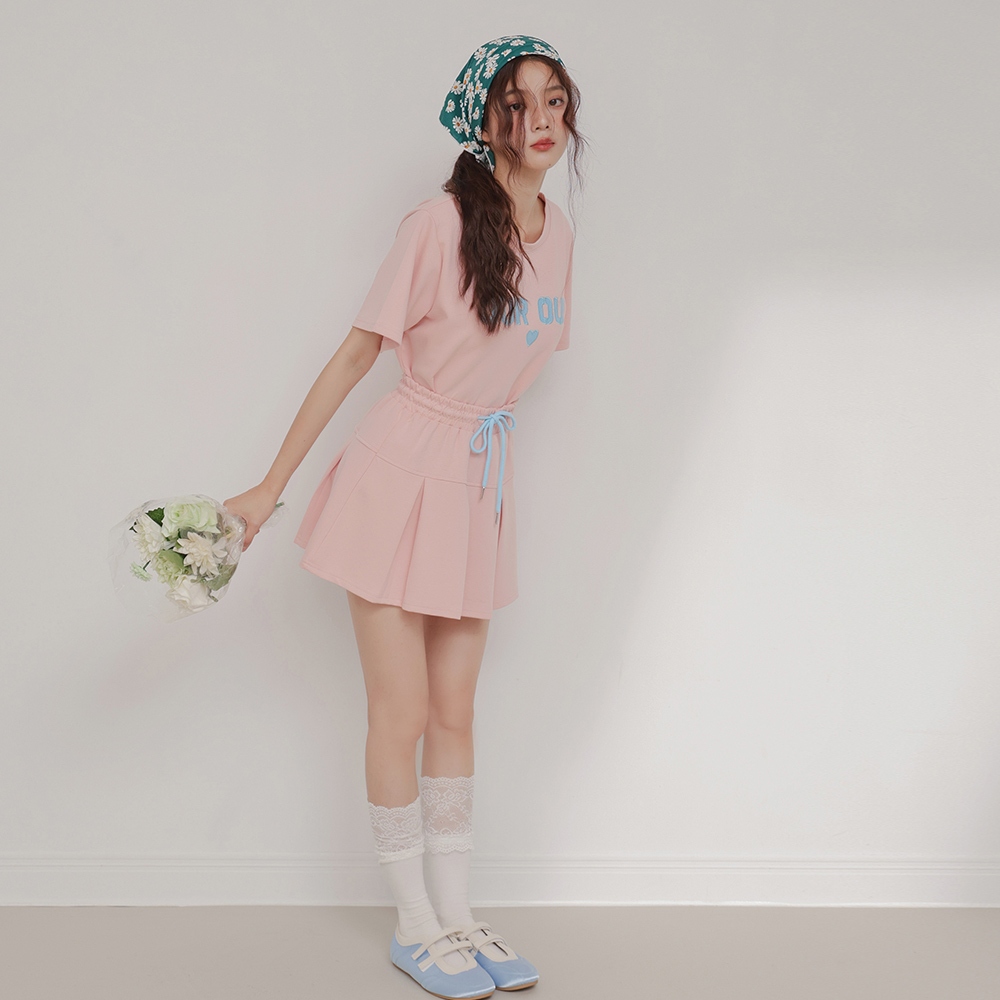 IN SHOP 俏皮撞色字短裙套裝-共4色【KT24545】白|粉|藍|黑Individual SetsIN’ SHOP 旗艦店