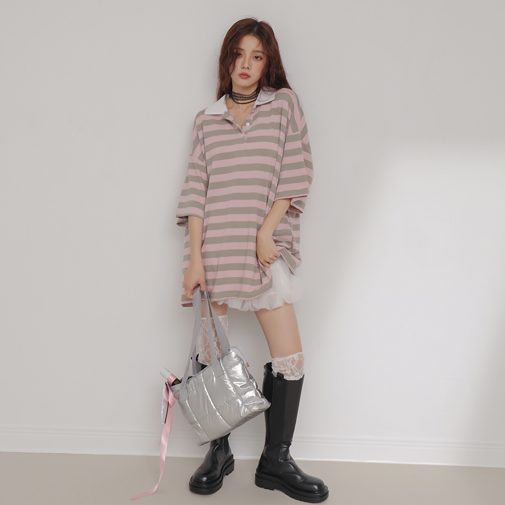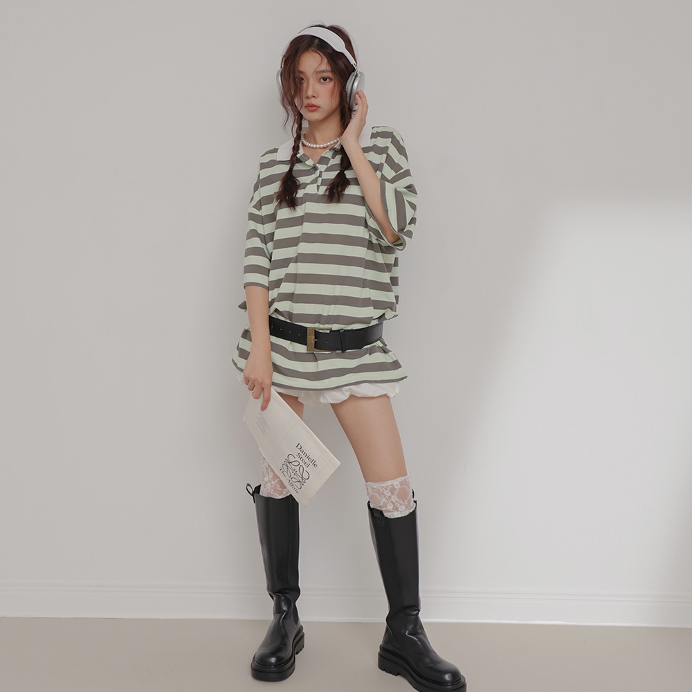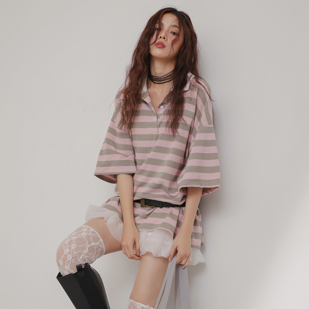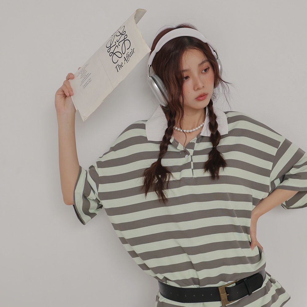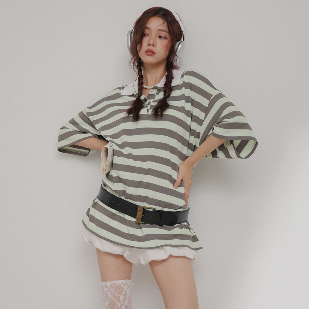 IN SHOP 寬大橫條POLO衫-共2色【KT224489】粉|果綠Polo ShirtsIN’ SHOP 旗艦店
