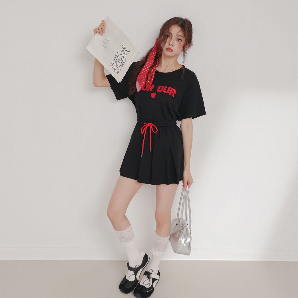 IN SHOP 俏皮撞色字短裙套裝-共4色【KT24545】