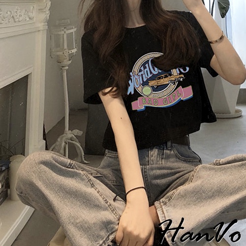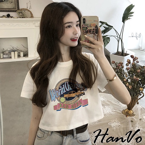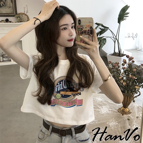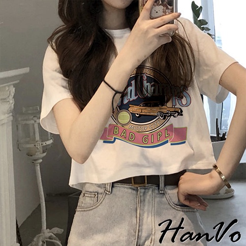 【HanVo】大膽跳色英文字母老爺車T恤 韓版休閒百搭顯瘦圓領短袖上衣 韓系女裝 女生衣著 A01-1346黑色|白色T-shirtsHanVo Wear Collection