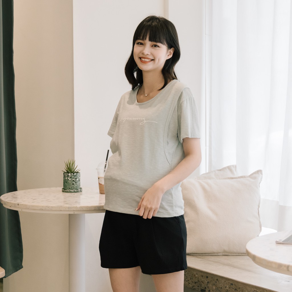 Mamamia孕婦裝 beginning高彈竹節哺乳衣 M~L 正韓製 孕婦裝 孕婦上衣 短袖 哺乳[A1781]白,M|白,L|黑,M|黑,L|粉紫,M|粉紫,L|綠,M|綠,LBreastfeeding WearMamamia孕婦裝