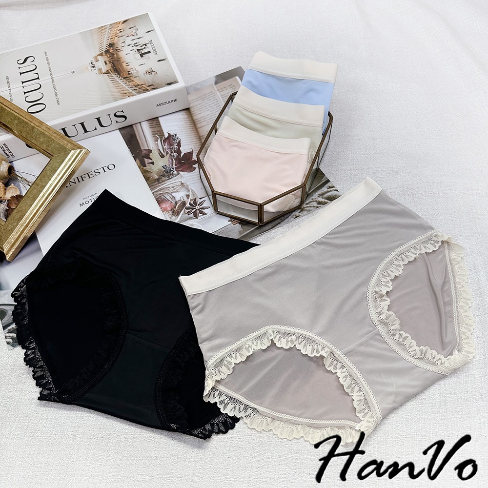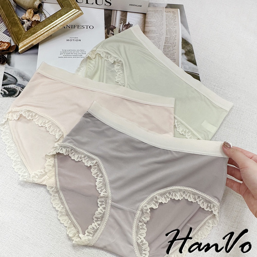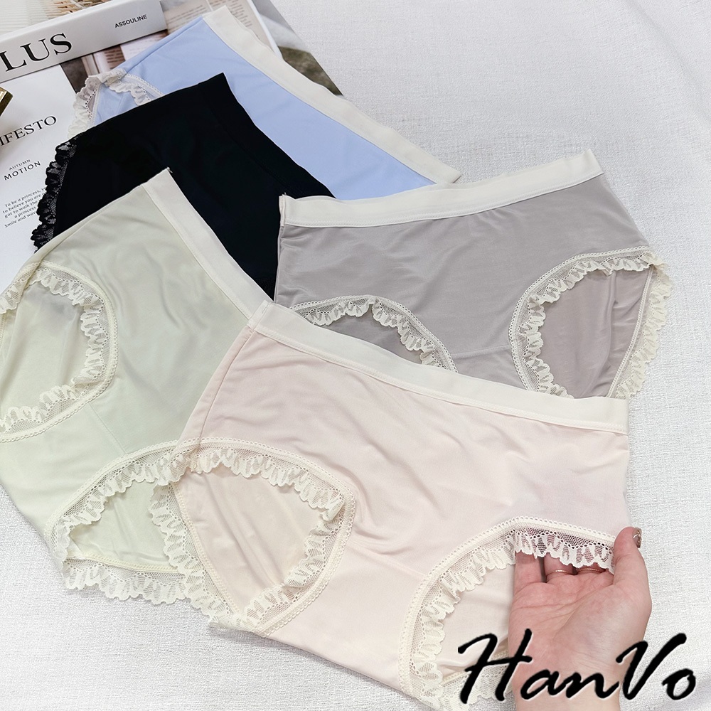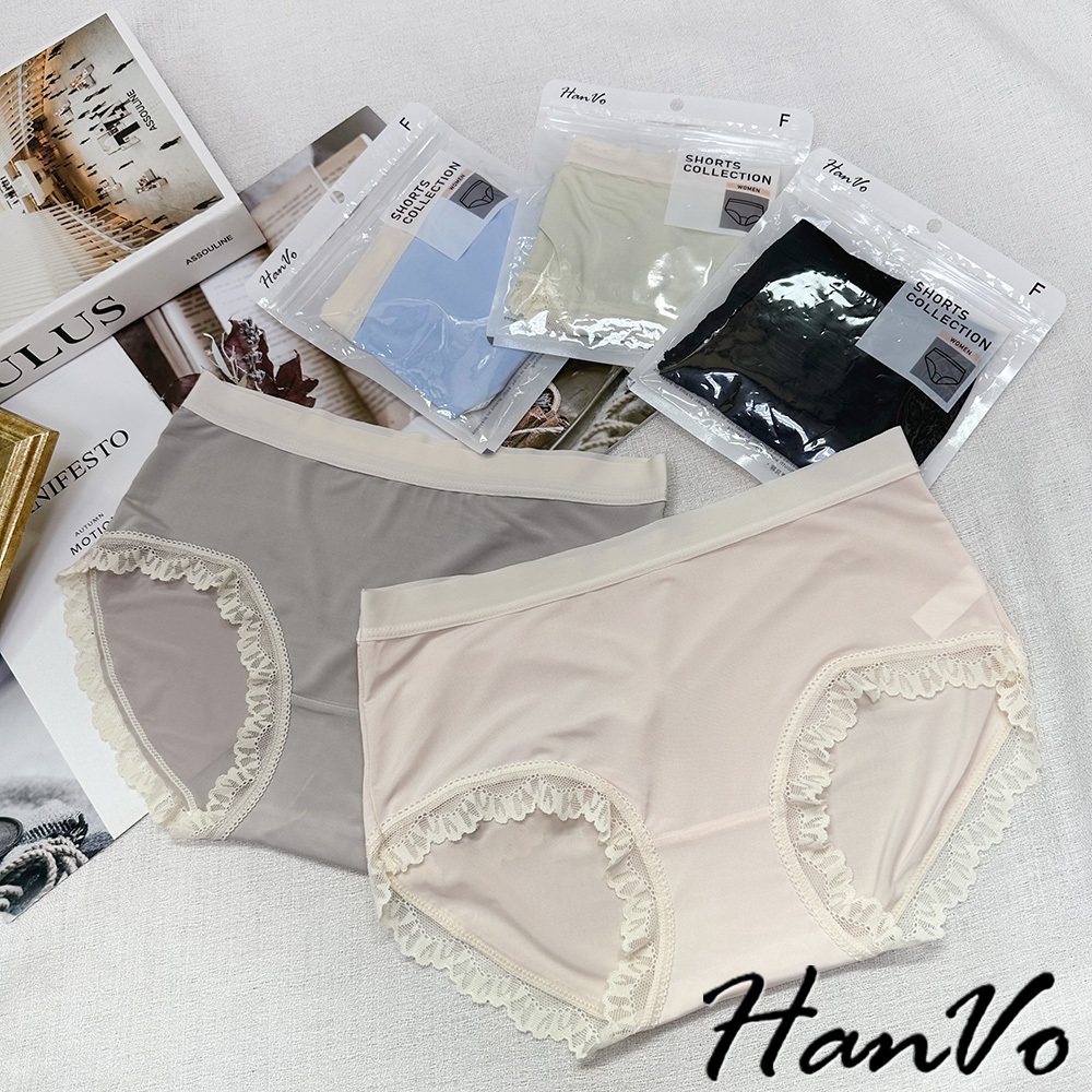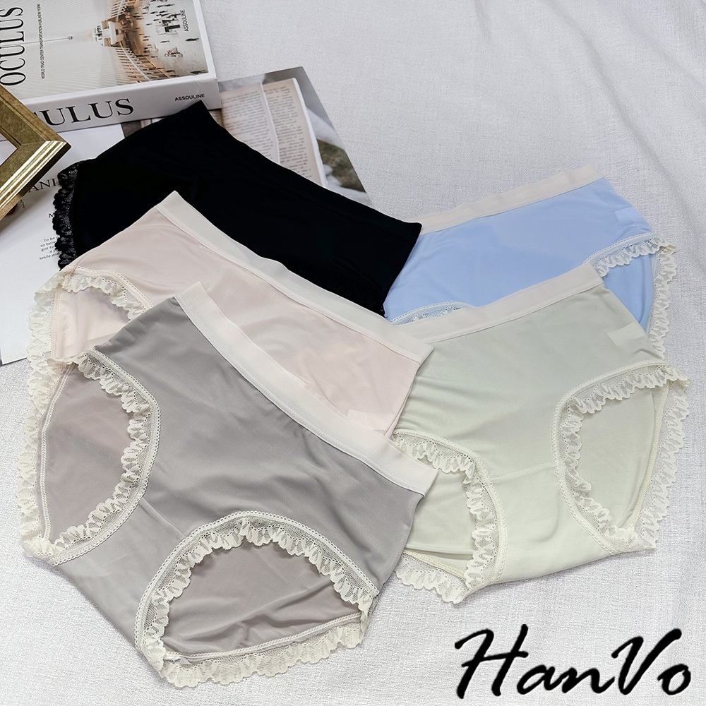 【HanVo】清新涼感少女冰絲中腰內褲 獨立包裝 輕薄透氣包覆提臀三角內褲 流行少女內褲 內著 A11-5801淡粉膚|質感灰|天空藍|星辰黑|蜜瓜綠PantiesHanVo Wear Collection