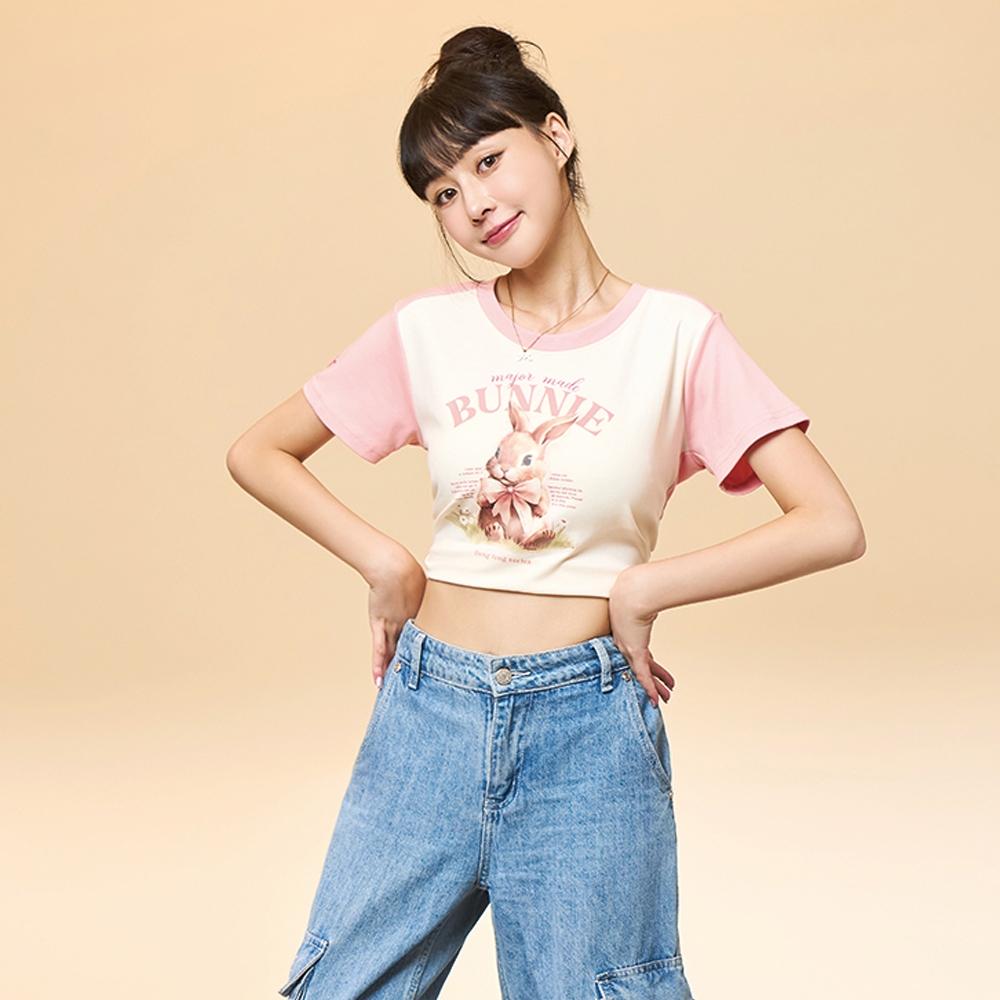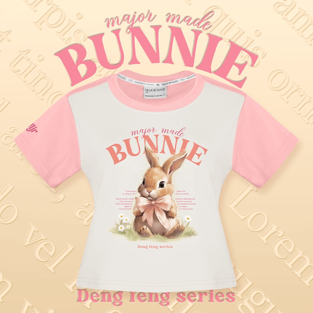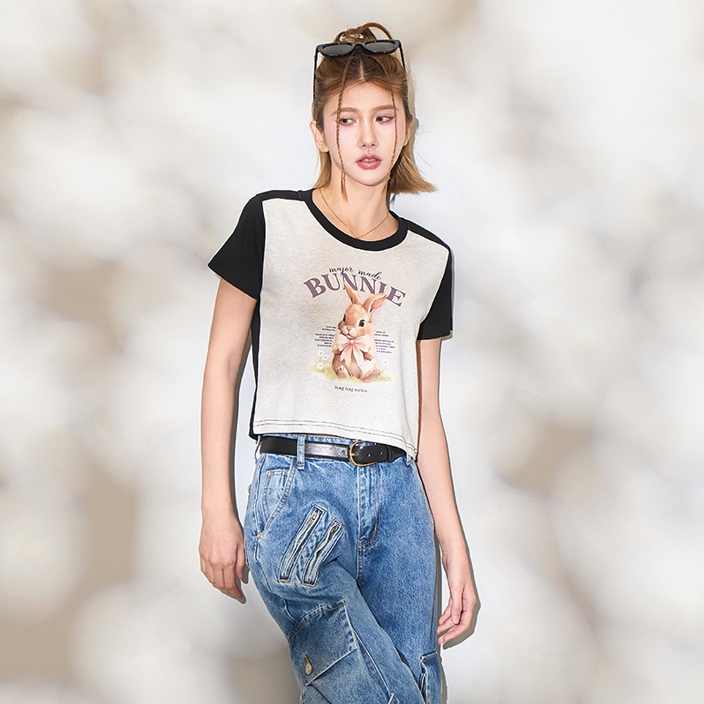 【MAJOR MADE】緞帶兔兔接袖短版T奶油白,S|奶油白,M|奶油白,L|白花灰,S|白花灰,M|白花灰,LT-shirtsMAJOR MADE