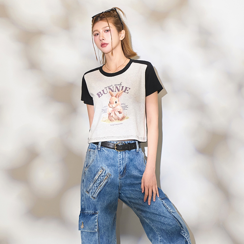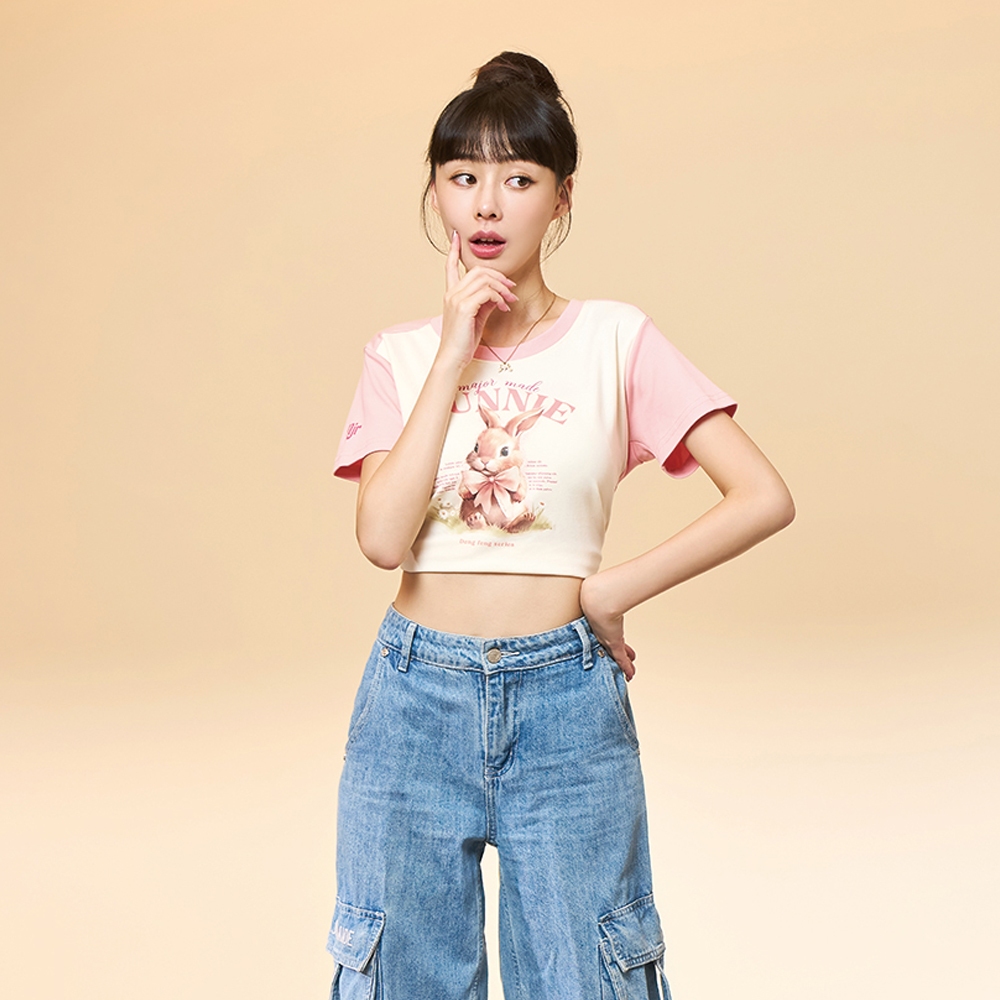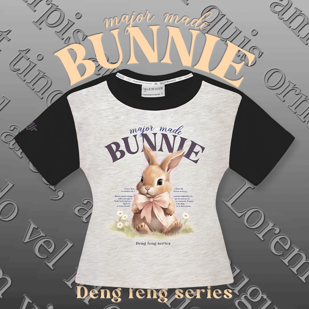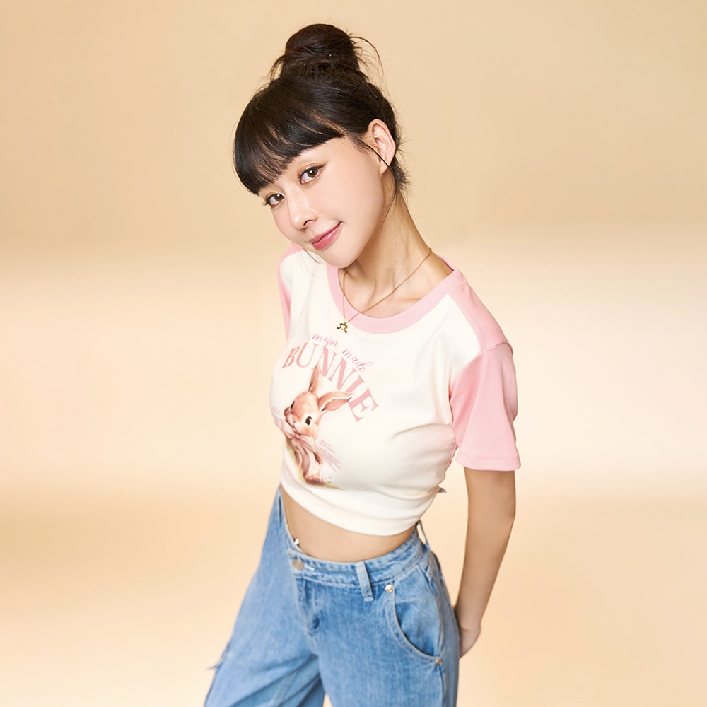 【MAJOR MADE】緞帶兔兔接袖短版T奶油白,S|奶油白,M|奶油白,L|白花灰,S|白花灰,M|白花灰,LT-shirtsMAJOR MADE