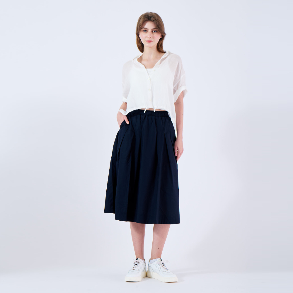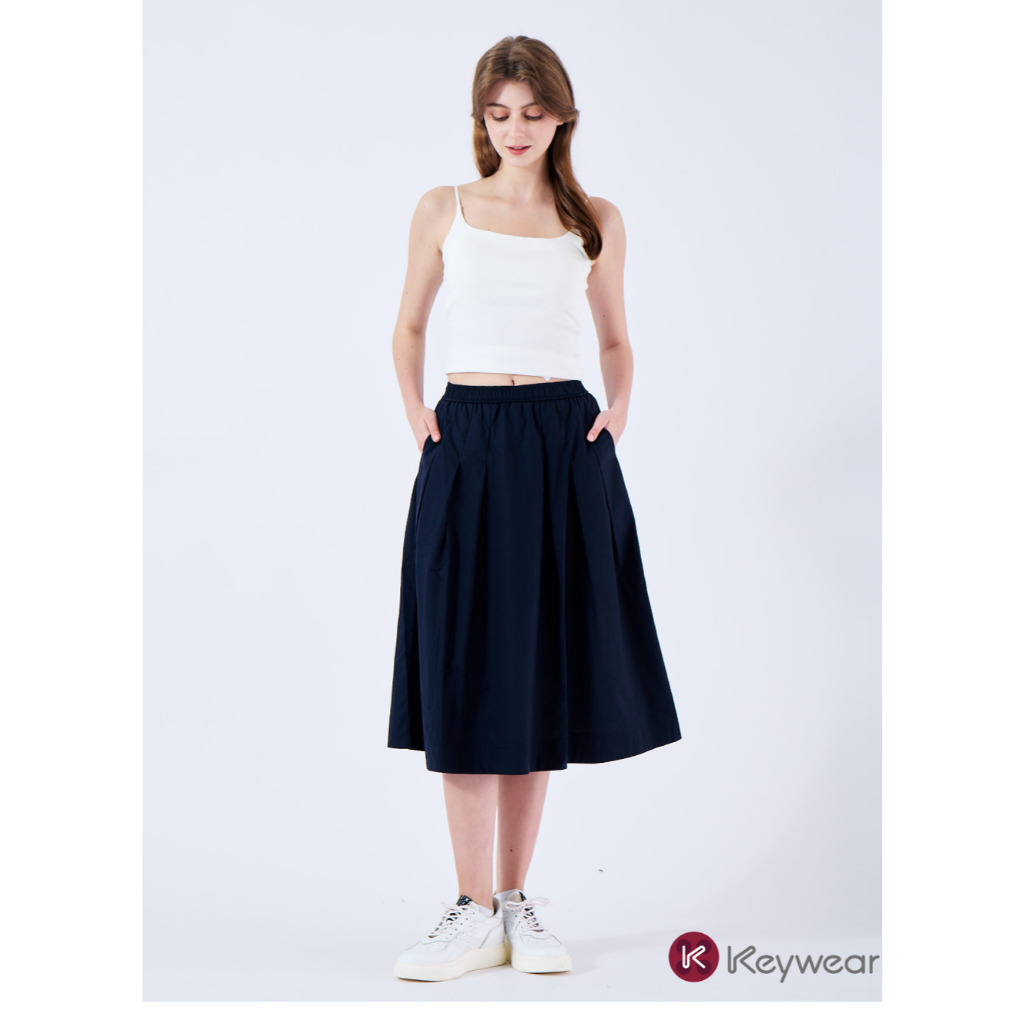 【KeyWear 奇威名品】素色純棉百搭傘裙 深藍色深藍,M|深藍,L|深藍,S|深藍,XLKeywear奇威官方旗艦店