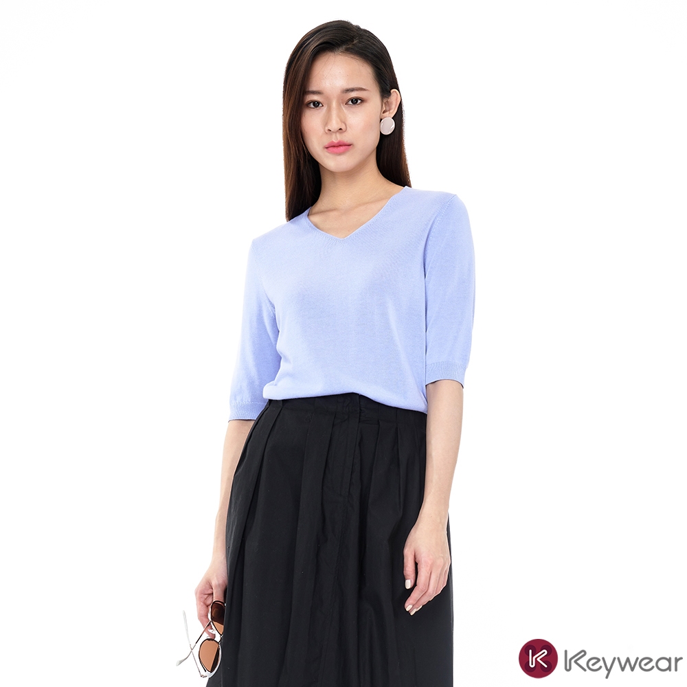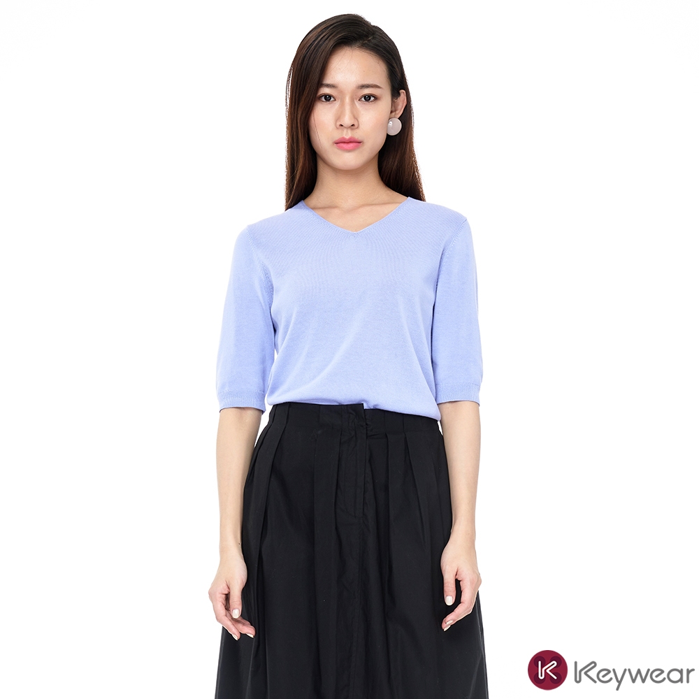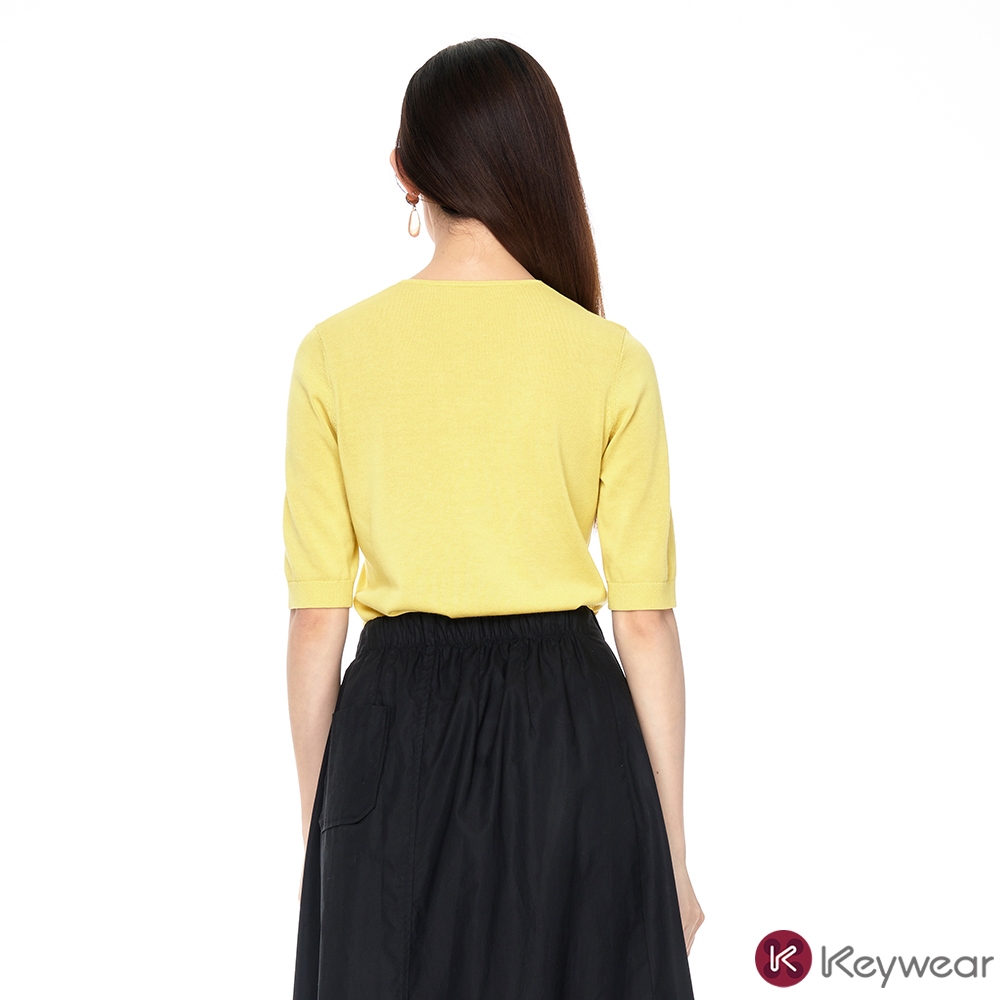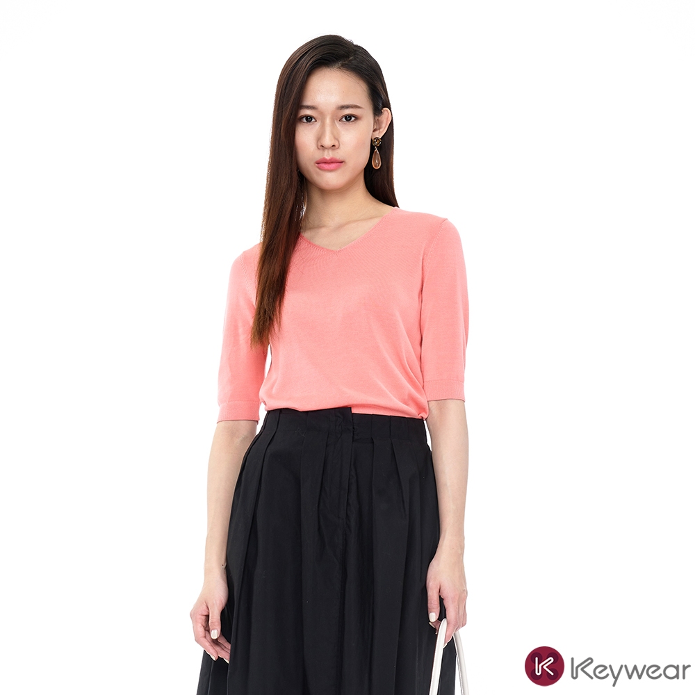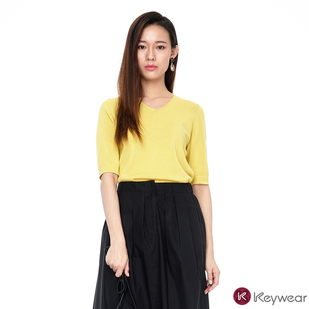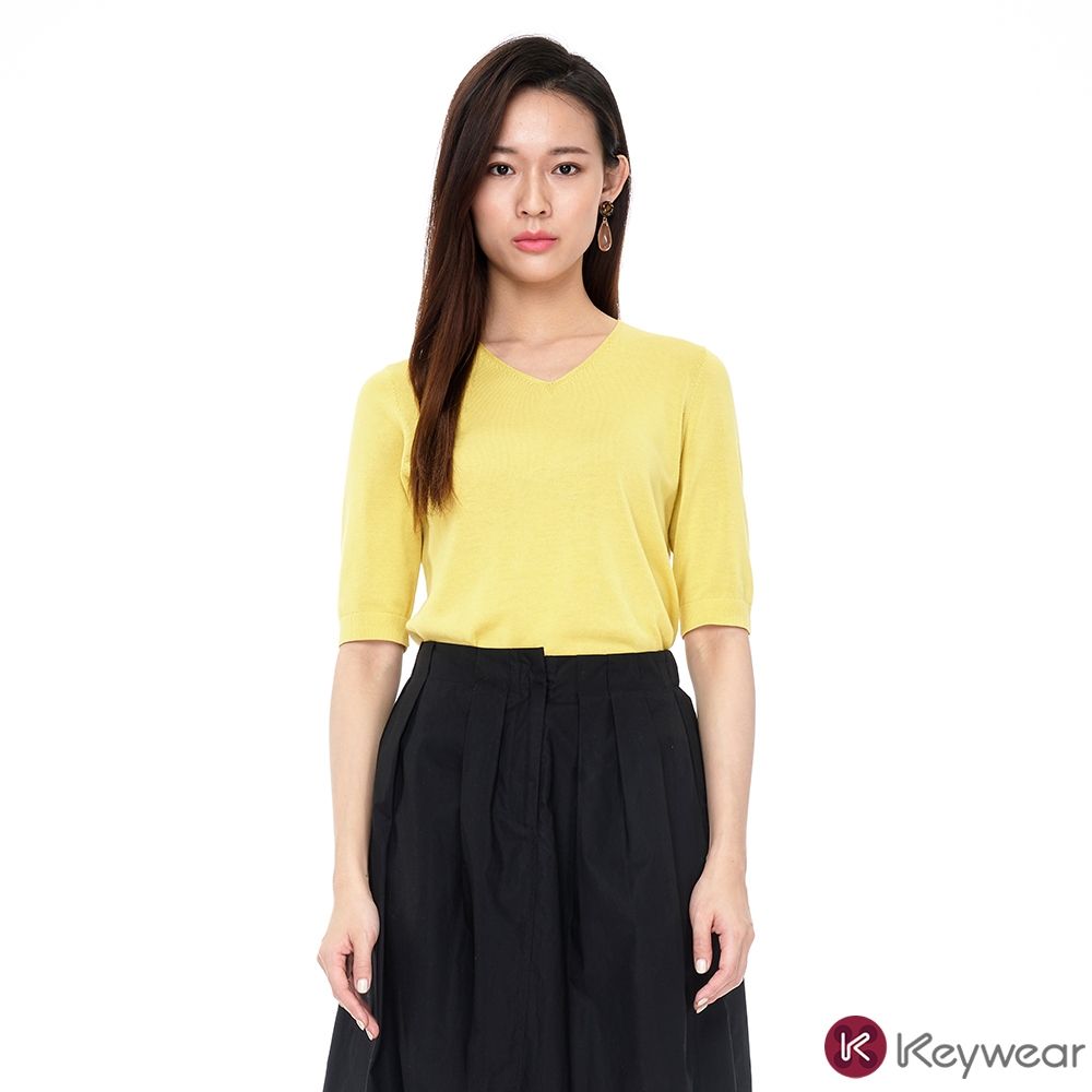 【KeyWear 奇威名品】百搭親膚V領短袖棉質針織上衣(共3色)紫,L|黃,S|黃,M|珊瑚紅,L|黃,L|紫,S|紫,M|珊瑚紅,S|珊瑚紅,MT-shirtsKeywear奇威官方旗艦店