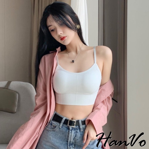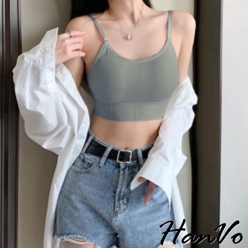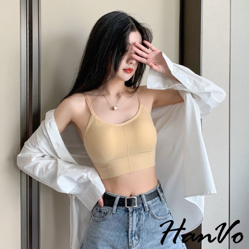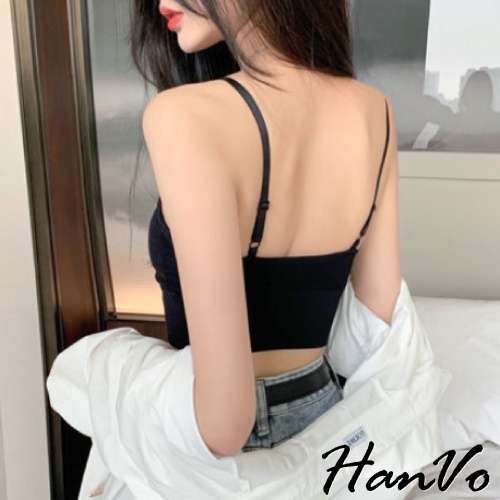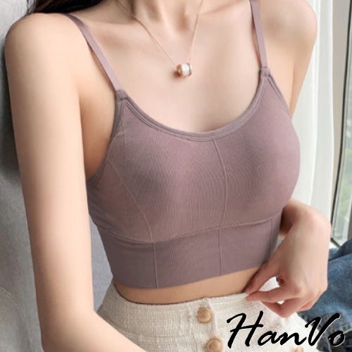 【HanVo】新款3D修身美背小可愛 性感可調細肩帶彈性挖背背心 附可拆式胸墊 女生內衣 女生衣著 A09-5028黑色|白色|綠色|膚色|薑黃|藕色|灰藍|NG福利品(不退貨 不挑色)Tanks & CamisolesHanVo Wear Collection