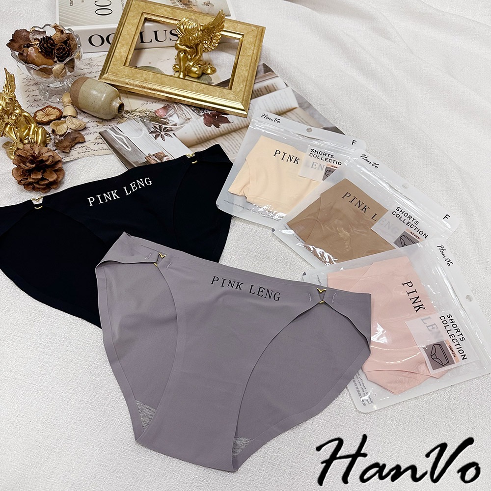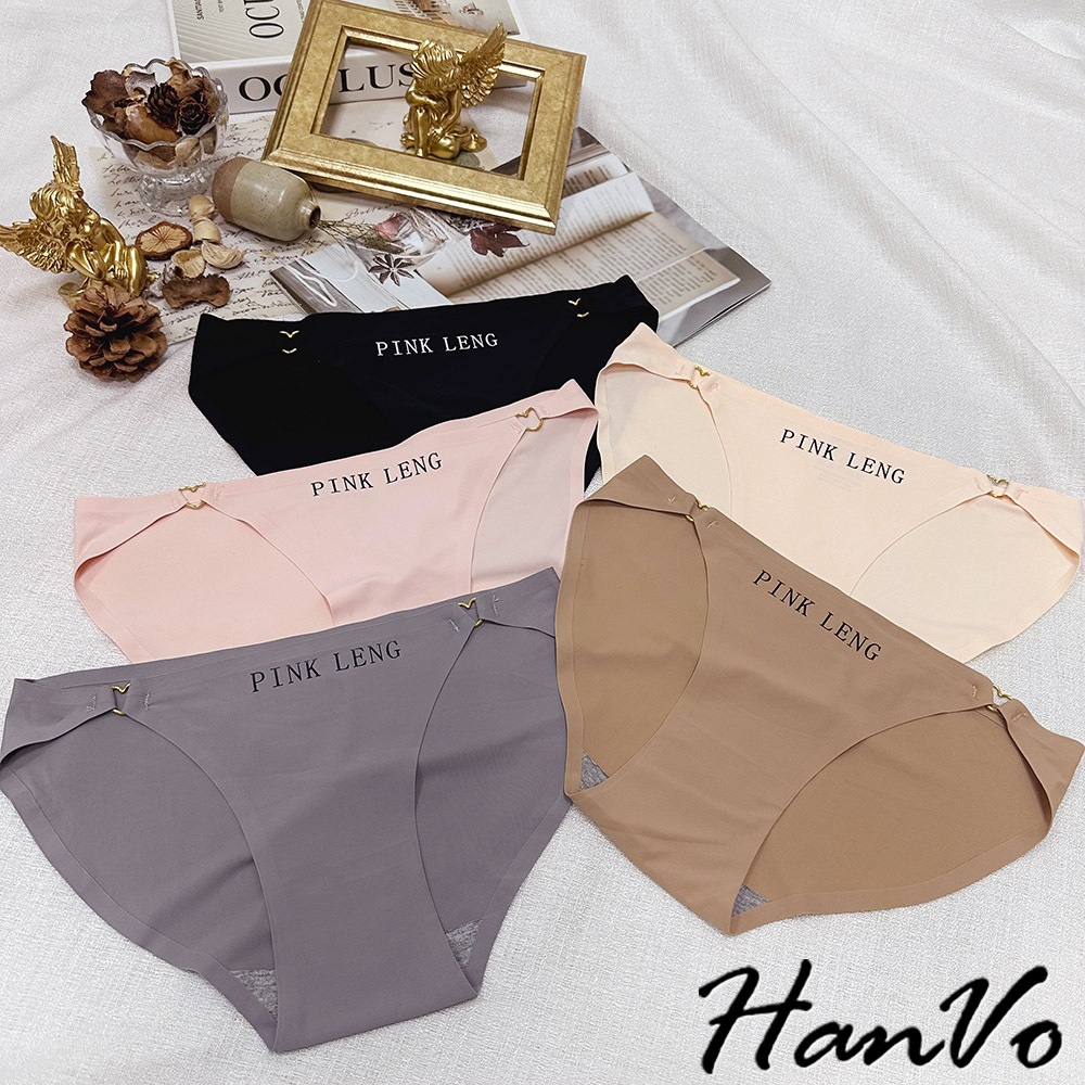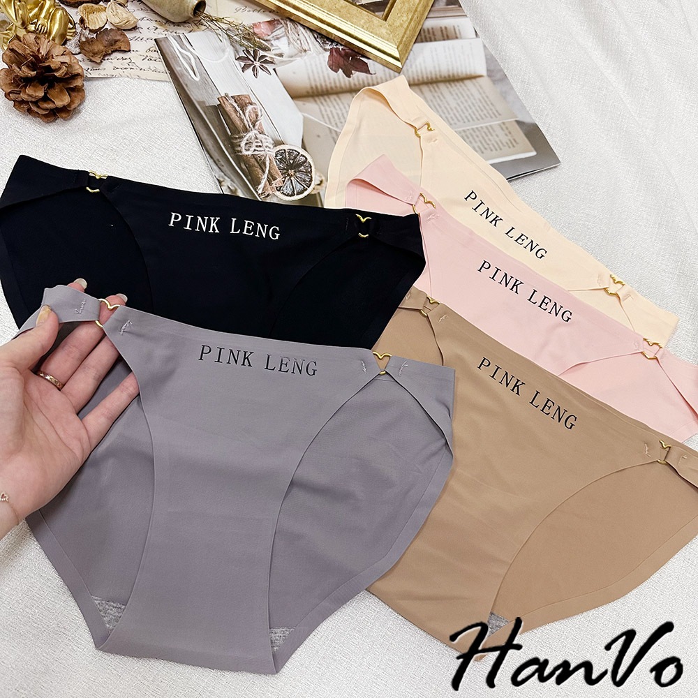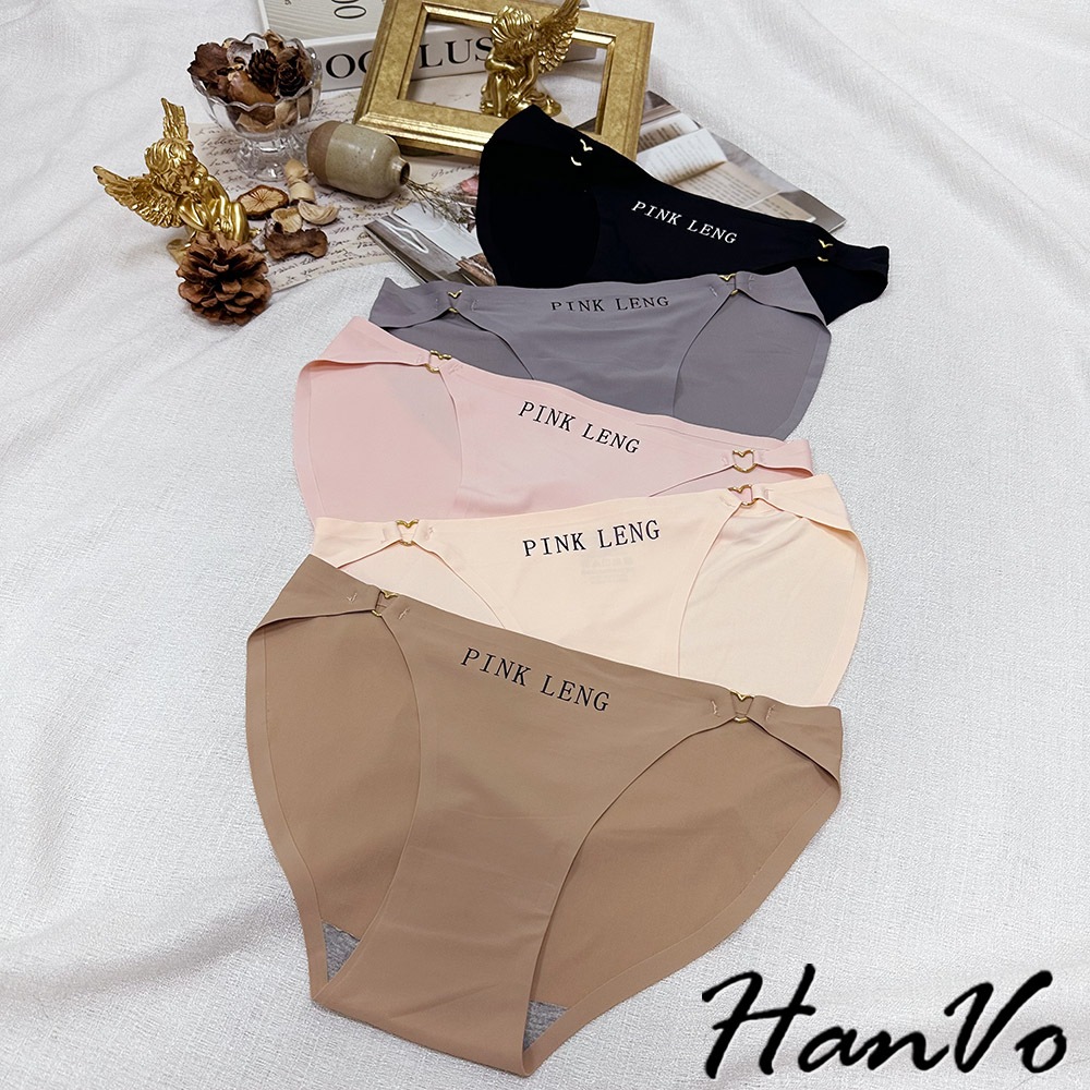 【HanVo】愛心環扣造型冰絲內褲 涼感性感薄款舒適內褲 中低腰 獨立包裝 流行少女內褲 內著 A11-5879企鵝灰|松果咖|午夜黑|花瓣粉|奶膚杏PantiesHanVo Wear Collection
