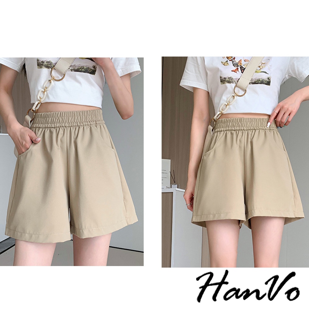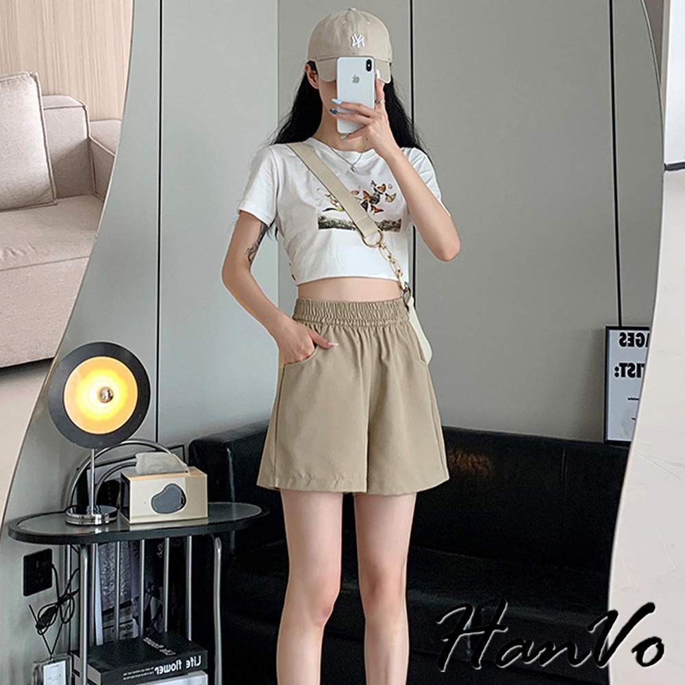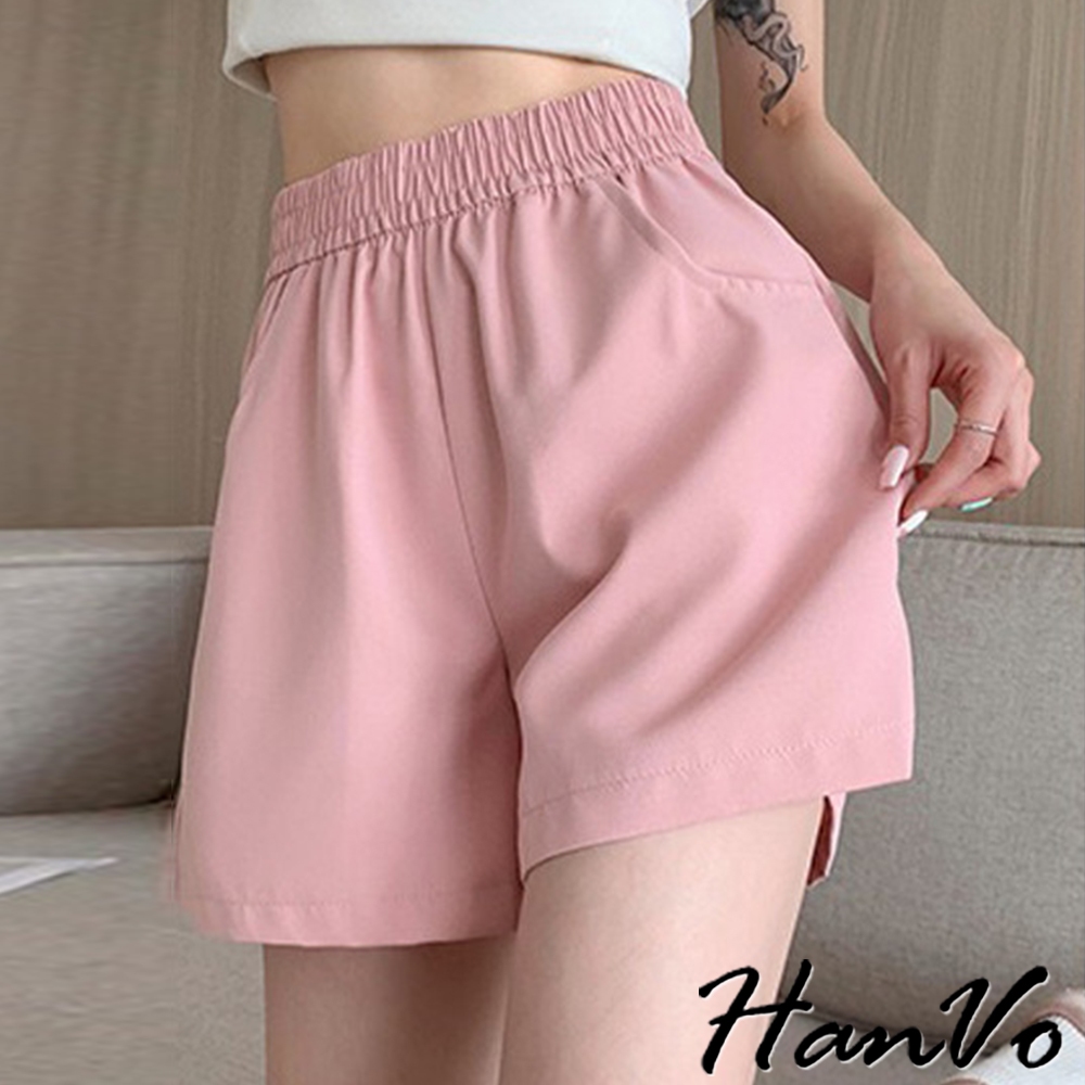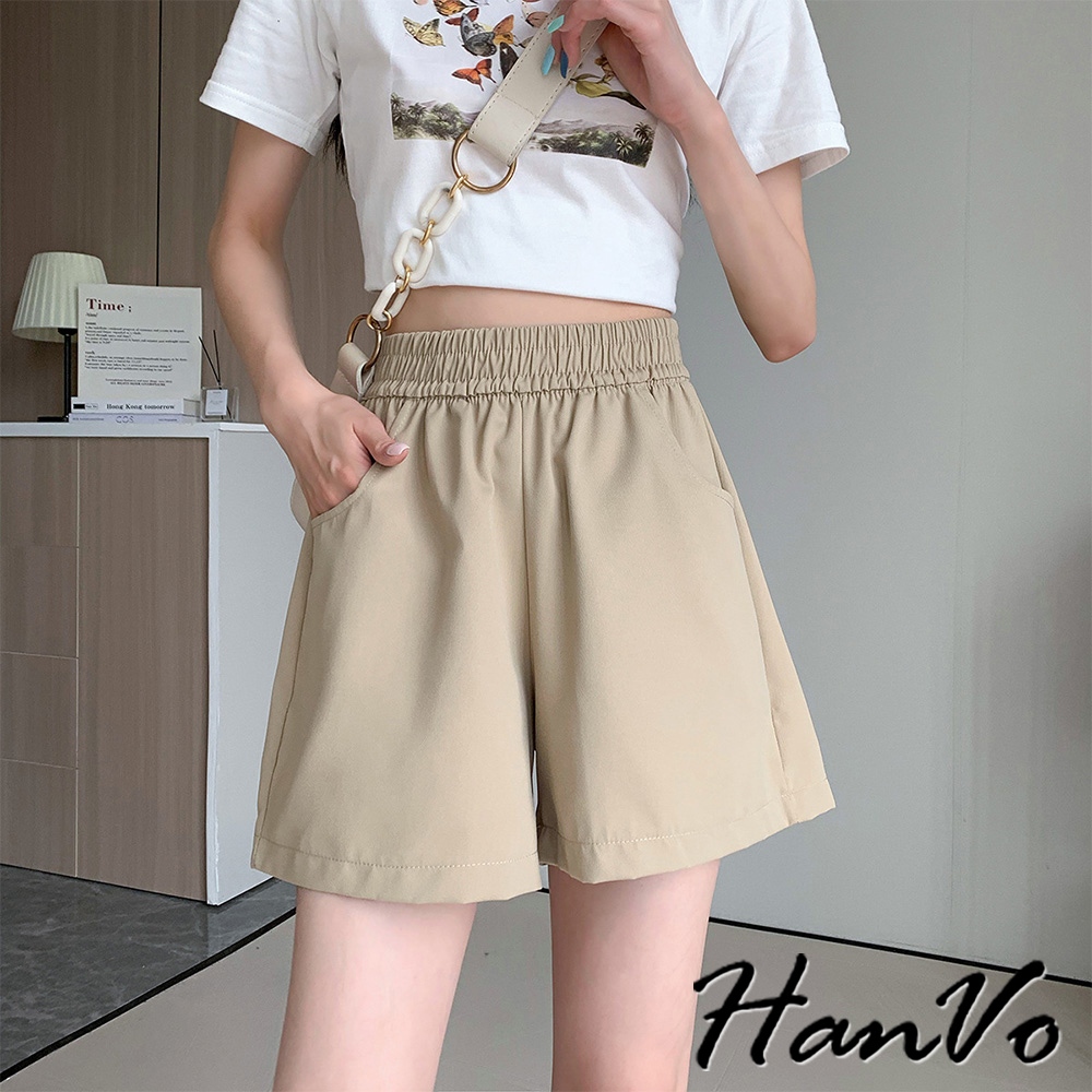 【HanVo】高腰寬鬆休閒A字短褲 硬挺質感收腹顯瘦百搭 韓版款褲 顯瘦褲 女生衣著 A03-2098粉色,M|粉色,L|粉色,XL|白色,M|白色,L|白色,XL|黑色,M|黑色,L|黑色,XL|卡其,M|卡其,L|卡其,XLShortsHanVo Wear Collection