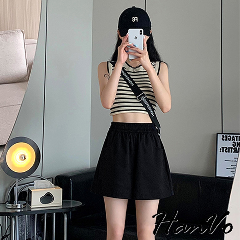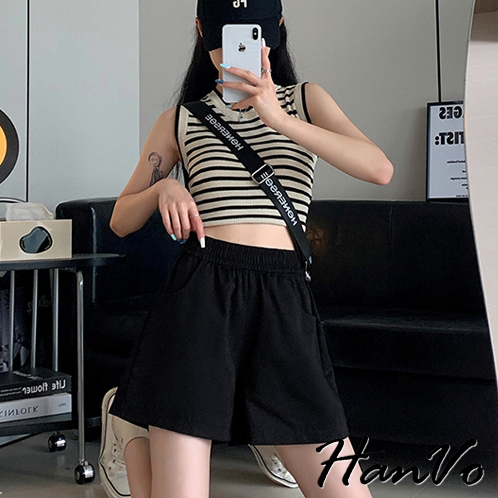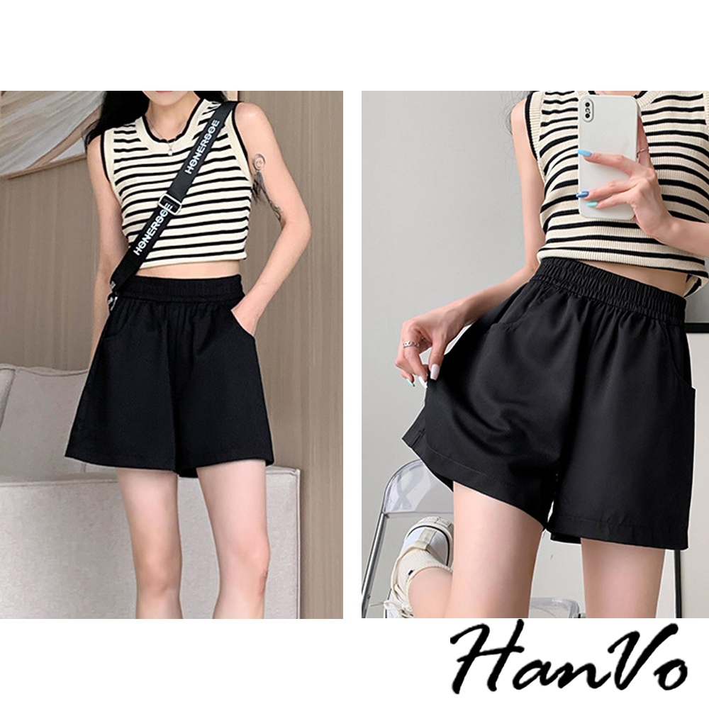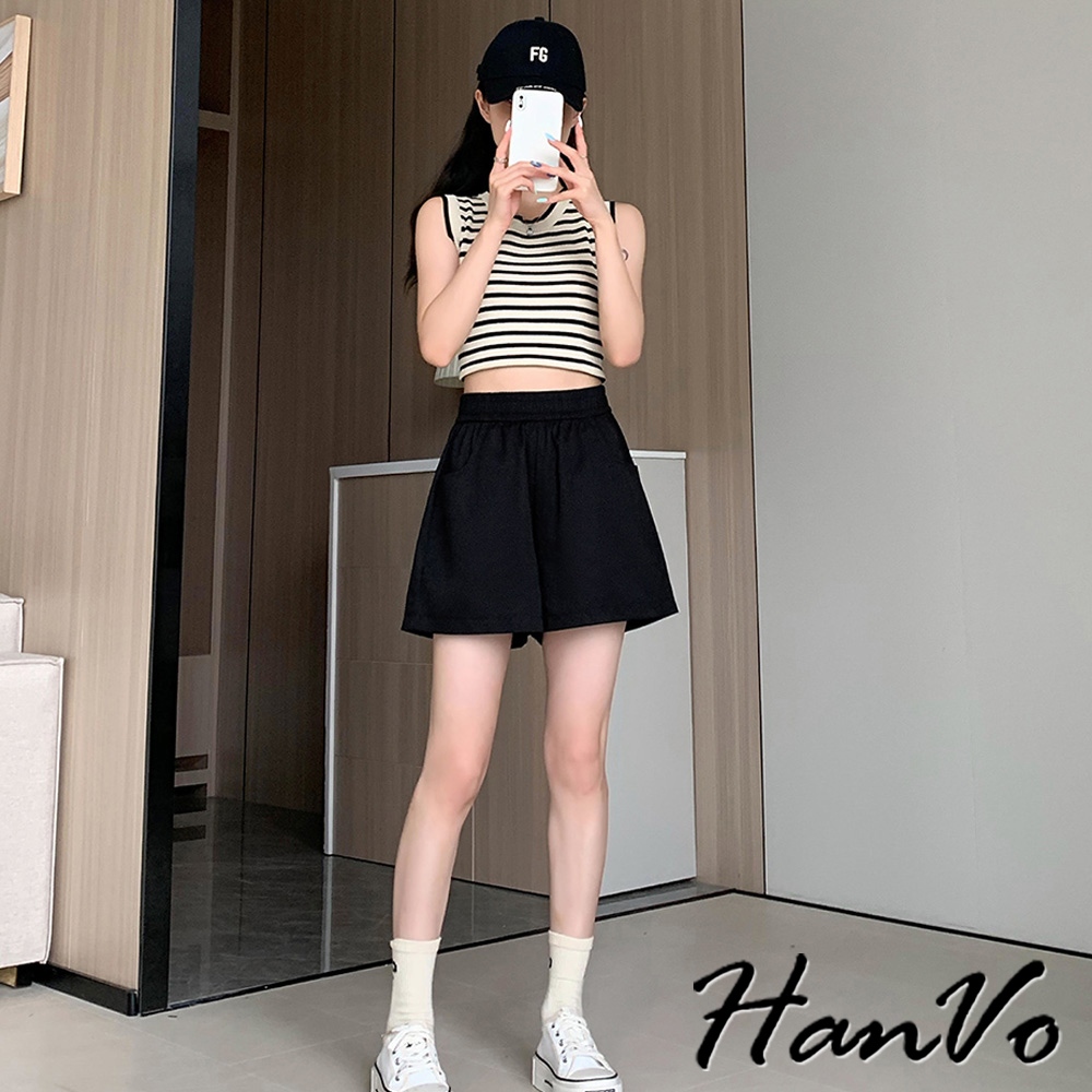 【HanVo】高腰寬鬆休閒A字短褲 硬挺質感收腹顯瘦百搭 韓版款褲 顯瘦褲 女生衣著 A03-2098粉色,M|粉色,L|粉色,XL|白色,M|白色,L|白色,XL|黑色,M|黑色,L|黑色,XL|卡其,M|卡其,L|卡其,XLShortsHanVo Wear Collection