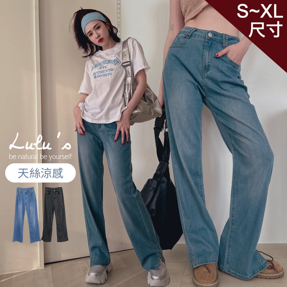 LULUS/天絲涼感開叉牛仔寬褲S-XL2色【A04240135】休閒褲 涼爽牛仔褲 240711淺藍L(現貨)|淺藍M(現貨)|淺藍S(現貨)|淺藍XL(現貨)|黑灰L(現貨)|黑灰M(現貨)|黑灰S(現貨)|黑灰XL(現貨)PantsLULUS