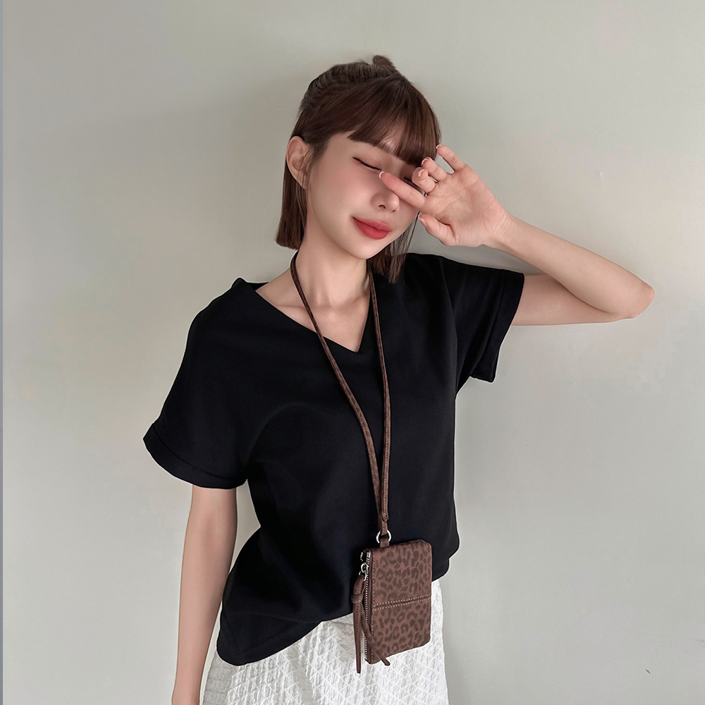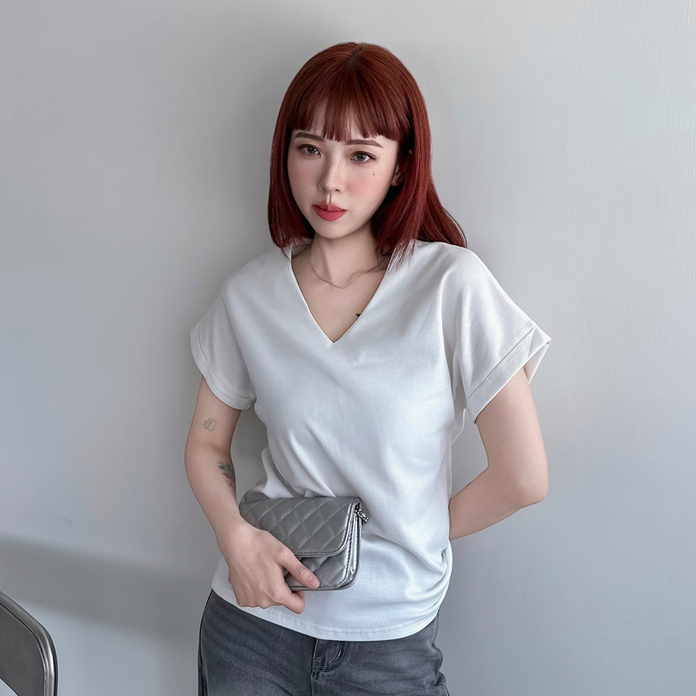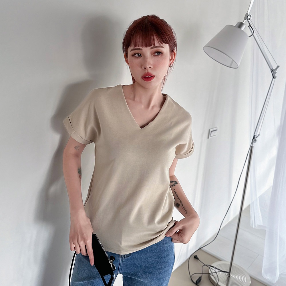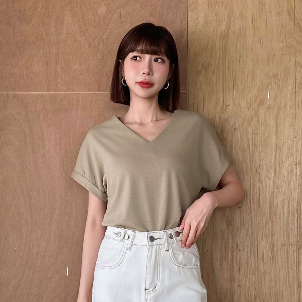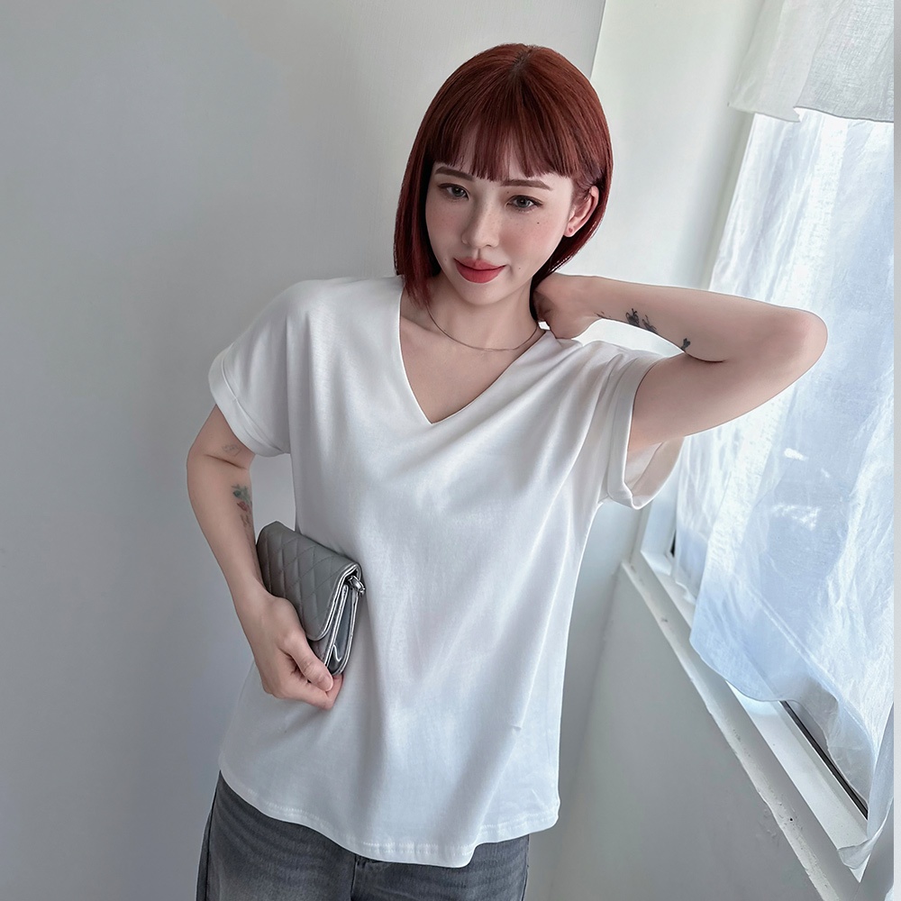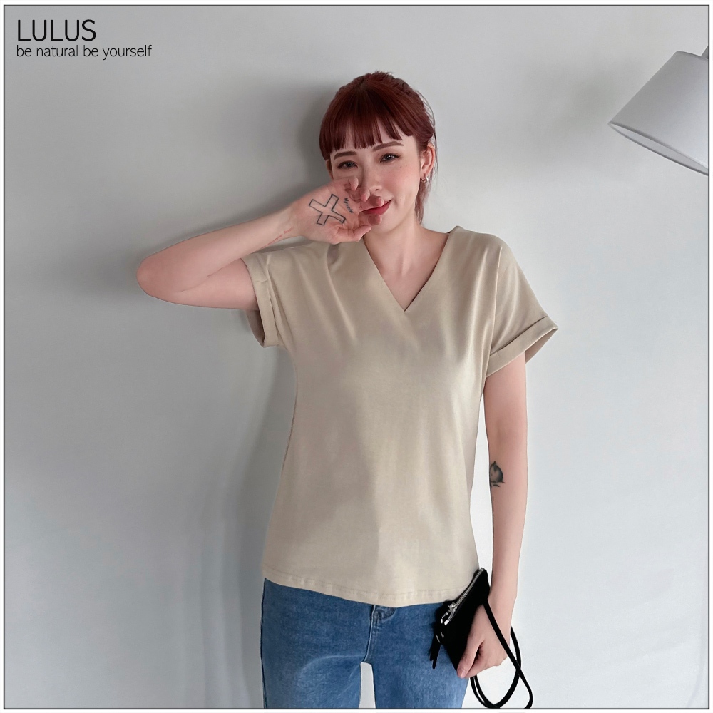 LULUS/知性V領落肩上衣4色【A01250492】250702黑|綠|白|奶茶T-shirtsLULUS