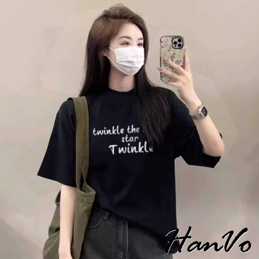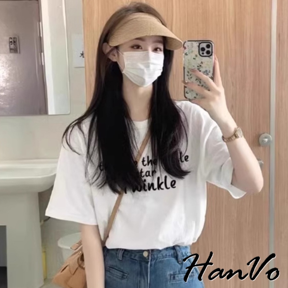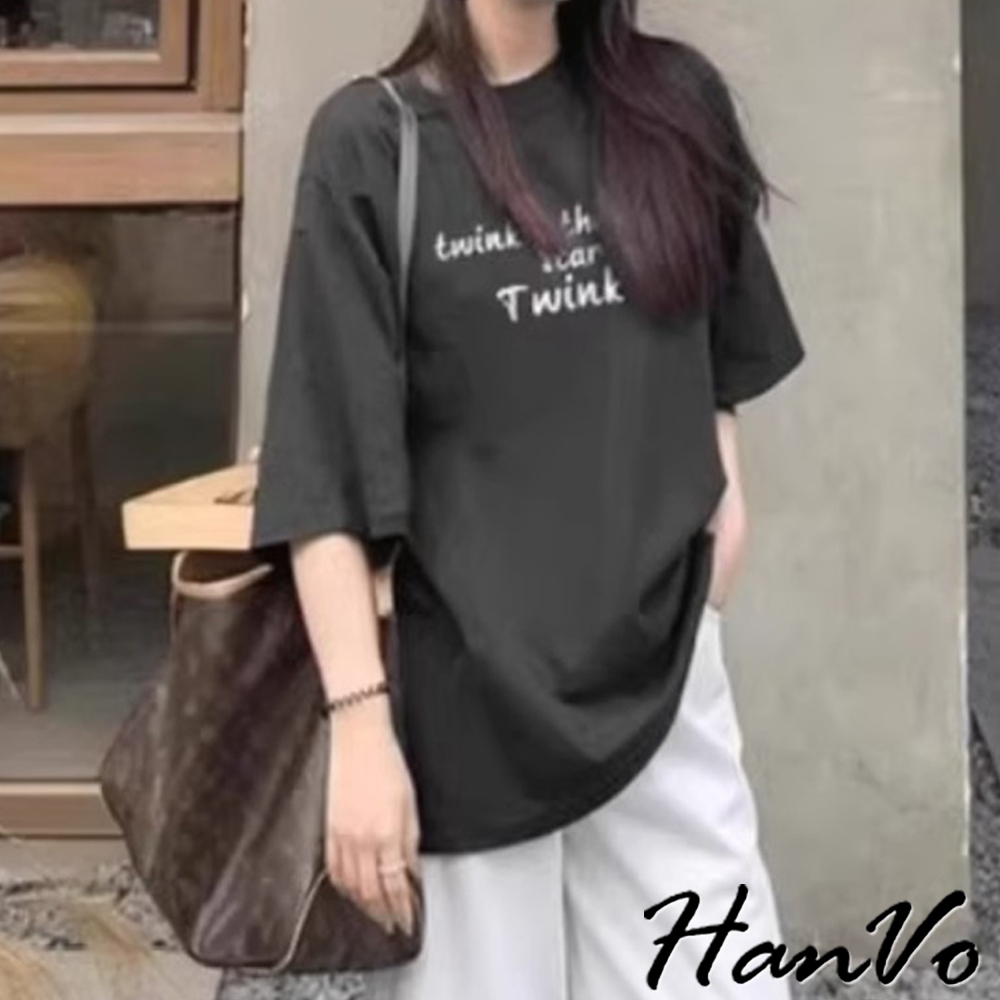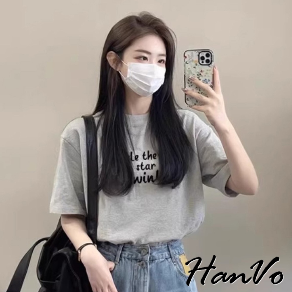 【HanVo】英文字寬鬆純棉T恤 休閒簡約質感短袖上衣 韓系女裝 女生衣著 A01-0328灰色,S|灰色,M|灰色,L|灰色,XL|黑色,S|黑色,M|黑色,L|黑色,XL|白色,S|白色,M|白色,L|白色,XLT-shirtsHanVo Wear Collection