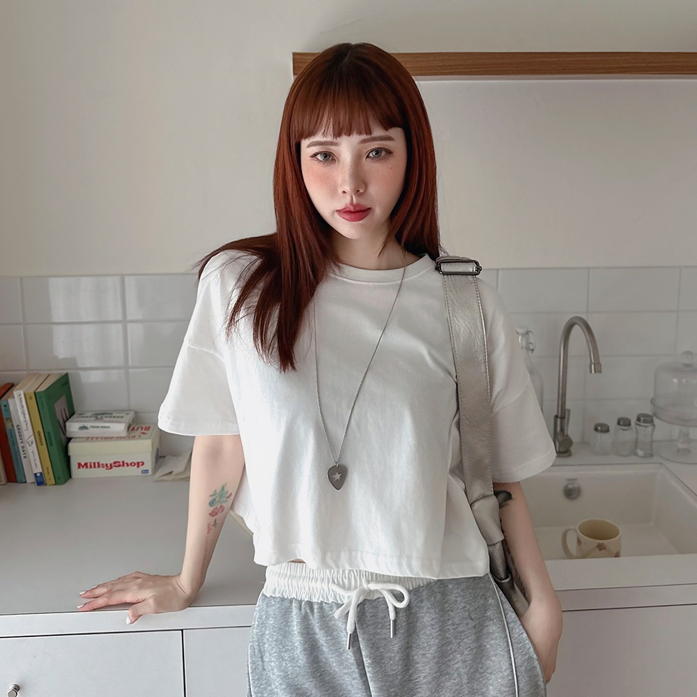 LULUS/自訂款腰瘦棉花糖短版圓領上衣4色【A01250365】短版上衣 短T恤 250521新版/深灰(現貨)|新版/棗紅(現貨)|新版/黑(現貨)|新版/白(現貨)T-shirtsLULUS