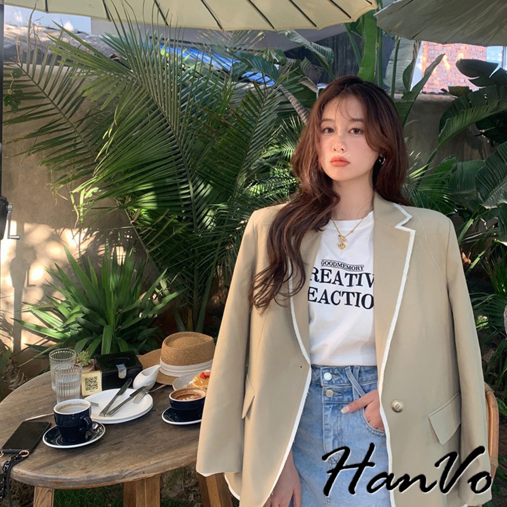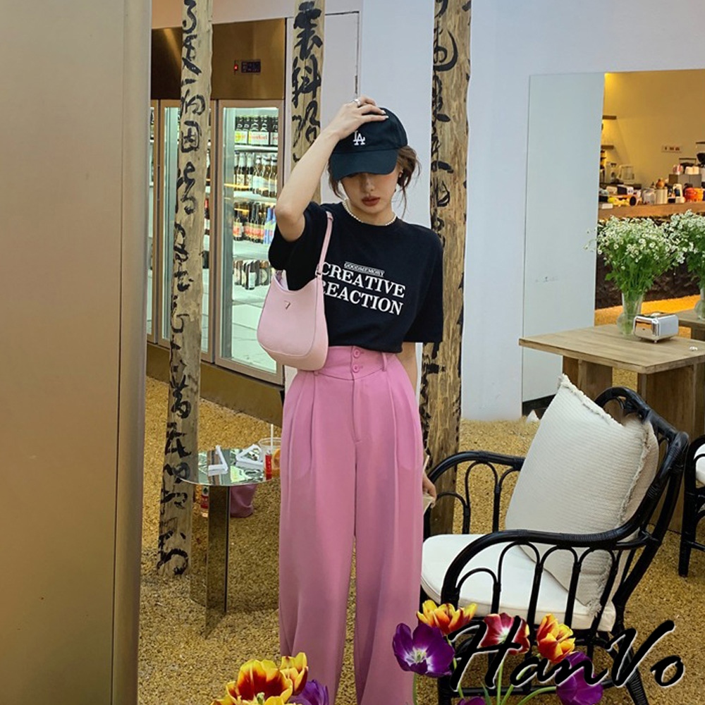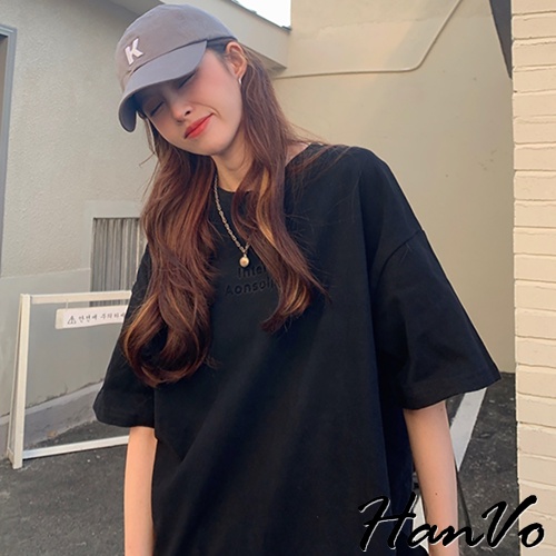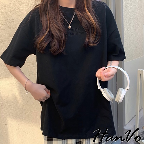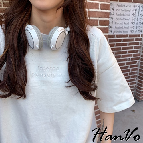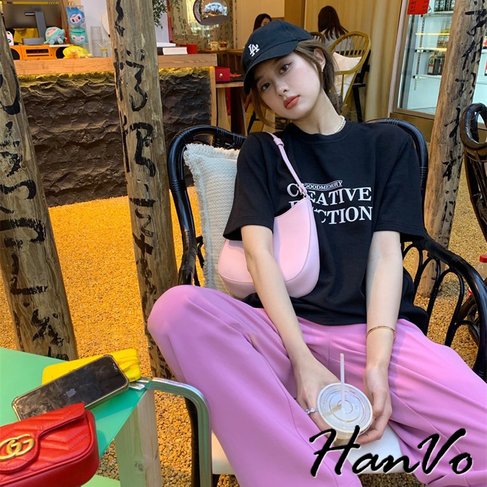 【HanVo】時尚英文字母圓領純棉上衣 透氣吸濕排汗 日常短袖上衣 韓系女裝 女生衣著 A01-0192黑色|白色T-shirtsHanVo Wear Collection