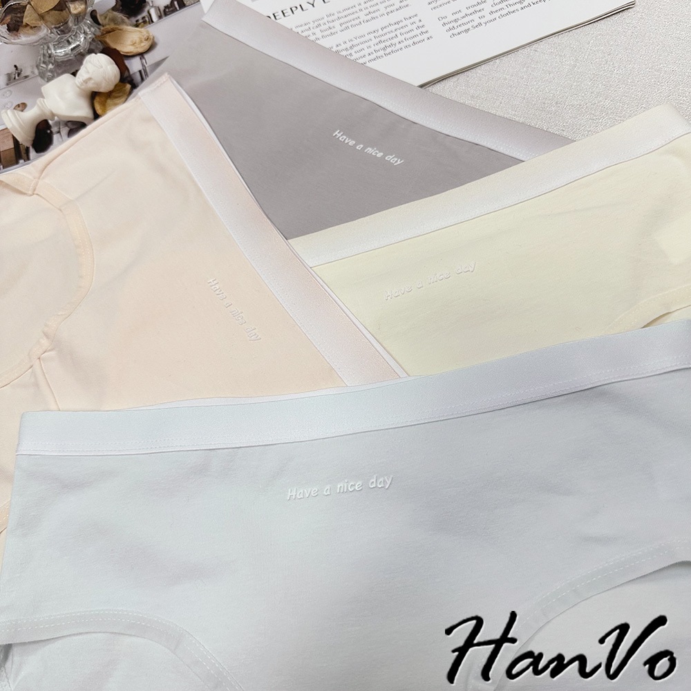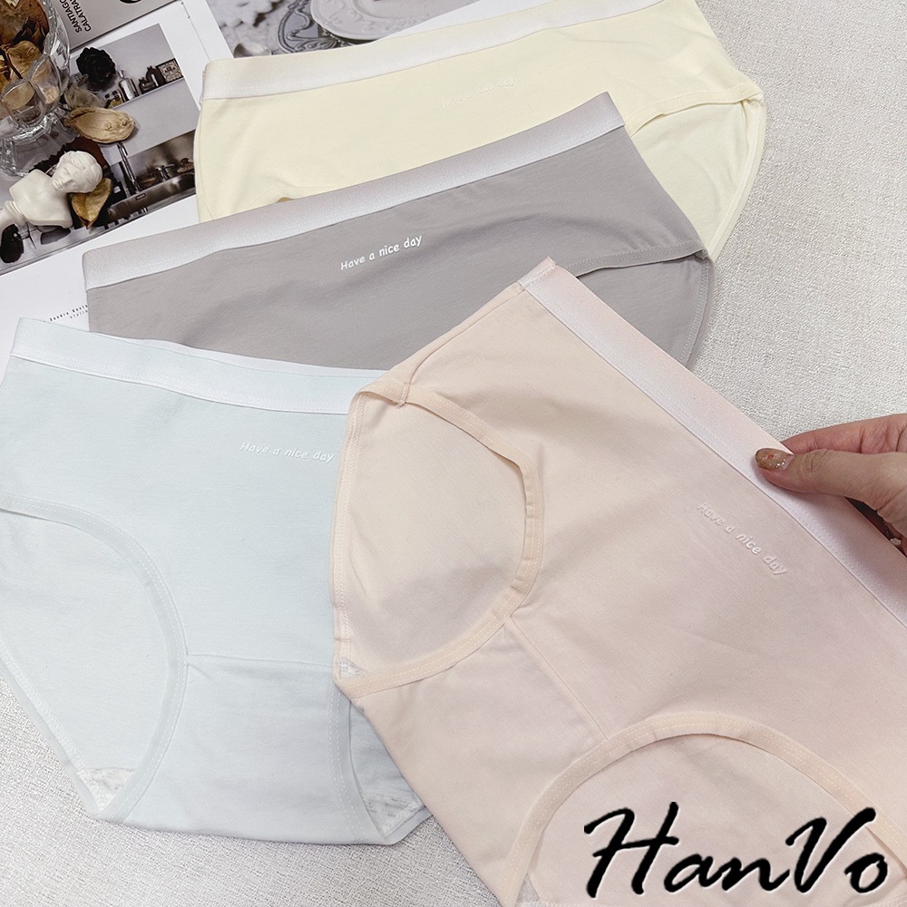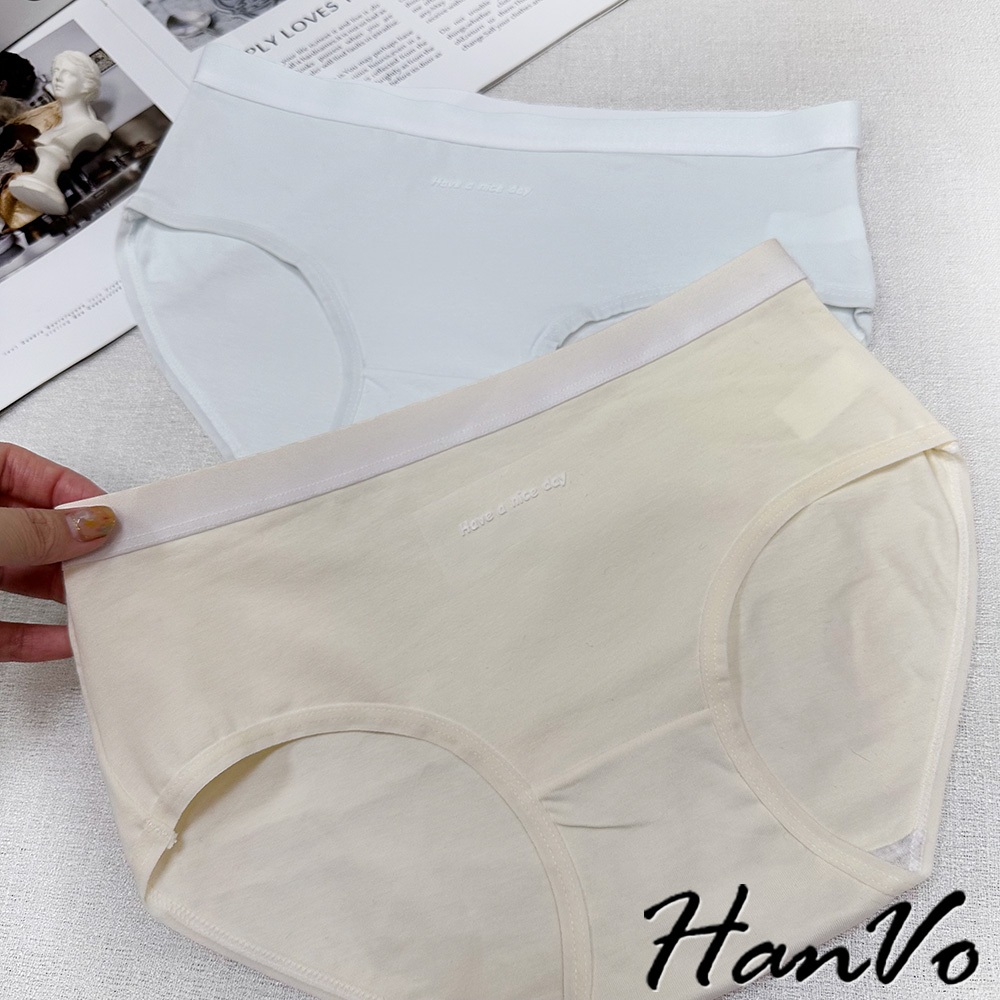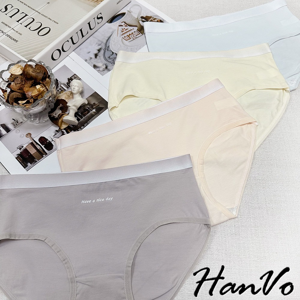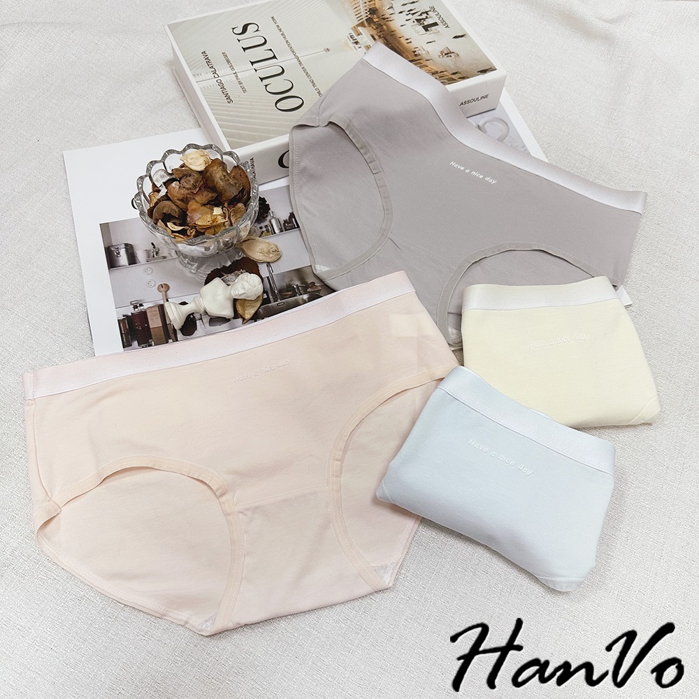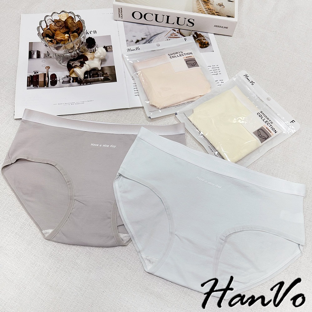 【HanVo】簡約漸層純色棉質內褲 獨立包裝 中腰 親膚柔軟吸濕排汗 流行少女內褲 內著 A11-5828海鹽灰|梅花粉|奶油黃|冰心藍PantiesHanVo Wear Collection