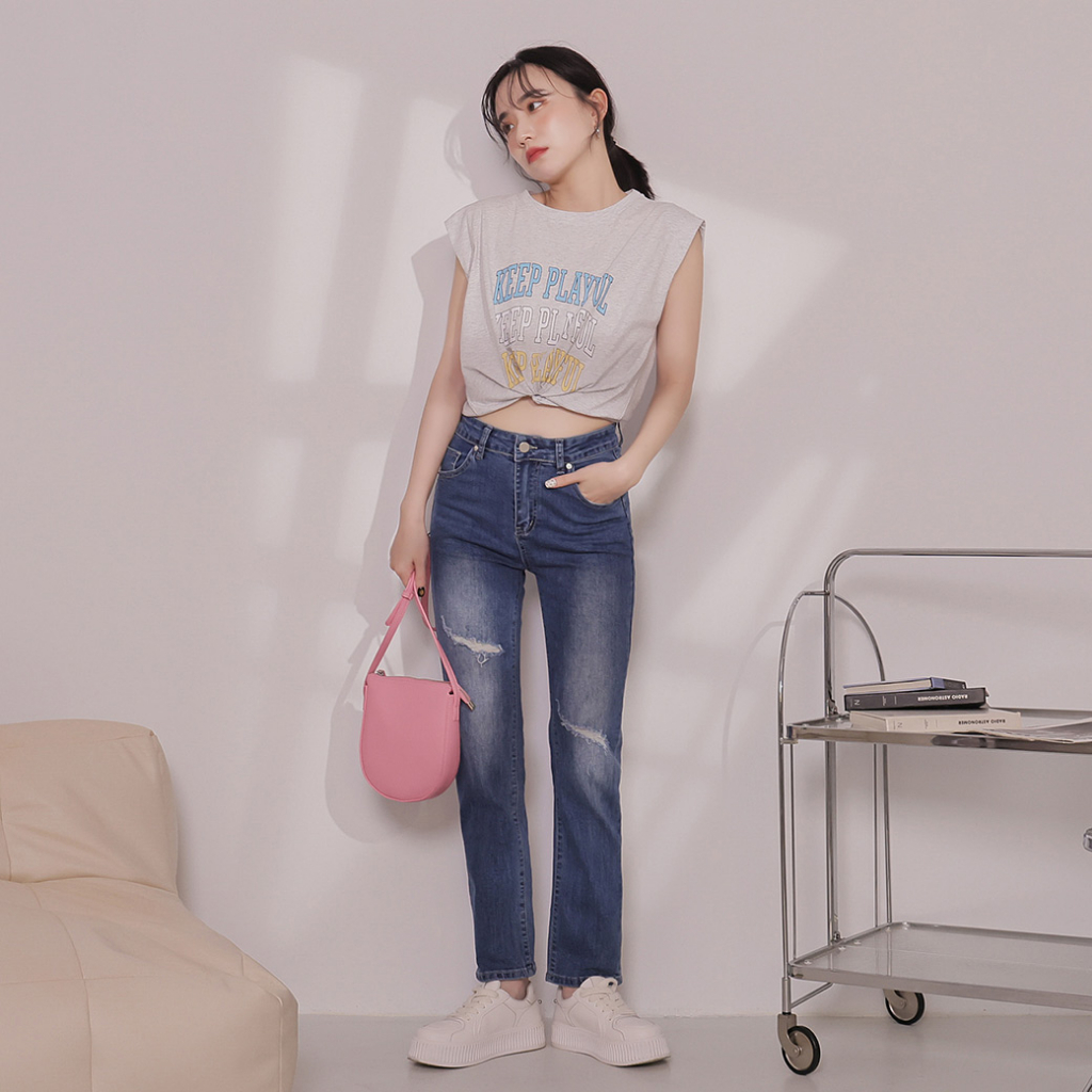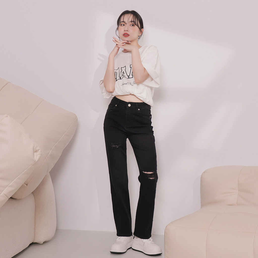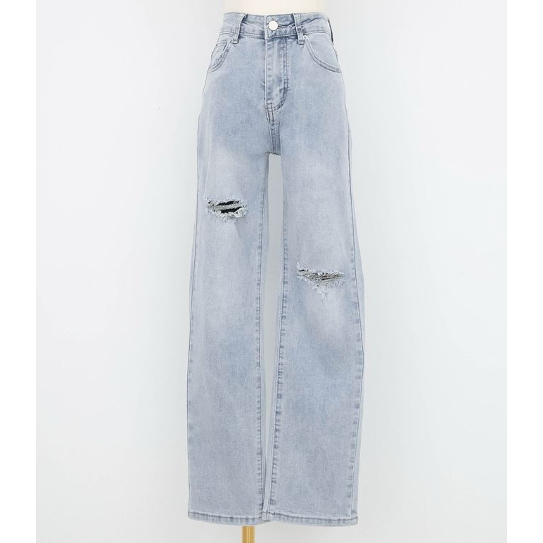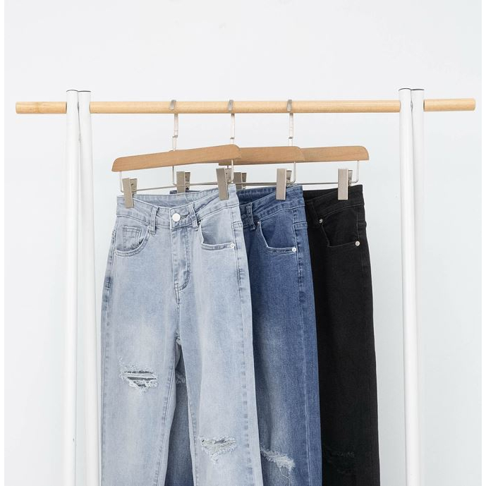 IN SHOP 牛仔破洞直筒長褲-共3色【KT201357】淺藍,S|黑,M|黑,L|深藍,L|黑,S|淺藍,M|淺藍,L|深藍,S|深藍,MIN’ SHOP 旗艦店