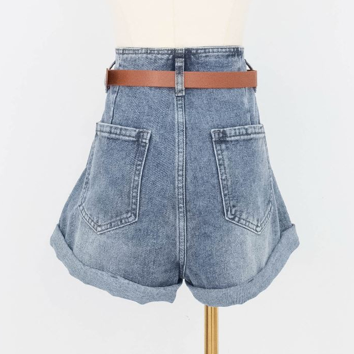 IN SHOP 微花苞皮帶反褶短褲-共2色【KT201346】黑,L|藍,S|藍,M|藍,L|黑,S|黑,MShortsIN’ SHOP 旗艦店