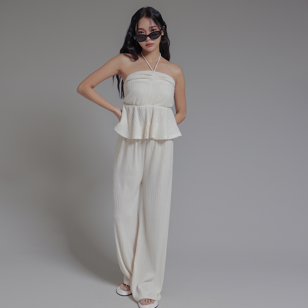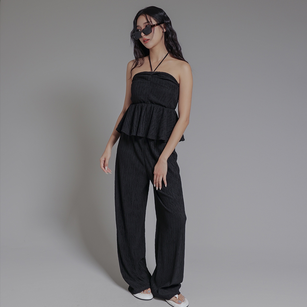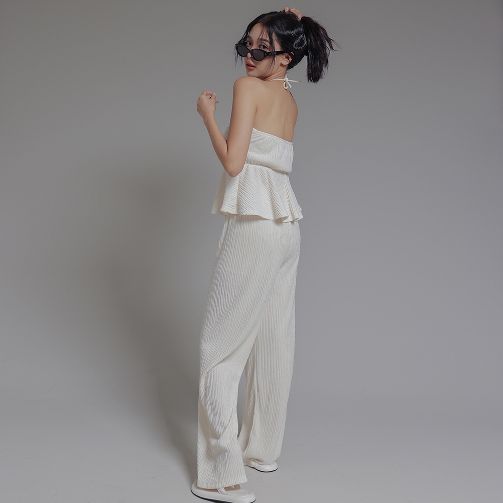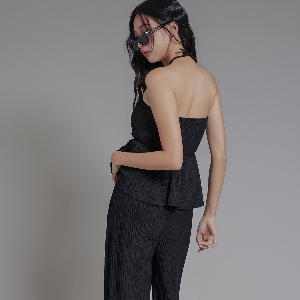 IN SHOP 綁脖平口抓皺寬褲套裝-共3色【KT24477】杏|藍|黑Individual SetsIN’ SHOP 旗艦店
