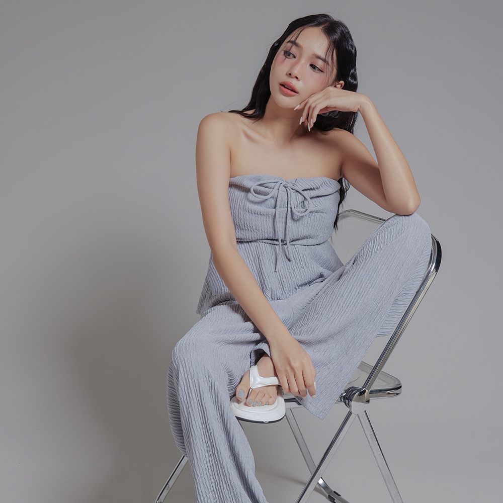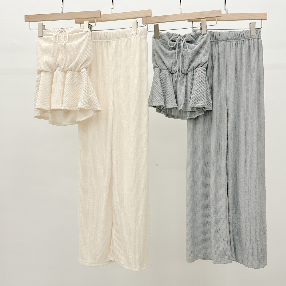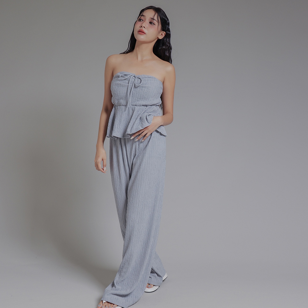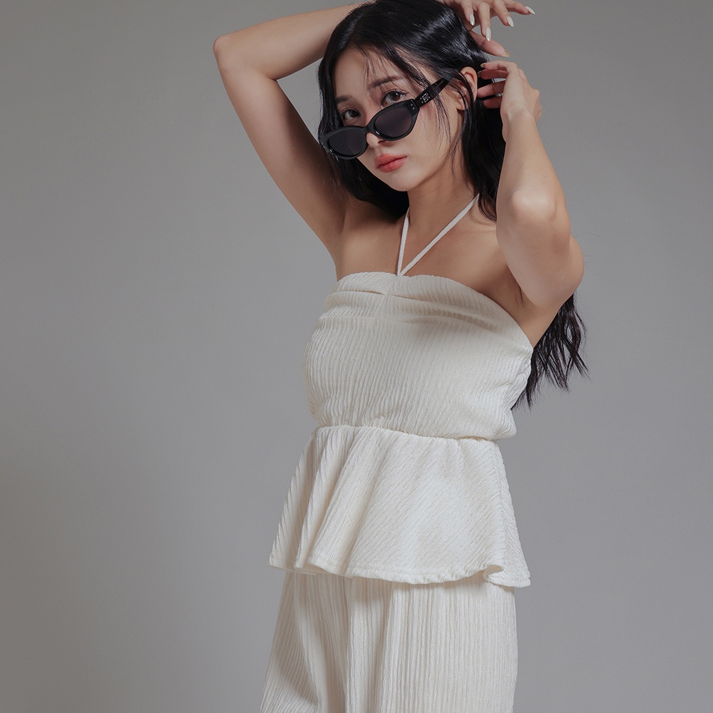 IN SHOP 綁脖平口抓皺寬褲套裝-共3色【KT24477】杏|藍|黑Individual SetsIN’ SHOP 旗艦店