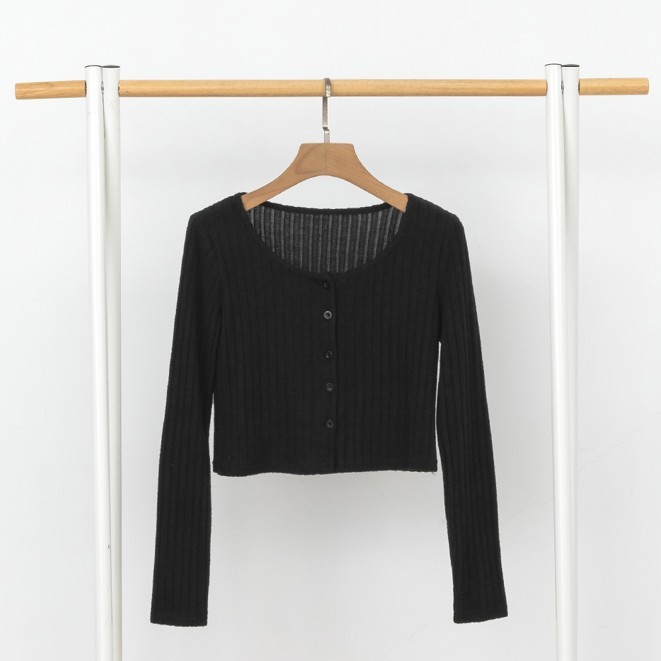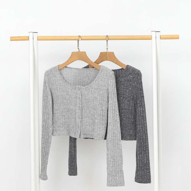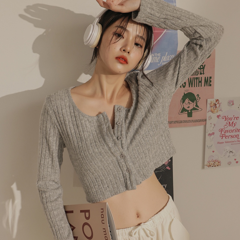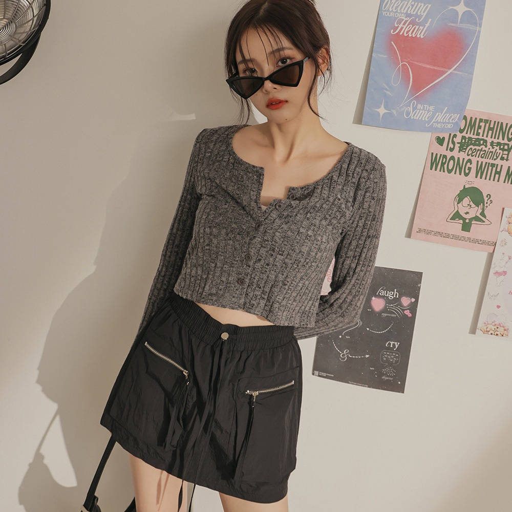 IN SHOP 開釦坑條短版針織T-共3色【KT223361】黑|淺灰|深灰T-shirtsIN’ SHOP 旗艦店