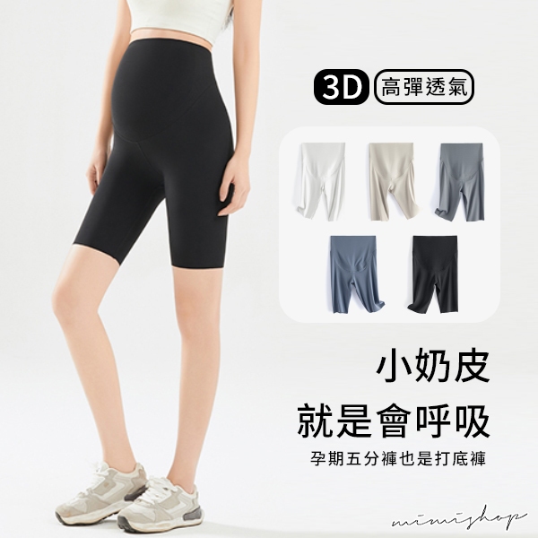 MIMI別走孕婦裝 優質升級 果凍3D高彈力透氣五分褲 孕婦褲 內搭褲 【P62394】米白|黑|深灰|灰藍|淺麥Maternity BottomsMIMI別走孕婦裝哺乳衣